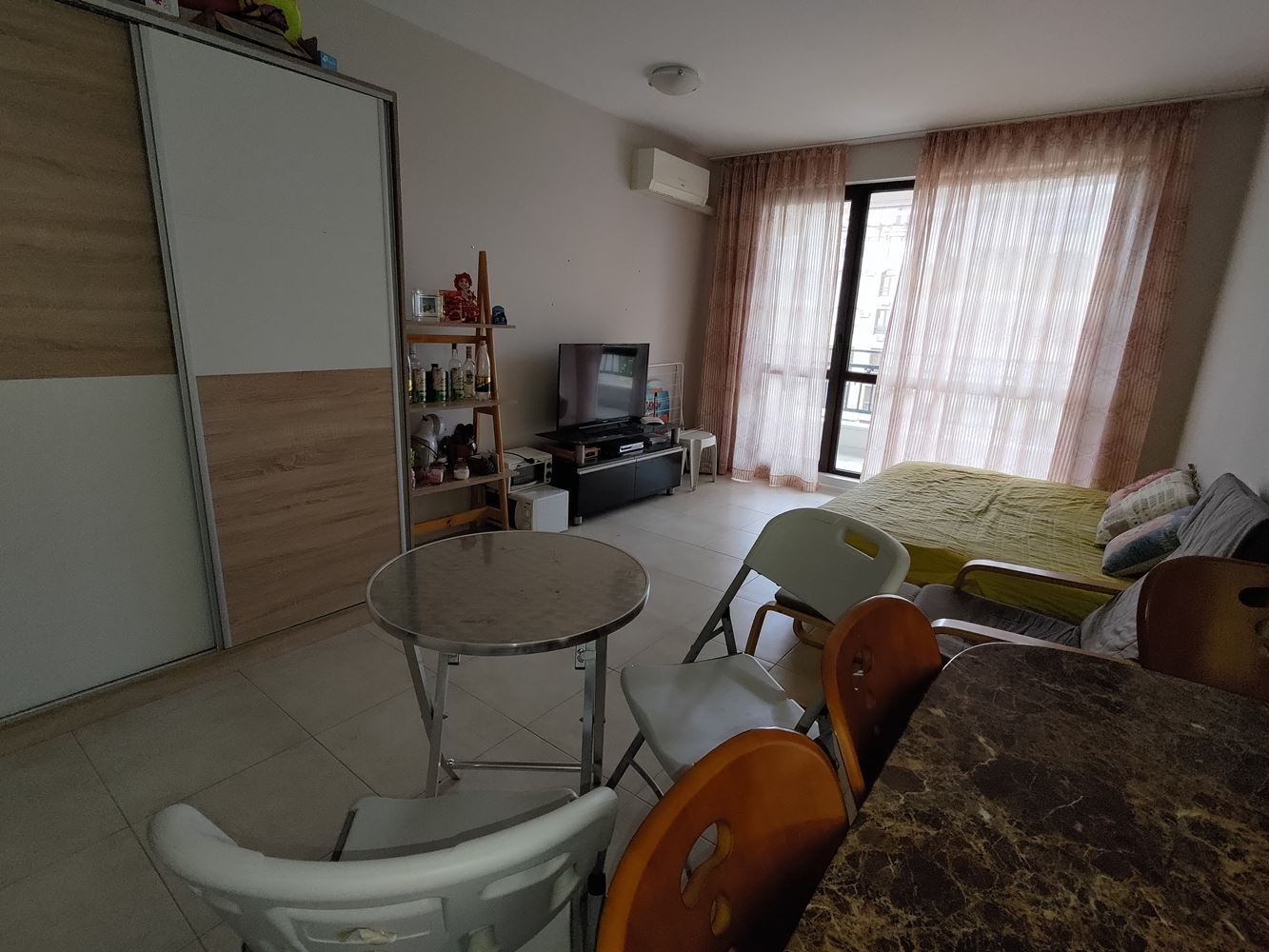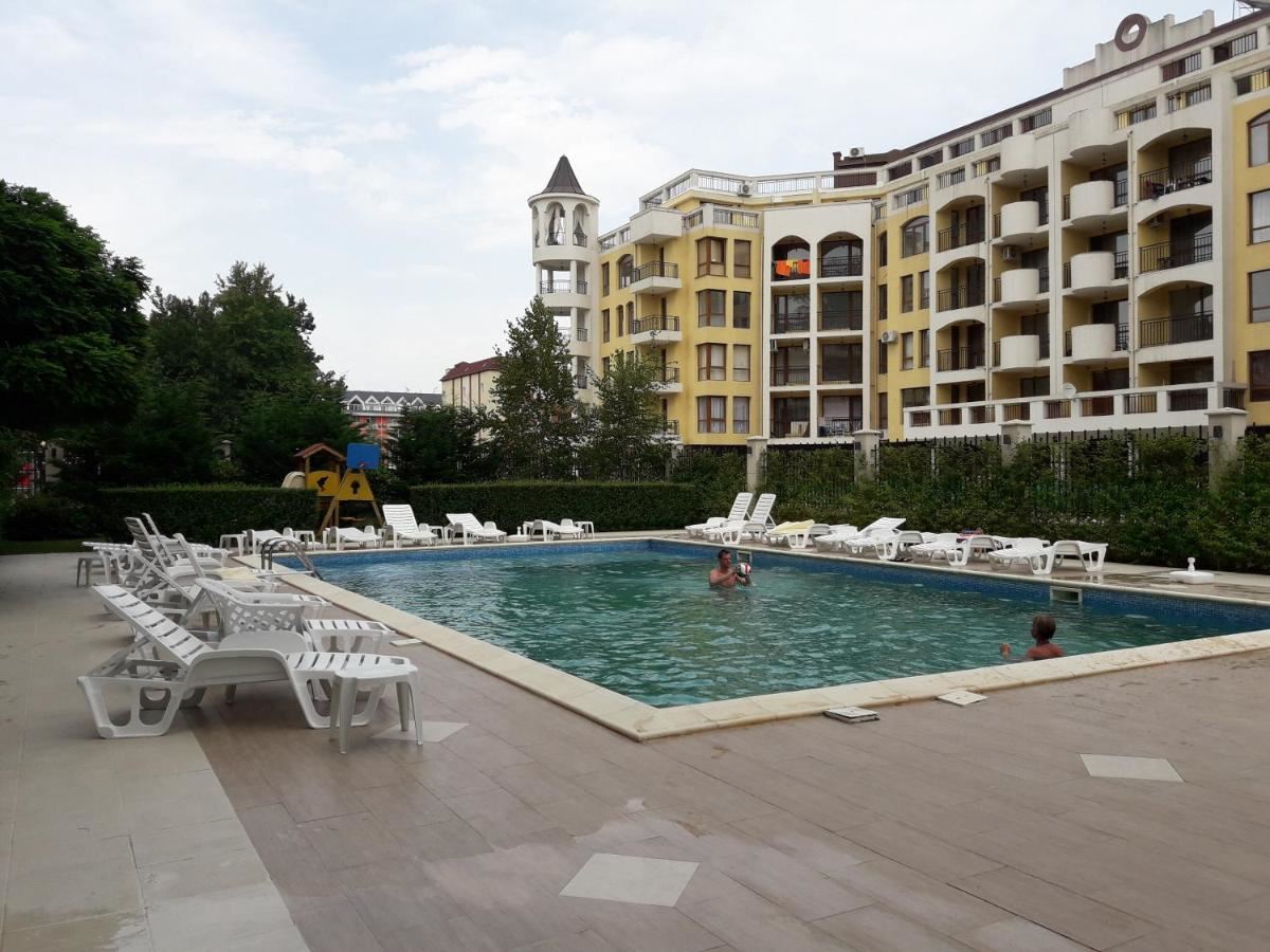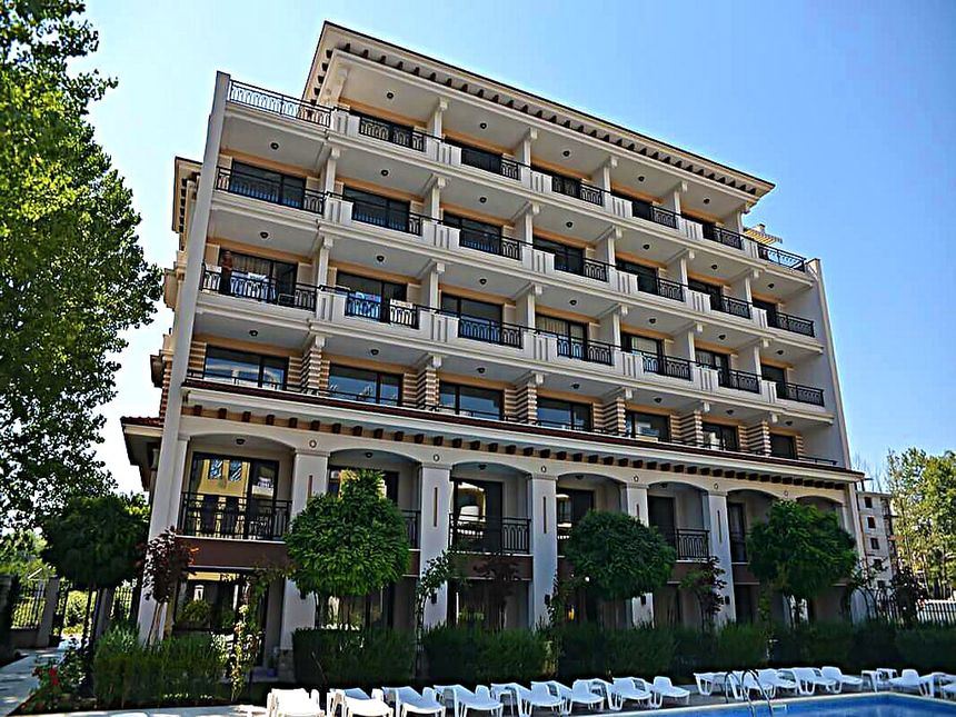 An excellent one-bedroom flat with a comfortable layout and good furniture in a small family complex in the popular resort of Sunny Beach. The complex is located in the southern area of the resort at a distance of 500m from the beaches. Walking distance to supermarket, shop, cafes, restaurants and other infrastructure. Complex has landscaped area with swimming pool, playground, security and parking. Flat area is 64 m2. Located on the third floor of a six-storey building. The flat is sold furnished and with white goods. Beautiful view of the complex and swimming pool.