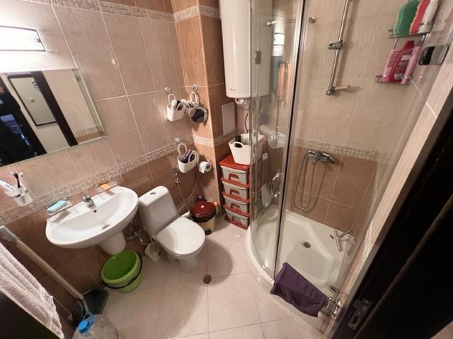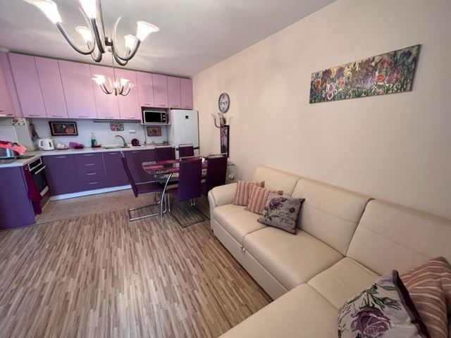 One bedroom apartment with sea view in the pleasant seaside town of Ravda. Within walking distance from the house town hall, post office, school, market, cafes, stores, bus stop and other necessary infrastructure for a comfortable stay or vacation. To the beach and the sea no more than 50 meters. The area of the apartment is 60 m2, is located on the third floor, the house has an elevator. The apartment is sold with furniture and appliances. All in excellent condition. The apartment has a pleasant sea view. Ideal for both summer holidays, as well as for living in winter. All year round the area is home to the local population, working stores, markets, banks, pharmacies and other necessary facilities and institutions.