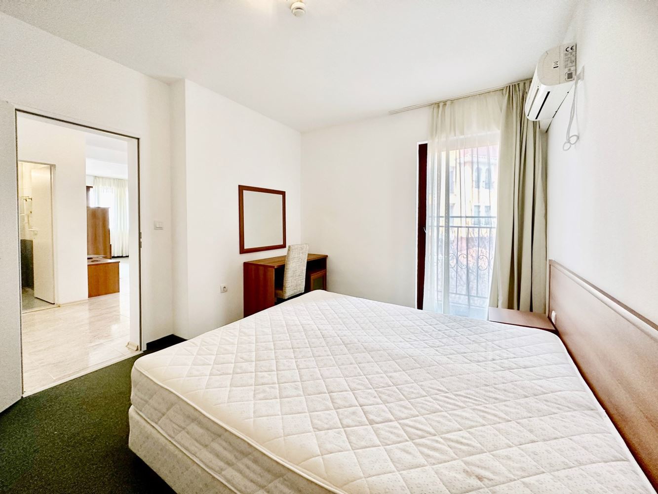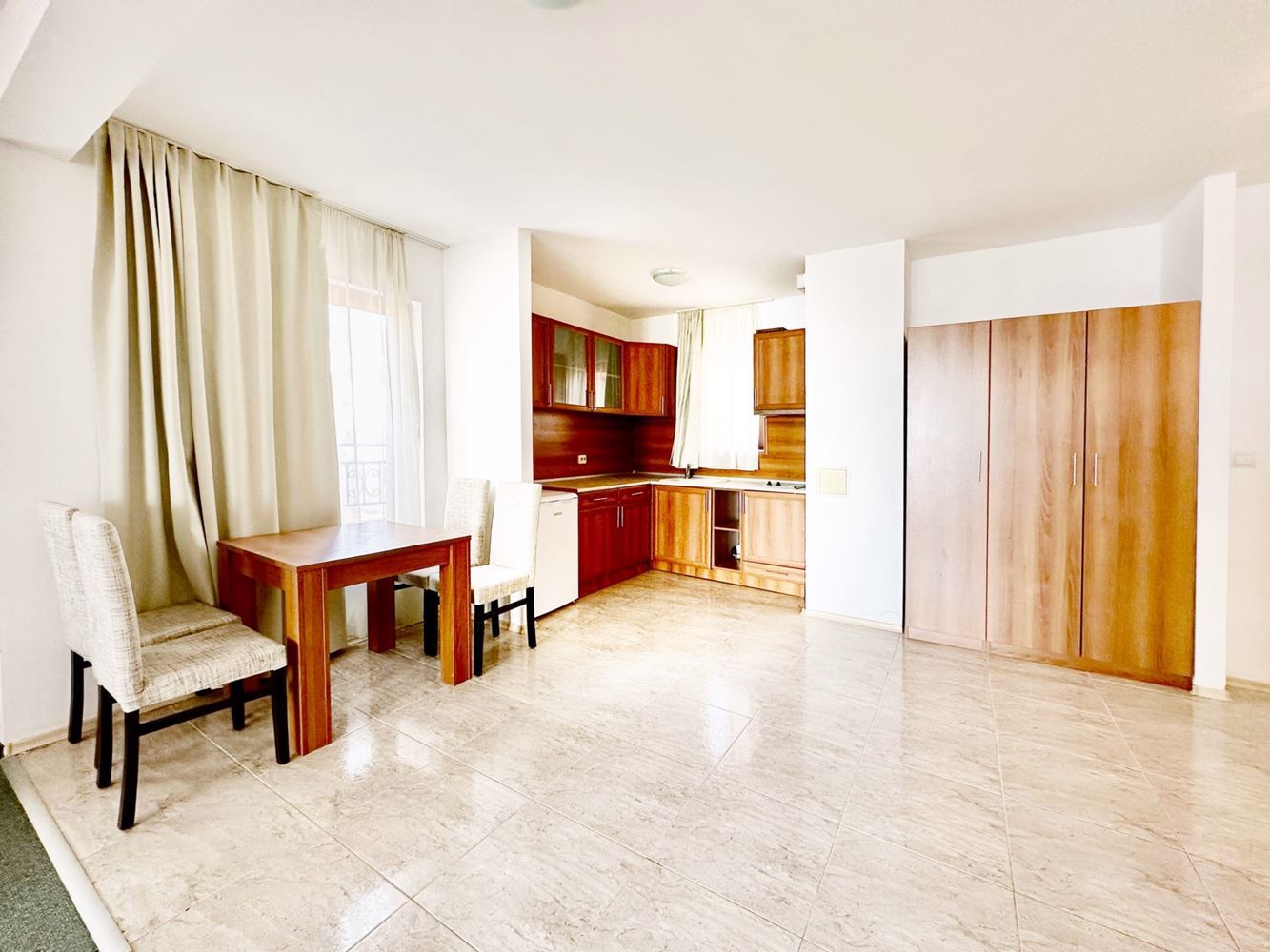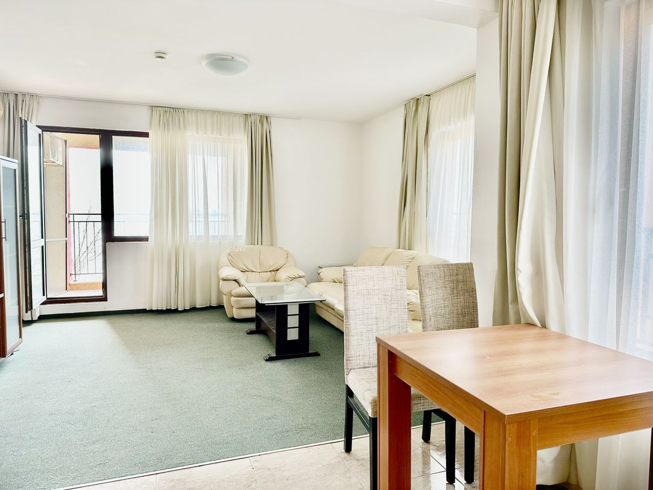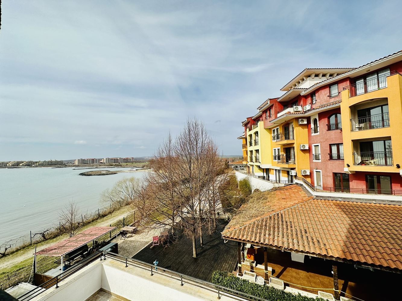 One-bedroom apartment with direct sea views and landscaped beach in the luxury complex, which is built on the sea front, completed and put into operation. On an area of 40 000 square meters there are four zones of the complex, which give individuality to the whole complex. For the convenience of guests and apartment owners, the complex offers the following services and amenities - three restaurants and several cafes, two swimming pools with bars and rescue service, which operates around the clock, SPA center, fitness center, doctor's office, pharmacy, dentist's office, bank, large grocery store, several specialized stores, wireless Internet access throughout the complex. The offered apartment is located on the third floor. It has an area of 84 m2 and has the following distribution: corridor / entrance hall, large living room with kitchen, bedroom, bathroom with toilet and a big terrace with sea view. It is sold fully furnished.