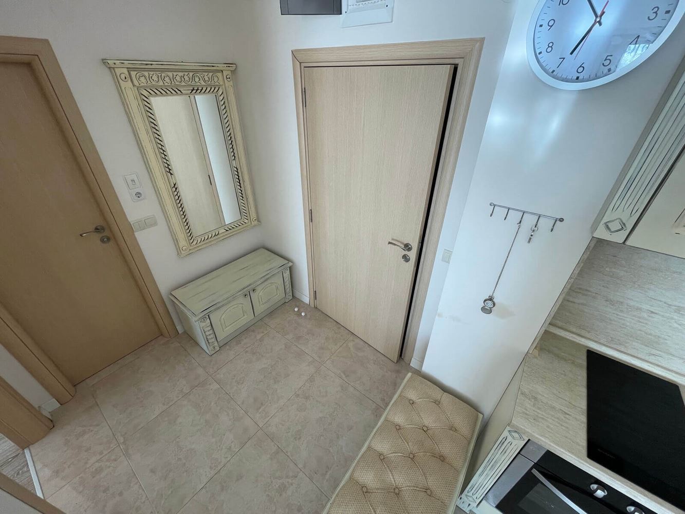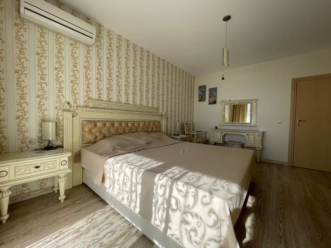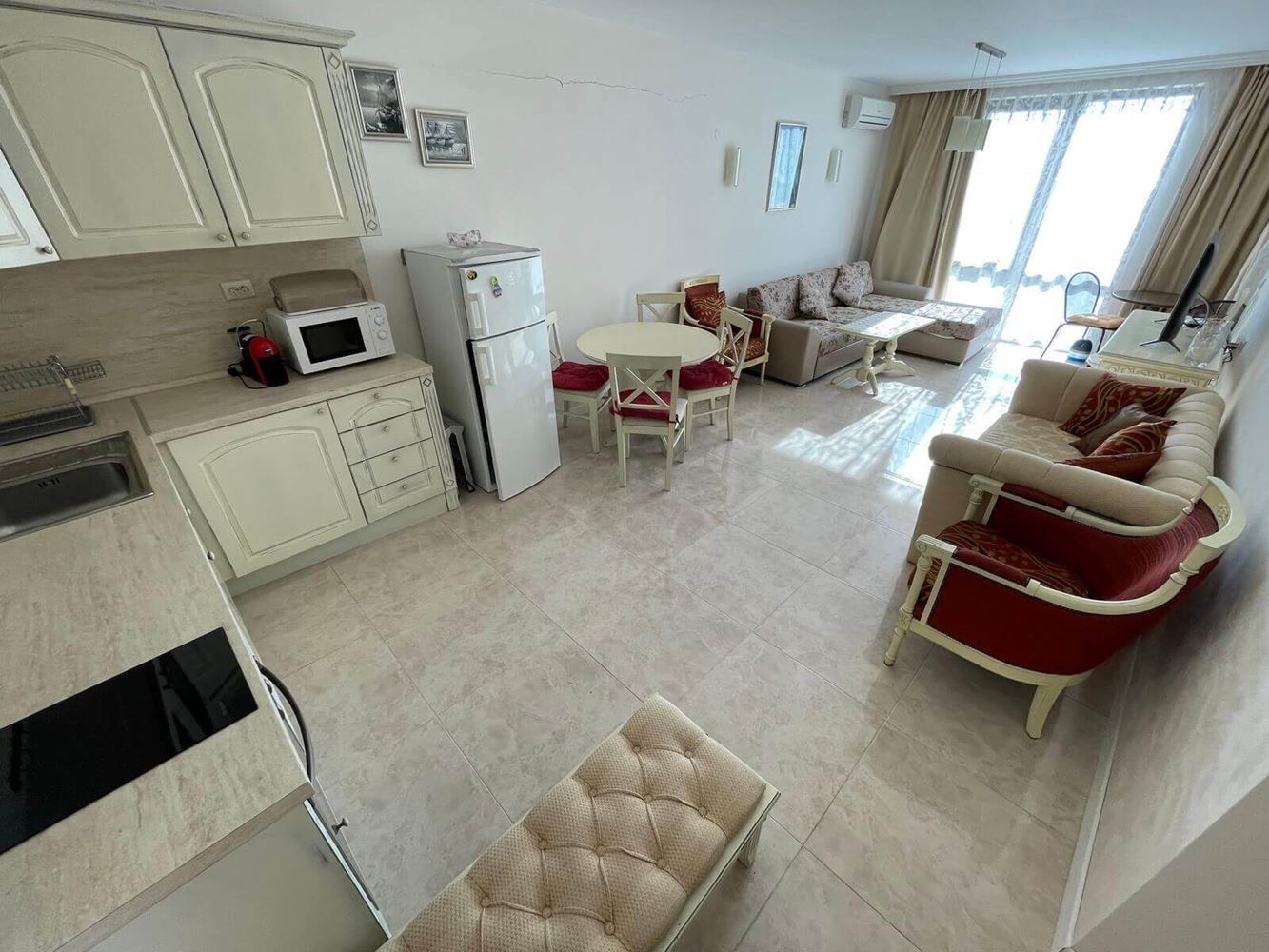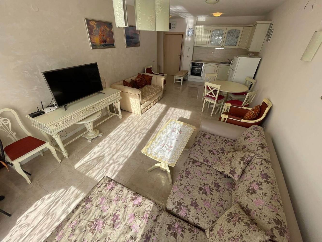 One bedroom flat with beautiful sea view in St. Vlas in an amazing modern complex on the first line of the beach. The flat with area of 78 sq. m. is located on the ground floor. Flat layout is as follows - entrance hall, living room with kitchen area, bedroom, bathroom with WC and balcony with beautiful sea view. The flat is fully furnished and equipped, ready to move in or rent out. The complex is an exclusive luxury project, characterized by the highest quality of construction, finishes and interior design. The infrastructure of the complex provides a complete holiday without the problems of everyday life, allowing you to enjoy the benefits of modern civilization.