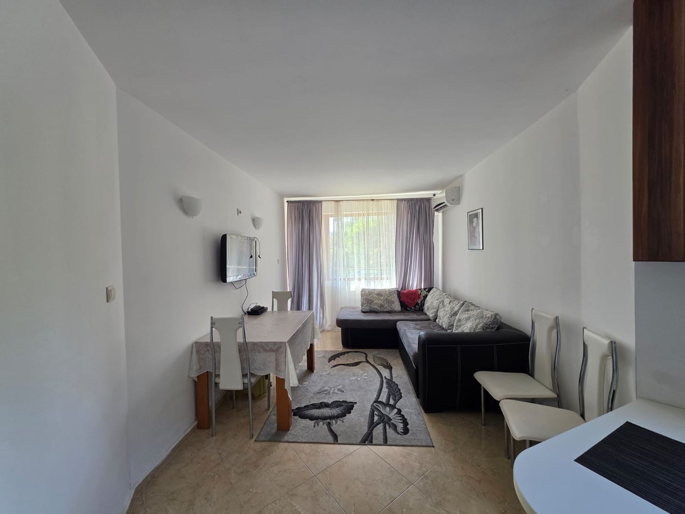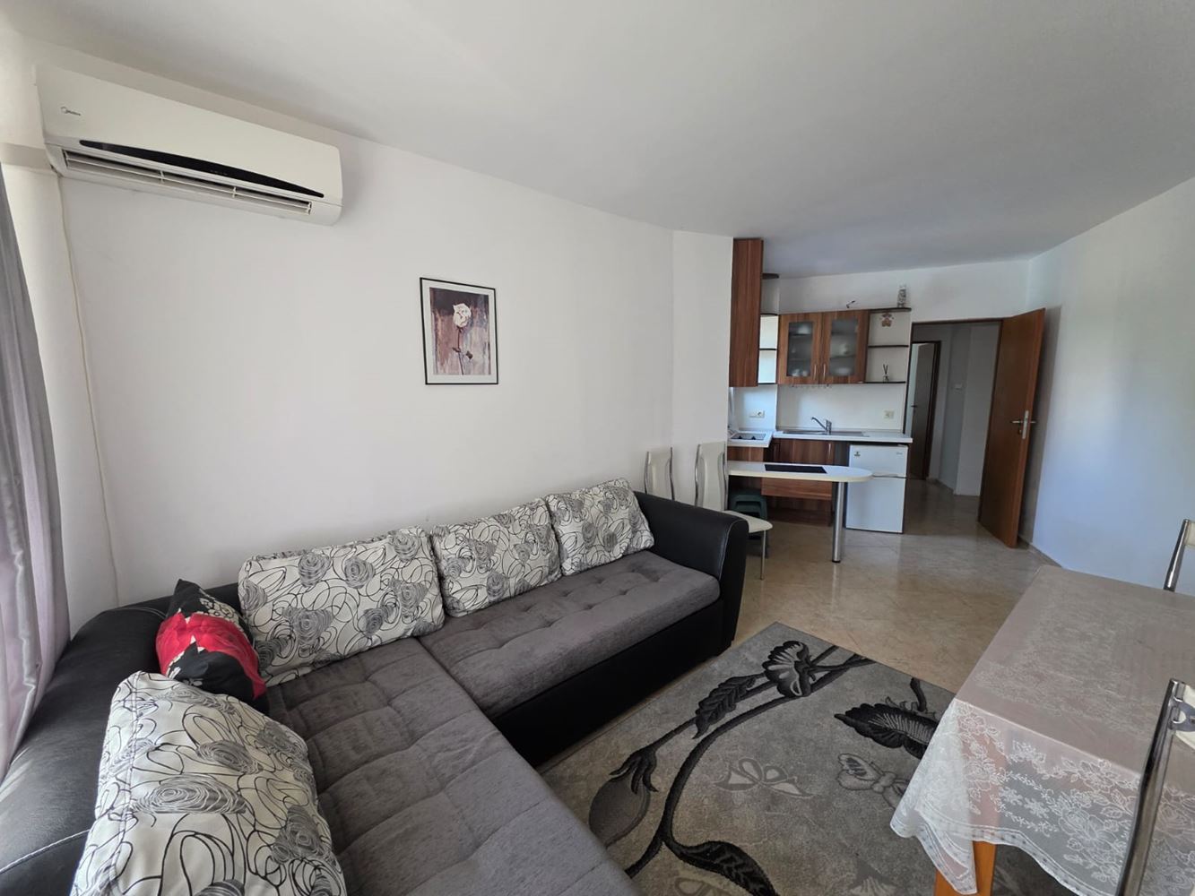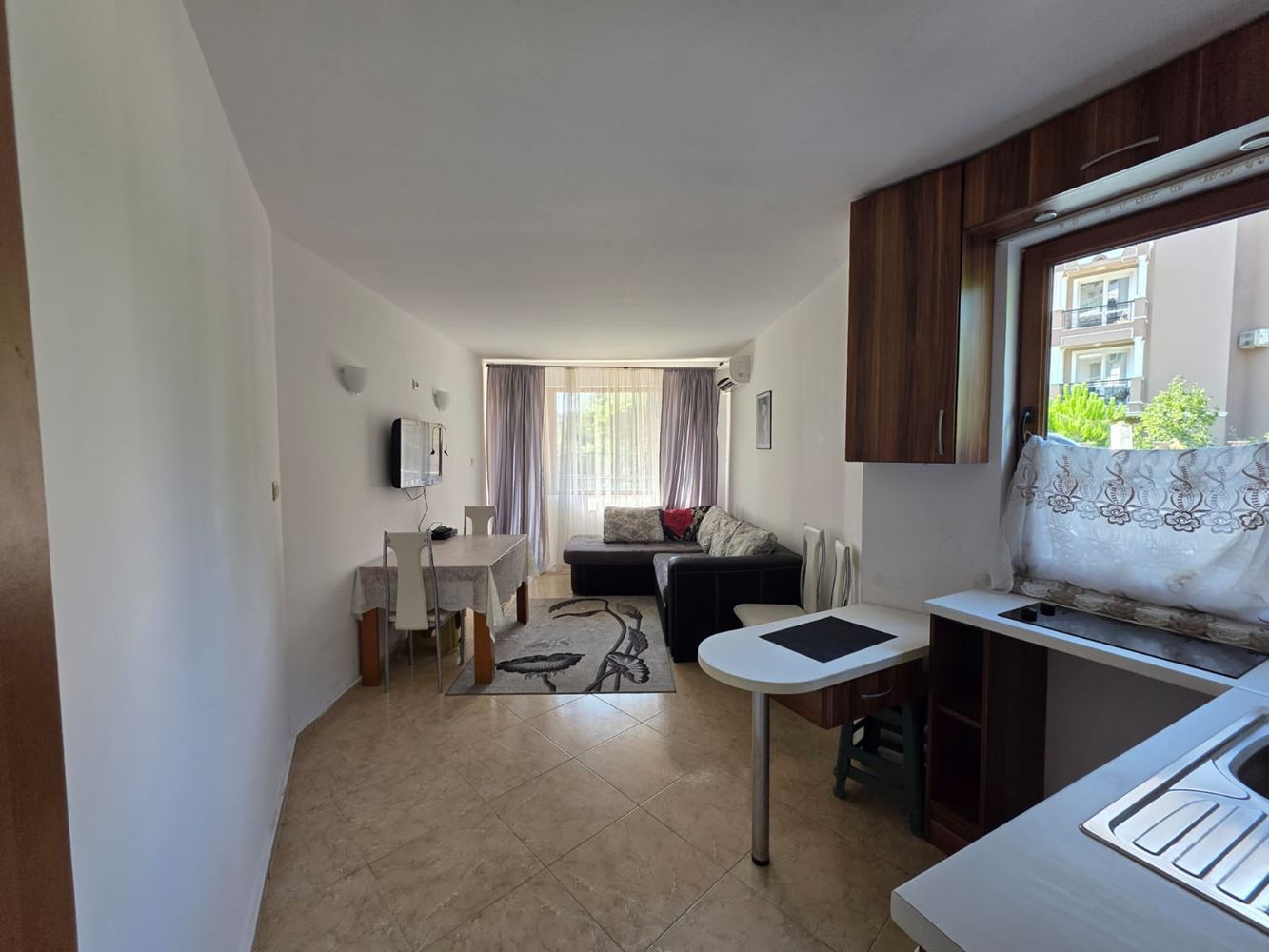 One-bedroom apartment for sale in the heart of Sunny Beach – the perfect place for your summer vacation or a new home by the sea. With a total area of 49 m2, this ground floor apartment offers convenience and comfort in modernly furnished rooms, ready for immediate occupancy. The apartment consists of a bright living room with kitchenette, a cozy bedroom, a stylish bathroom, and a spacious balcony where you can enjoy your morning coffee or relax after a long day. All furniture and appliances are new and modern, providing you with all the necessary amenities for a peaceful life.