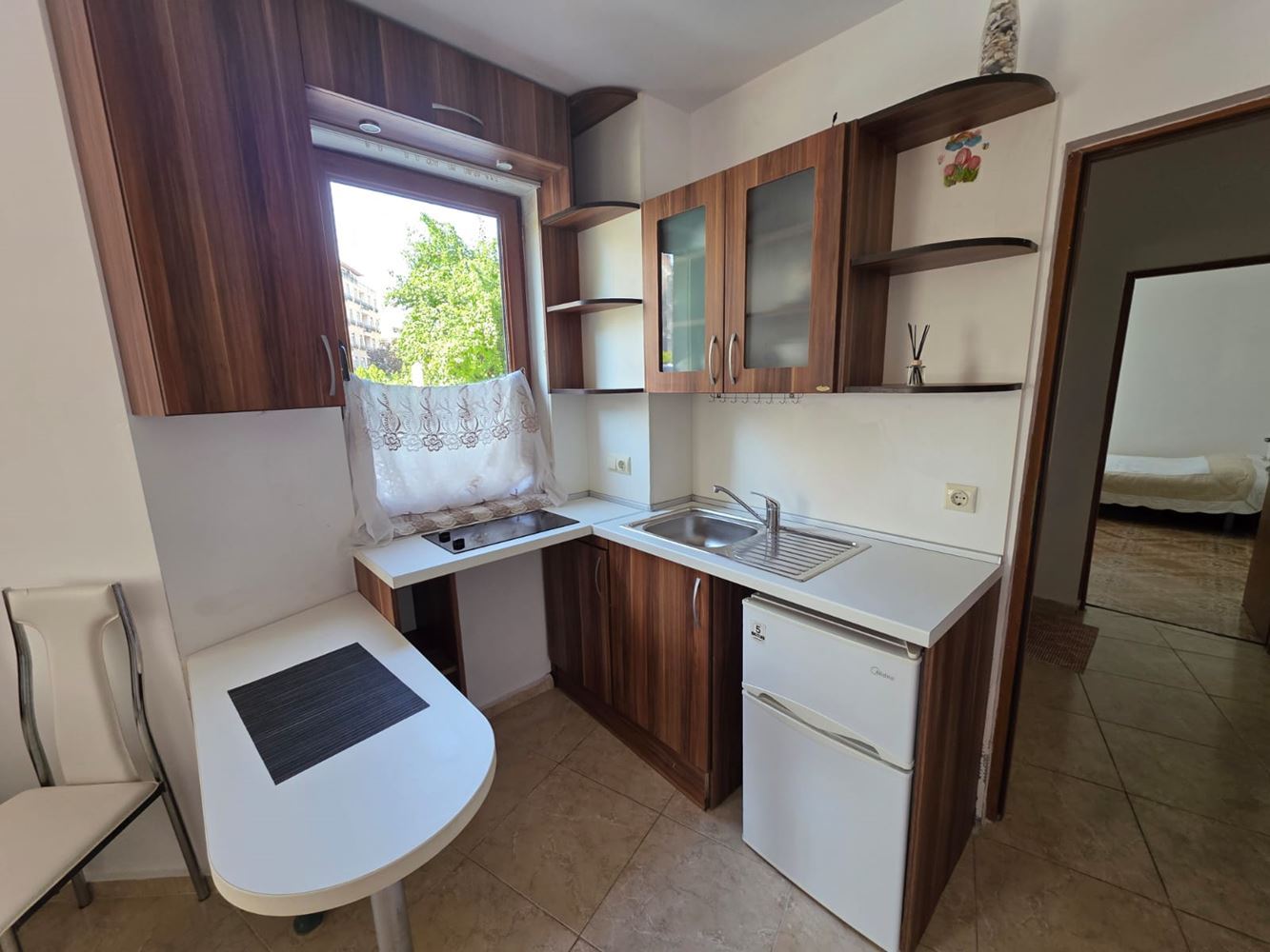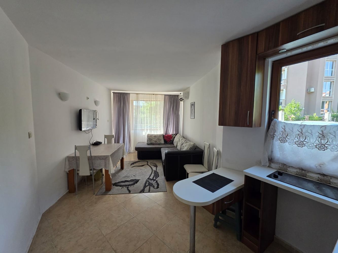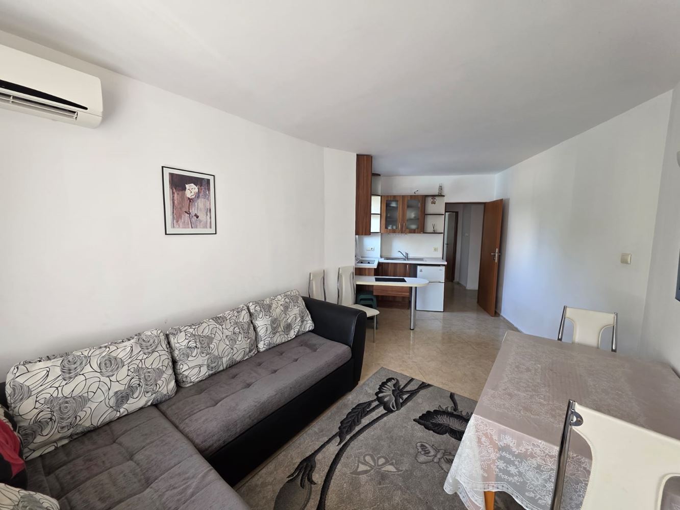 One-bedroom apartment for sale in the heart of Sunny Beach – the perfect place for your summer vacation or a new home by the sea. With a total area of 49 m2, this ground floor apartment offers convenience and comfort in modernly furnished rooms, ready for immediate occupancy. The apartment consists of a bright living room with kitchenette, a cozy bedroom, a stylish bathroom, and a spacious balcony where you can enjoy your morning coffee or relax after a long day. All furniture and appliances are new and modern, providing you with all the necessary amenities for a peaceful life.