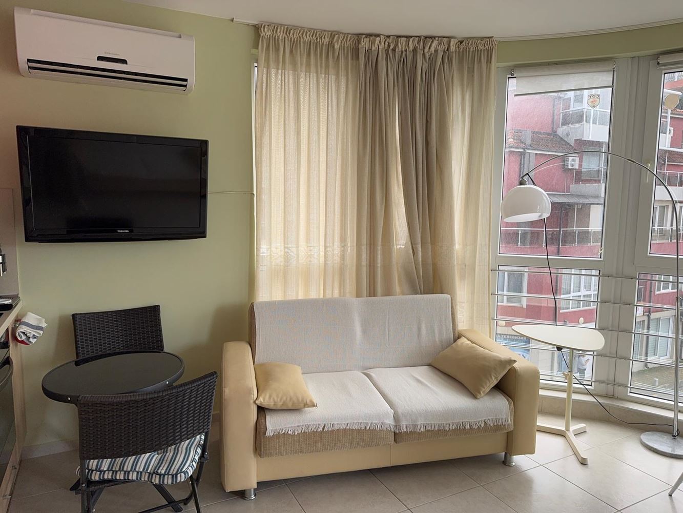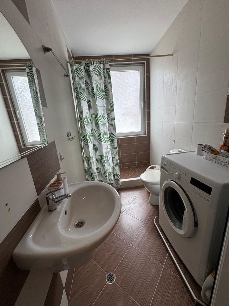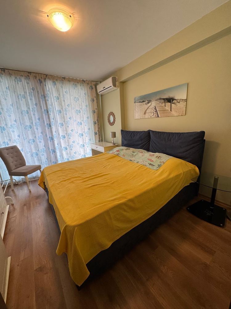 The apartment is located in a building with an elevator and offers a functional layout with no walk-through rooms: a spacious entrance hall, two separate rooms – a cozy bedroom and a bright, spacious living room with a kitchen area. The living room is the highlight of the property, featuring panoramic bay windows that reveal a pleasant urban view and fill the space with abundant natural light. Both rooms have access to a comfortable terrace – a perfect spot for morning coffee or an evening glass of wine. The bathroom is large and bright, equipped with a toilet and carefully selected finishing materials for maximum comfort. The apartment is sold fully furnished with luxury furniture and high-quality appliances – ready for immediate move-in. Comfort is ensured by air conditioning in both rooms.