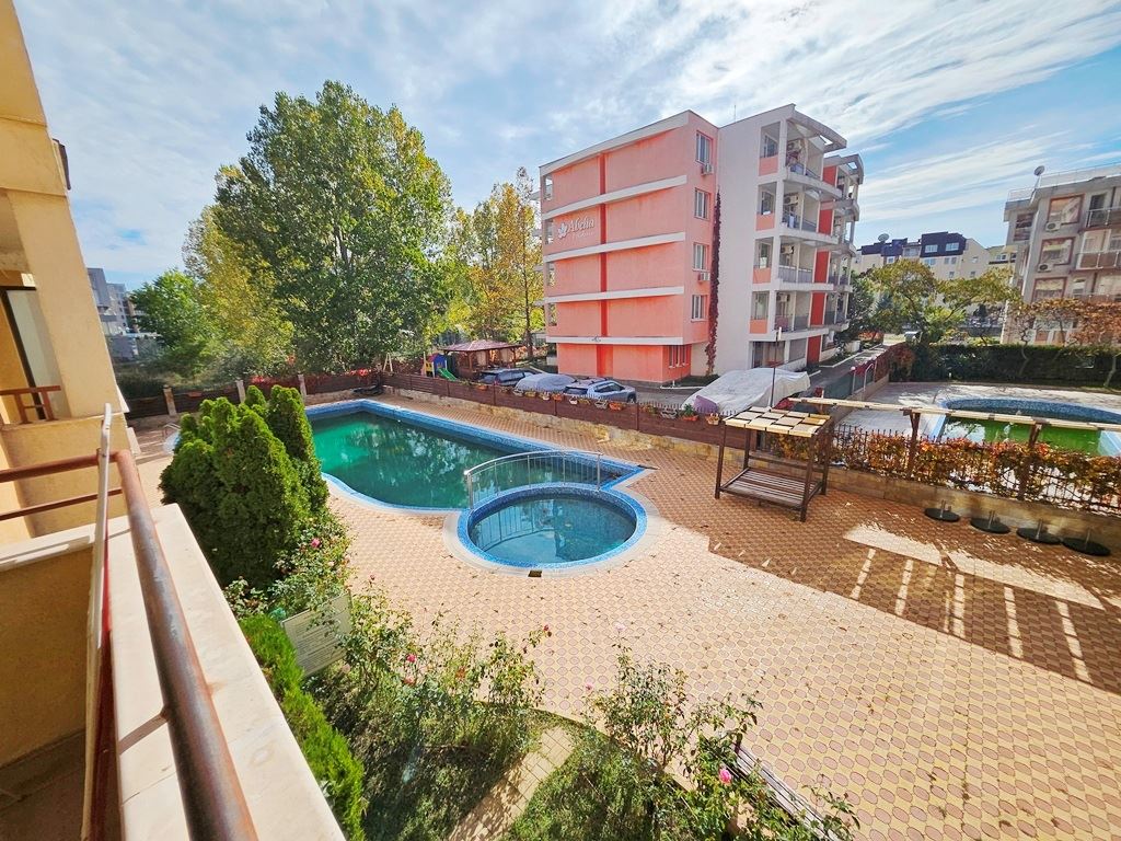 One-bedroom apartment with panoramic pool view in a complex in Sunny Beach