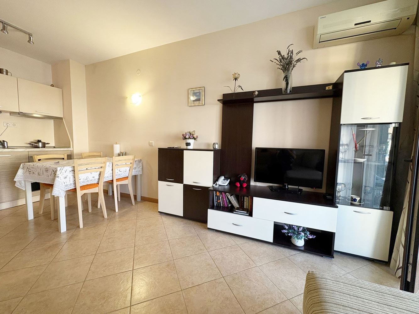 With an area of 49 square meters, this apartment is located on the ground floor, offering a great terrace with access to the courtyard and the pool, which gives an additional feeling of relaxation by the sea. The property is offered fully furnished, making it ready to move in immediately after purchase.