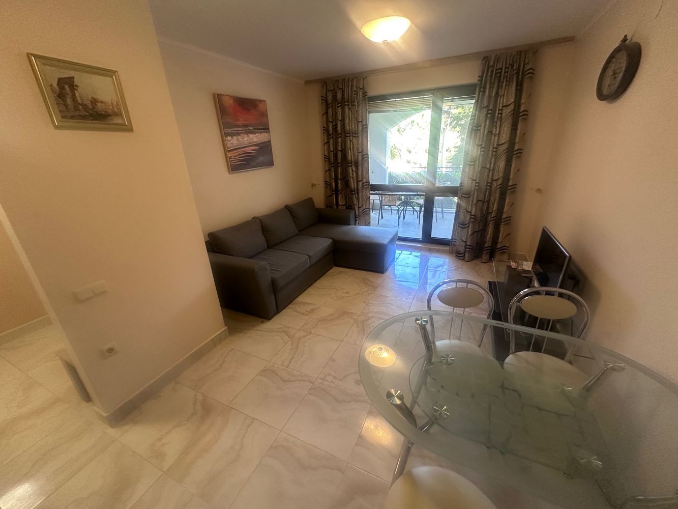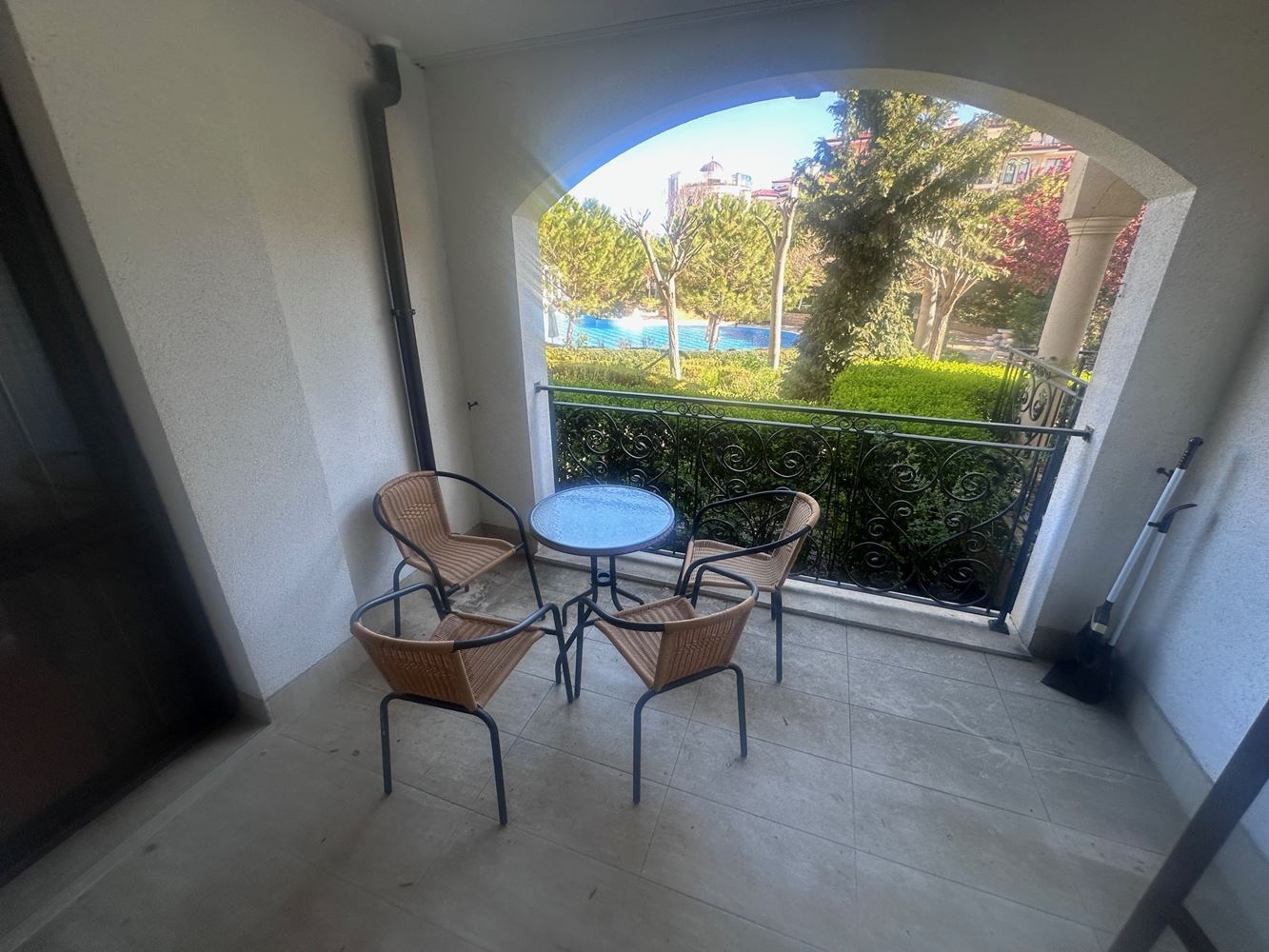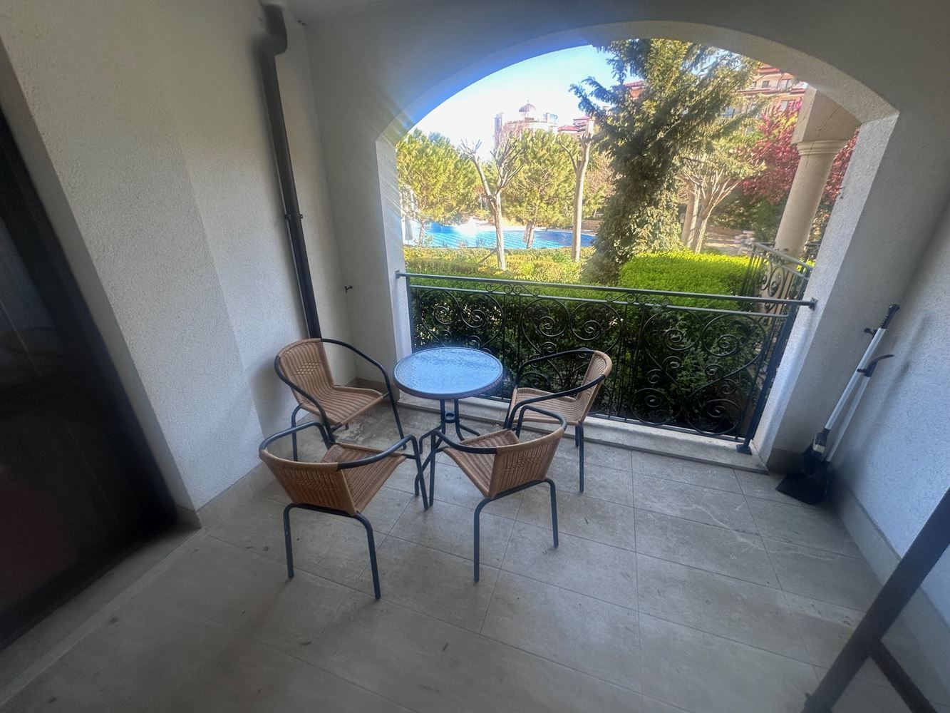 For sale one bedroom apartment with pool view in the prestigious town of Nessebar. With a total area of 67,76 m2, this high ground floor apartment offers the ideal combination of comfort and elegance. The property features a spacious living room, one cosy bedroom, a modern bathroom and a balcony offering breathtaking pool views.