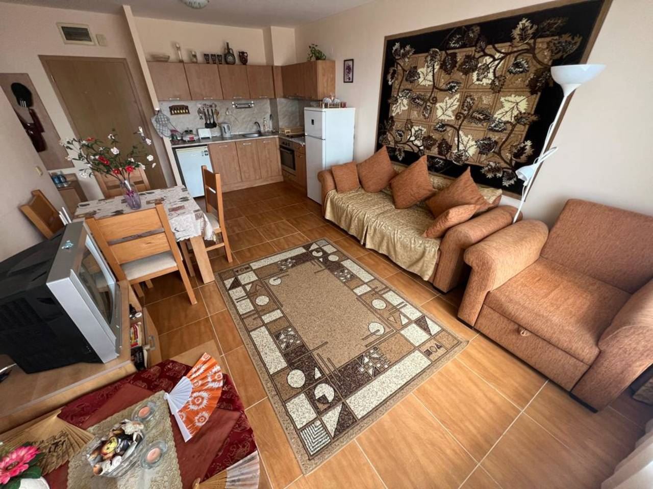 A wonderful opportunity to buy a one bedroom apartment with stunning sea views in the resort town of Sveti Vlas. The apartment is sold furnished and equipped with appliances so that you can immediately move in and enjoy life on the sea coast. The third floor of the building has a total area of 64 m2. The layout of the apartment consists of an entrance hall, a hall with kitchen area, a bedroom, a bathroom and a beautiful balcony with a unique panorama. The spacious and comfortable apartment complex is located just 100 meters from the sea. Here you will find many amenities including an indoor swimming pool, gym, sauna and steam room. In addition, the complex is equipped with a modern security system and round-the-clock security, spacious parking and a number of other amenities. Developed and active neighborhood of the unique town on the sea - Sveti Vlas.