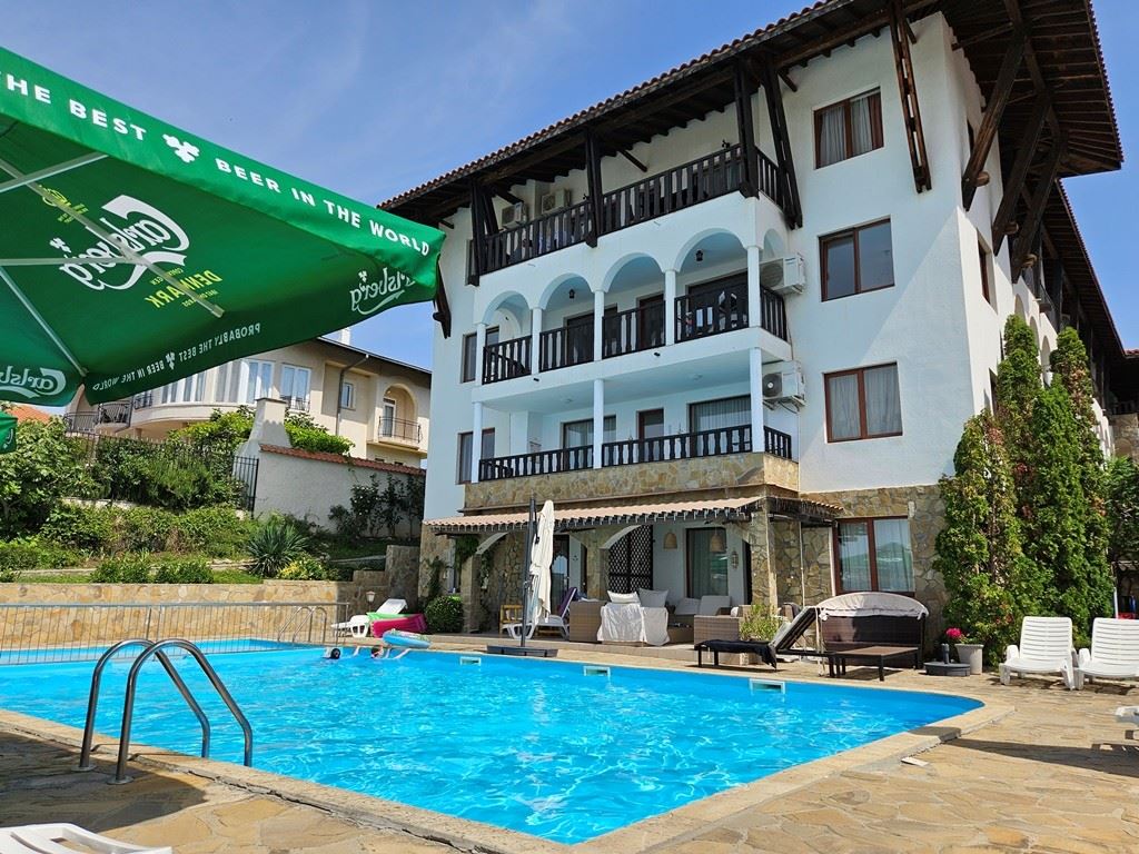 The complex is designed in a traditional Bulgarian architectural style and is surrounded by lush greenery that creates the perfect romantic atmosphere. Just 100 metres from the complex are the beautiful beach and the modern marina. For the convenience of its residents, the complex offers a lovely swimming pool, a romantic restaurant overlooking the sea and secure parking.