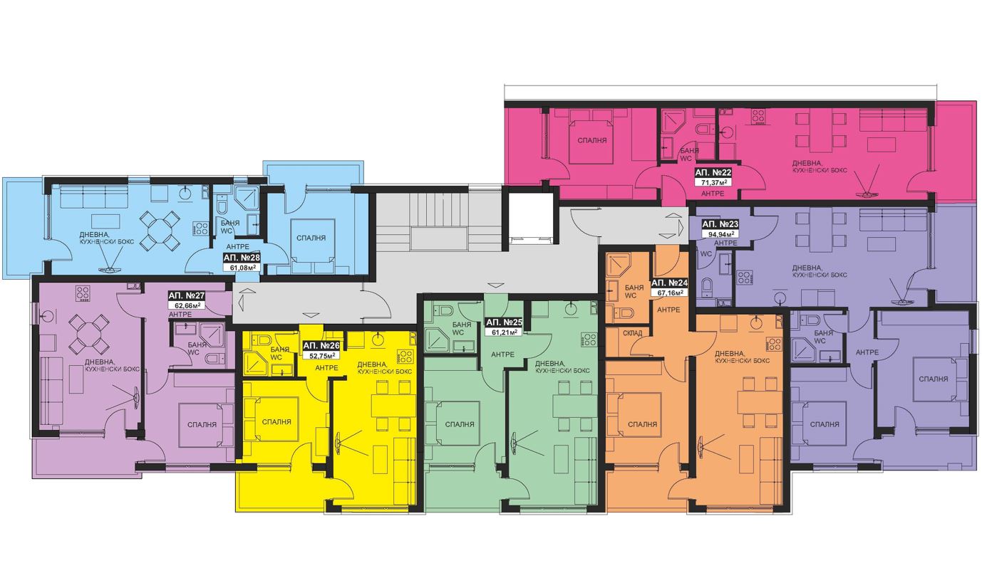 For sale - one-bedroom flat in a high-quality house under construction for permanent living in the central part of the town of Pomorie. The house is being built in an area rich in mud baths, rehabilitation centres and sanatoriums. The area has all necessary infrastructure including school, kindergarten, polyclinic, as well as health center, shops, restaurants, cafes and a bus stop. The beach is about 700 meters away. The house is of high quality construction and is designed for year round use, permanently inhabited, including the native population. The offered flat is for sale finished and ready to be furnished and has a size 52.75m2. It is located on the fifth non-recessed floor.