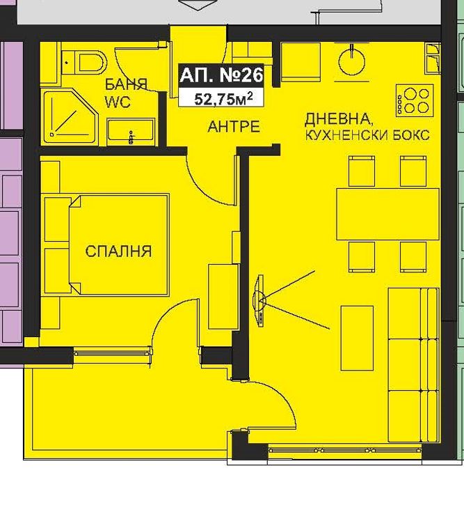 1 bedroom 1 balcony, 1 bathroom
