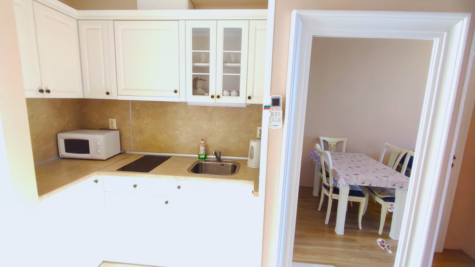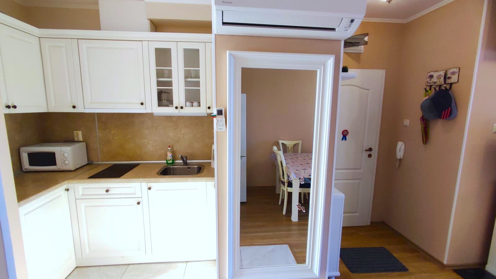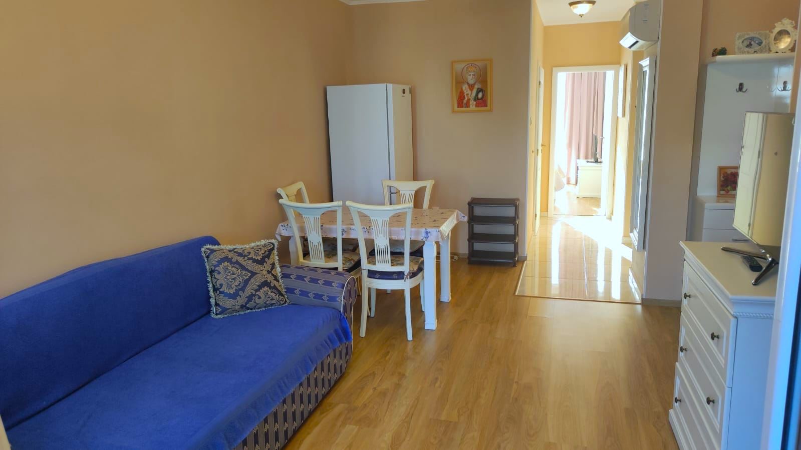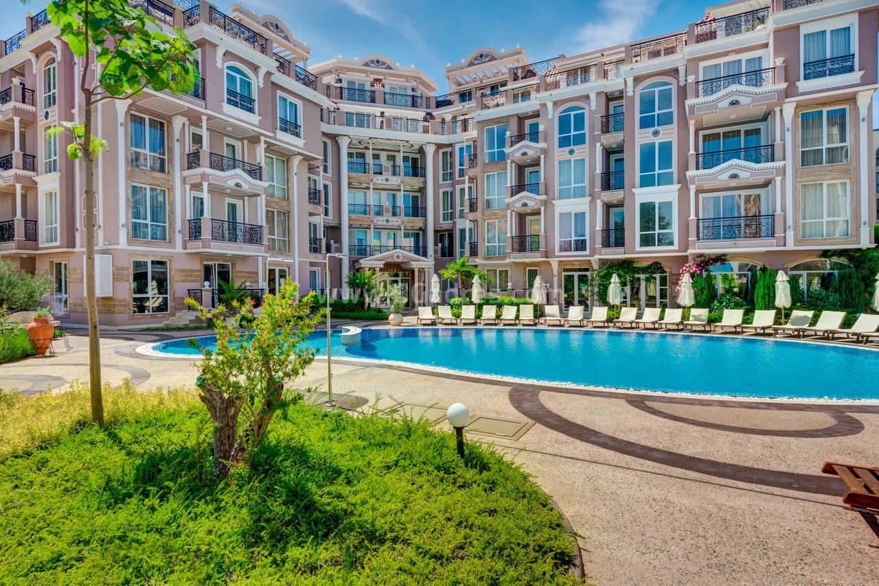One bedroom furnished flat in a quiet upmarket neighbourhood in the resort of Sunny Beach. The beach is only a ten minute walk away. Nearby is a landscaped park and within walking distance to all infrastructure of the resort, including restaurants, bars, discos, shops, children's and recreational attractions, banks, clinics, currency exchange, etc. The complex has excellent quality construction, luxurious interior and exterior of the building. The infrastructure and services in the complex offer its residents a fountain, a large barbecue area, a football field, a tennis court, a garden with gazebos and seating, two outdoor swimming pools for children and adults, outdoor fitness area, sun loungers and umbrellas, a steam bath, a Finnish sauna, a spa centre, medical services for children and adults, year-round services and property management. The flat is fully furnished and has everything you need for a comfortable stay. The property has an area of 60 m2 and is located on the third floor.