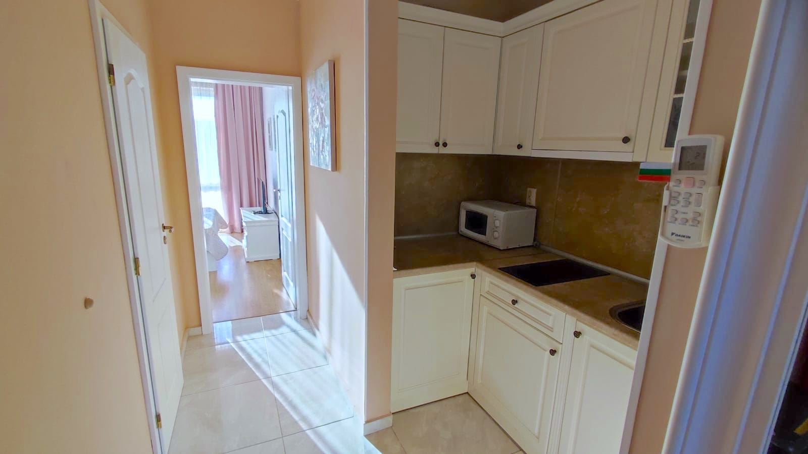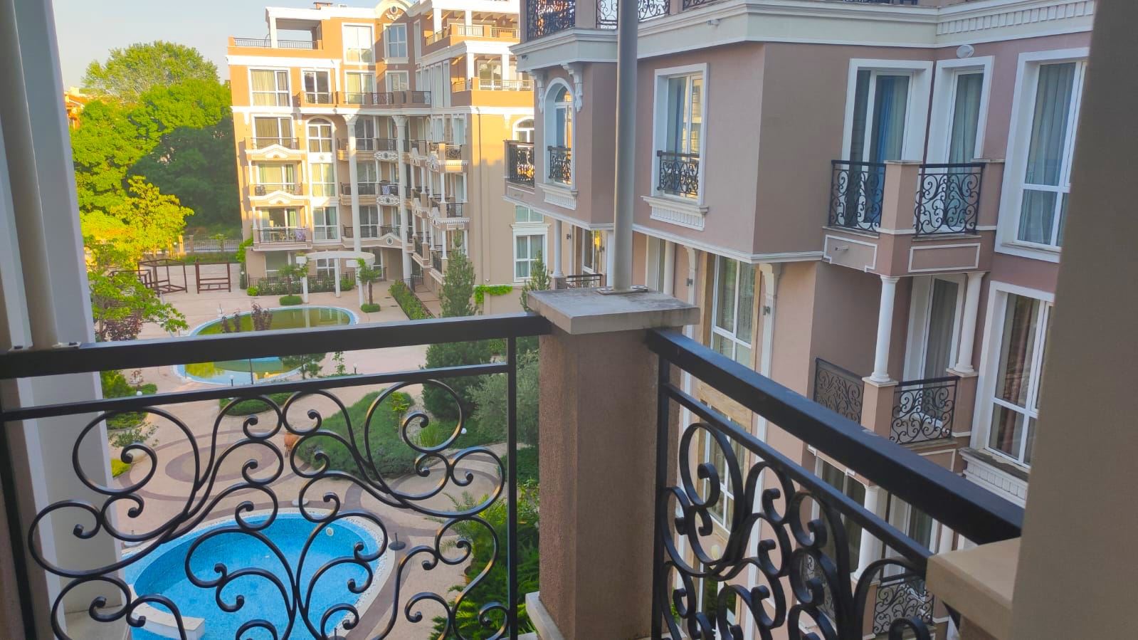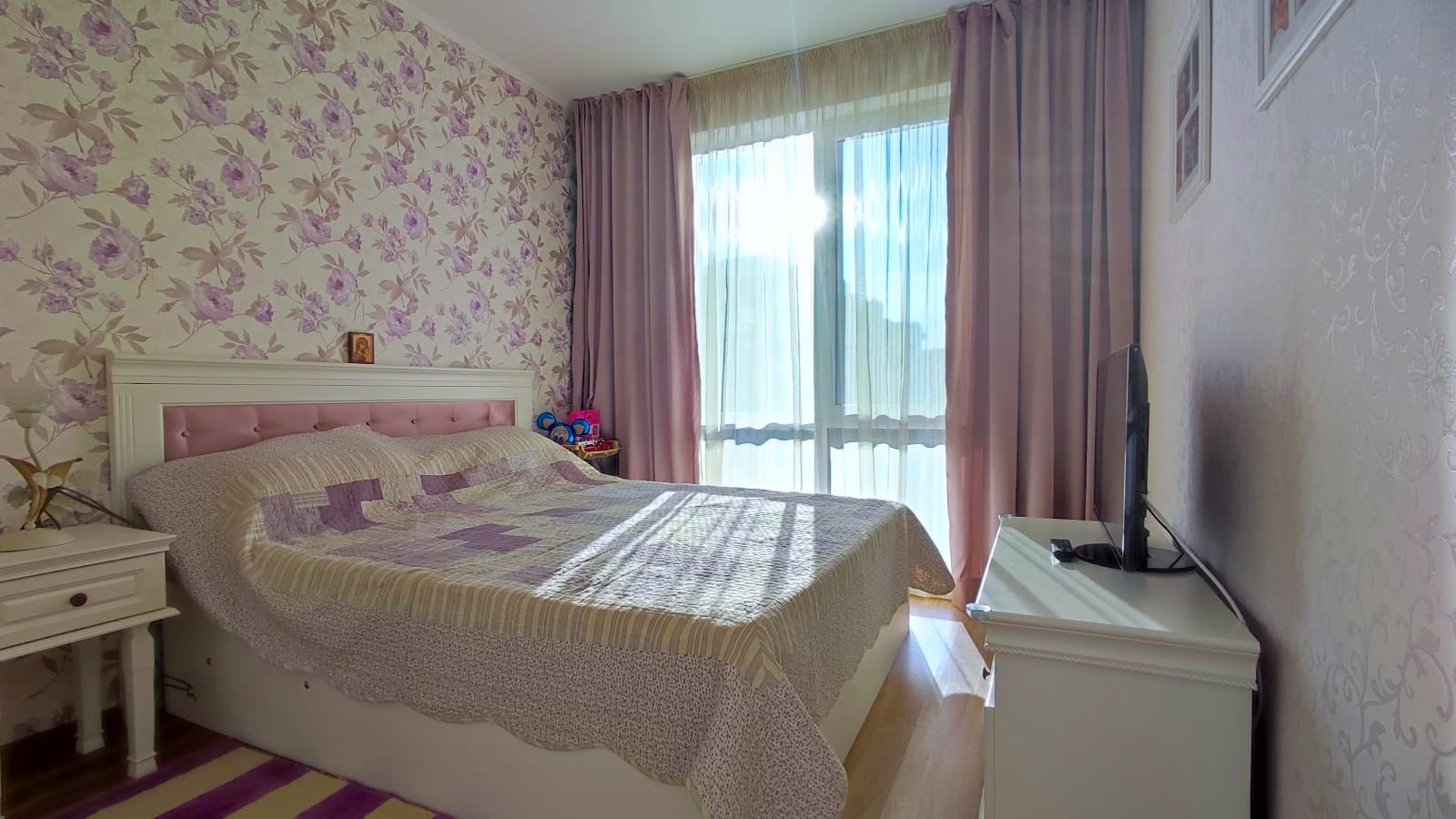 One bedroom furnished flat in a quiet upmarket neighbourhood in the resort of Sunny Beach. The beach is only a ten minute walk away. Nearby is a landscaped park and within walking distance to all infrastructure of the resort, including restaurants, bars, discos, shops, children's and recreational attractions, banks, clinics, currency exchange, etc. The complex has excellent quality construction, luxurious interior and exterior of the building. The infrastructure and services in the complex offer its residents a fountain, a large barbecue area, a football field, a tennis court, a garden with gazebos and seating, two outdoor swimming pools for children and adults, outdoor fitness area, sun loungers and umbrellas, a steam bath, a Finnish sauna, a spa centre, medical services for children and adults, year-round services and property management. The flat is fully furnished and has everything you need for a comfortable stay. The property has an area of 60 m2 and is located on the third floor.