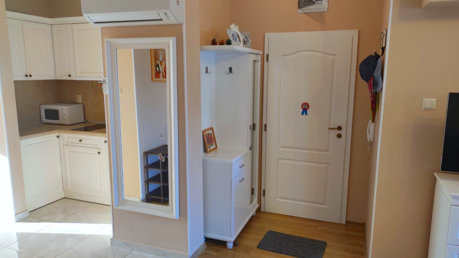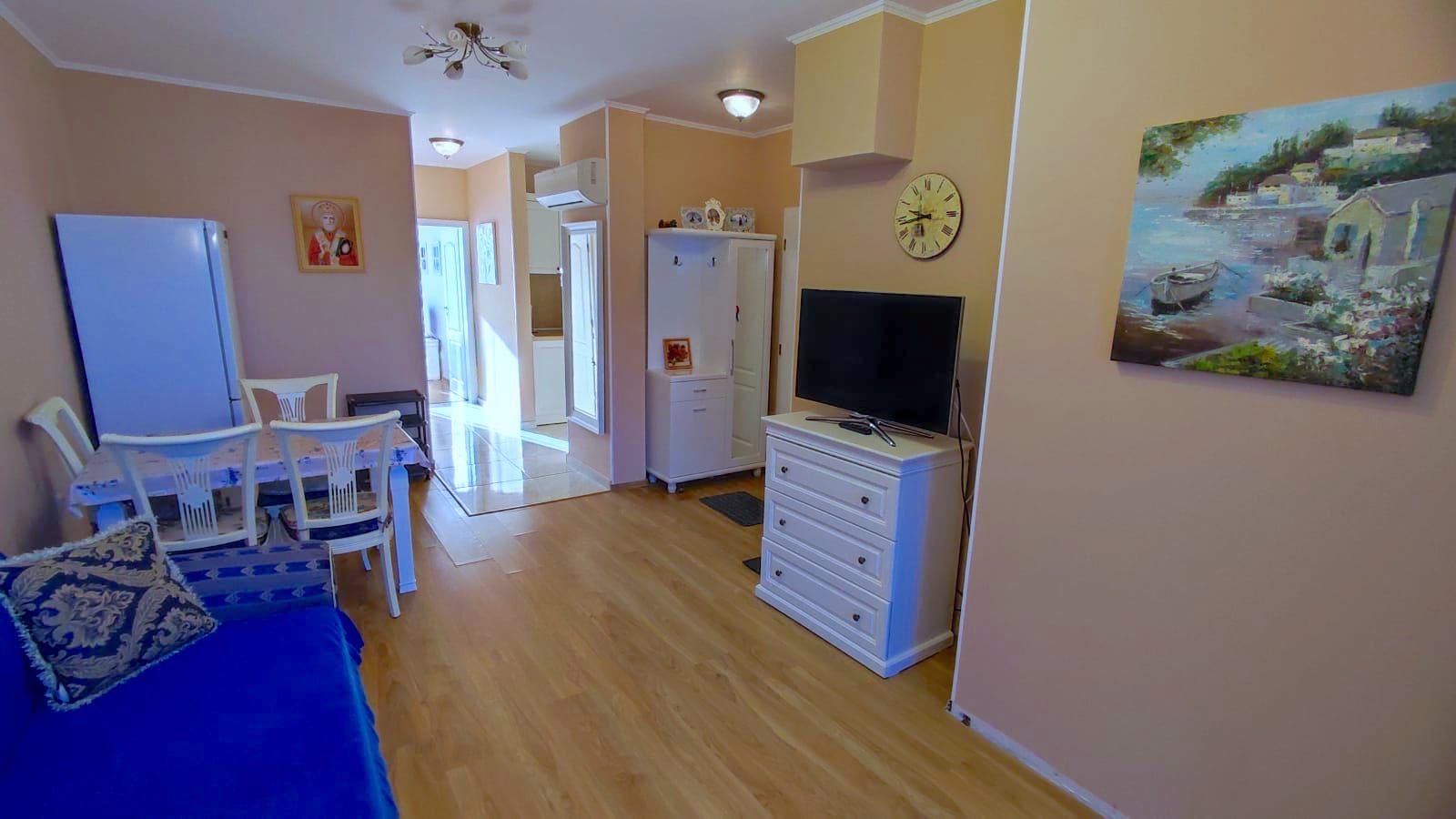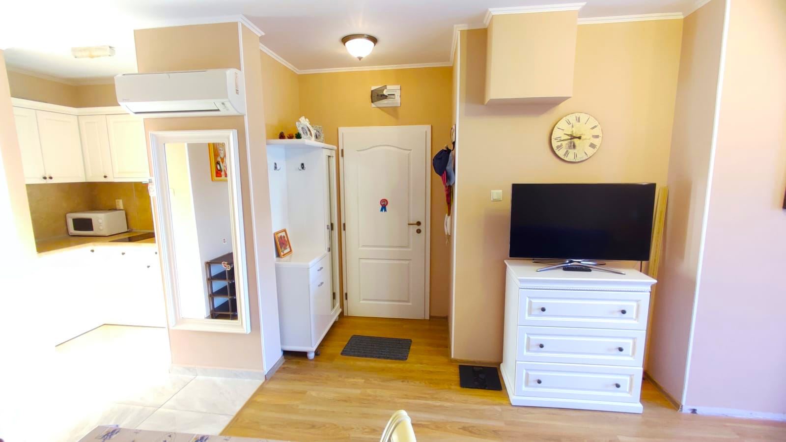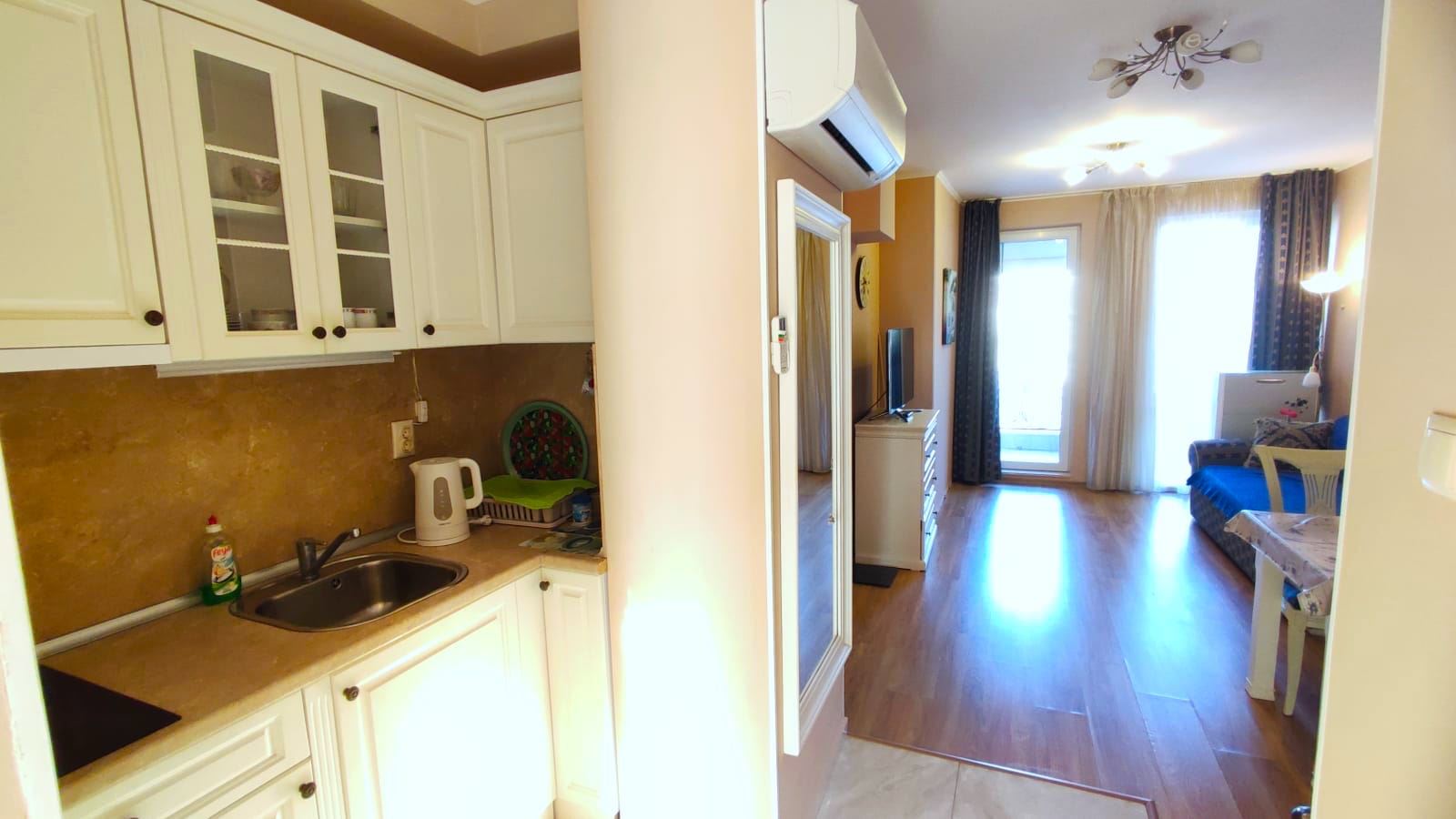 One bedroom furnished flat in a quiet upmarket neighbourhood in the resort of Sunny Beach. The beach is only a ten minute walk away. Nearby is a landscaped park and within walking distance to all infrastructure of the resort, including restaurants, bars, discos, shops, children's and recreational attractions, banks, clinics, currency exchange, etc. The complex has excellent quality construction, luxurious interior and exterior of the building. The infrastructure and services in the complex offer its residents a fountain, a large barbecue area, a football field, a tennis court, a garden with gazebos and seating, two outdoor swimming pools for children and adults, outdoor fitness area, sun loungers and umbrellas, a steam bath, a Finnish sauna, a spa centre, medical services for children and adults, year-round services and property management. The flat is fully furnished and has everything you need for a comfortable stay. The property has an area of 60 m2 and is located on the third floor.