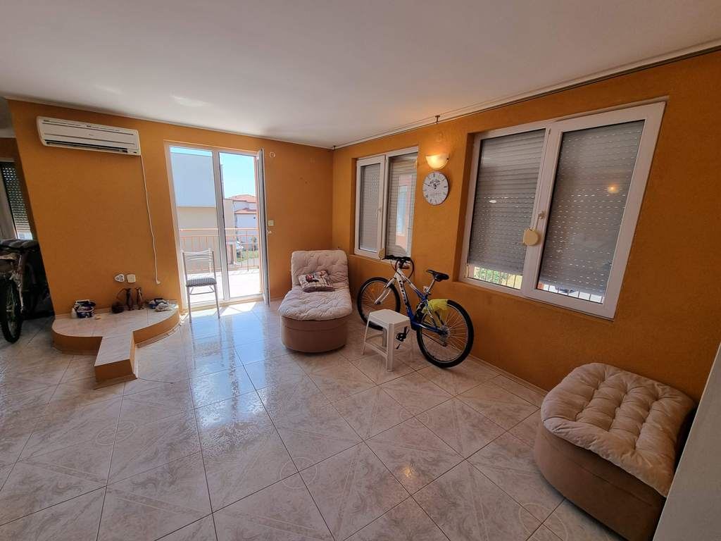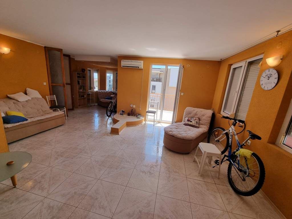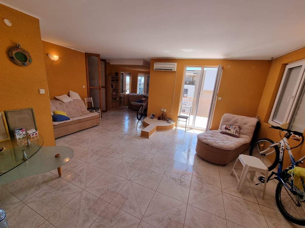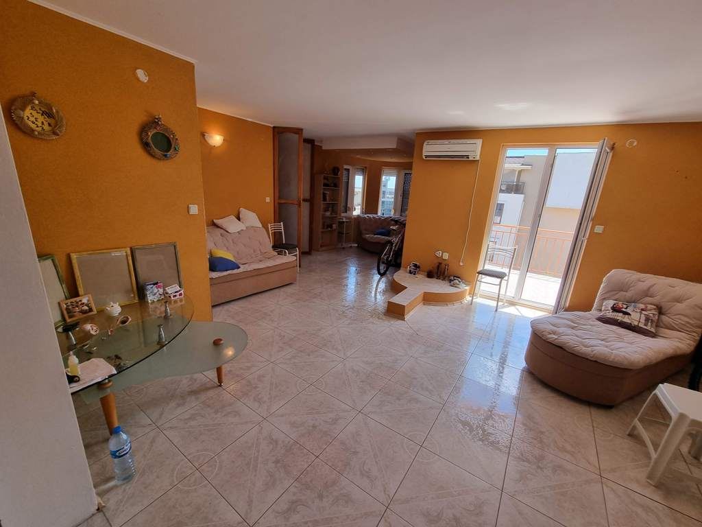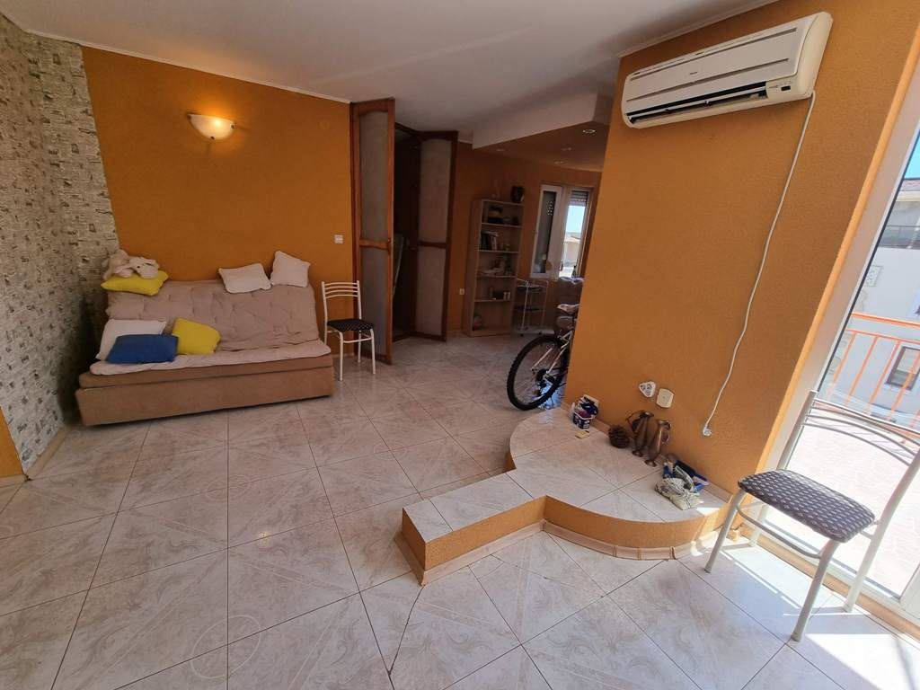 One bedroom large apartment for year-round living in the beautiful seaside village of Ravda. One bedroom apartment with an area of 94 m2 is located on the last fourth floor of a residential building located on a quiet street close to the sea and the center of Ravda. It consists of a living room, separate kitchen, bathroom with toilet, bedroom and a balcony. The apartment is fully equipped with everything you need. All infrastructure necessary for living and recreation is in walking distance. Perfect for year-round use. No maintenance costs.