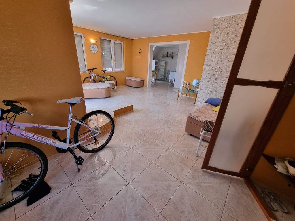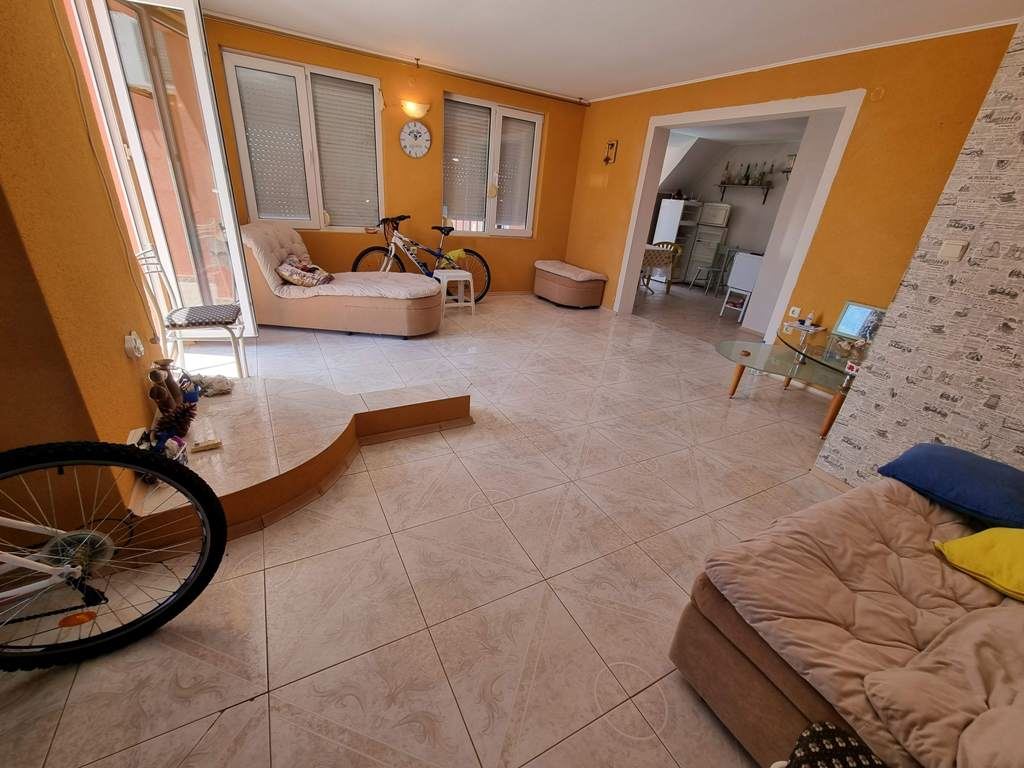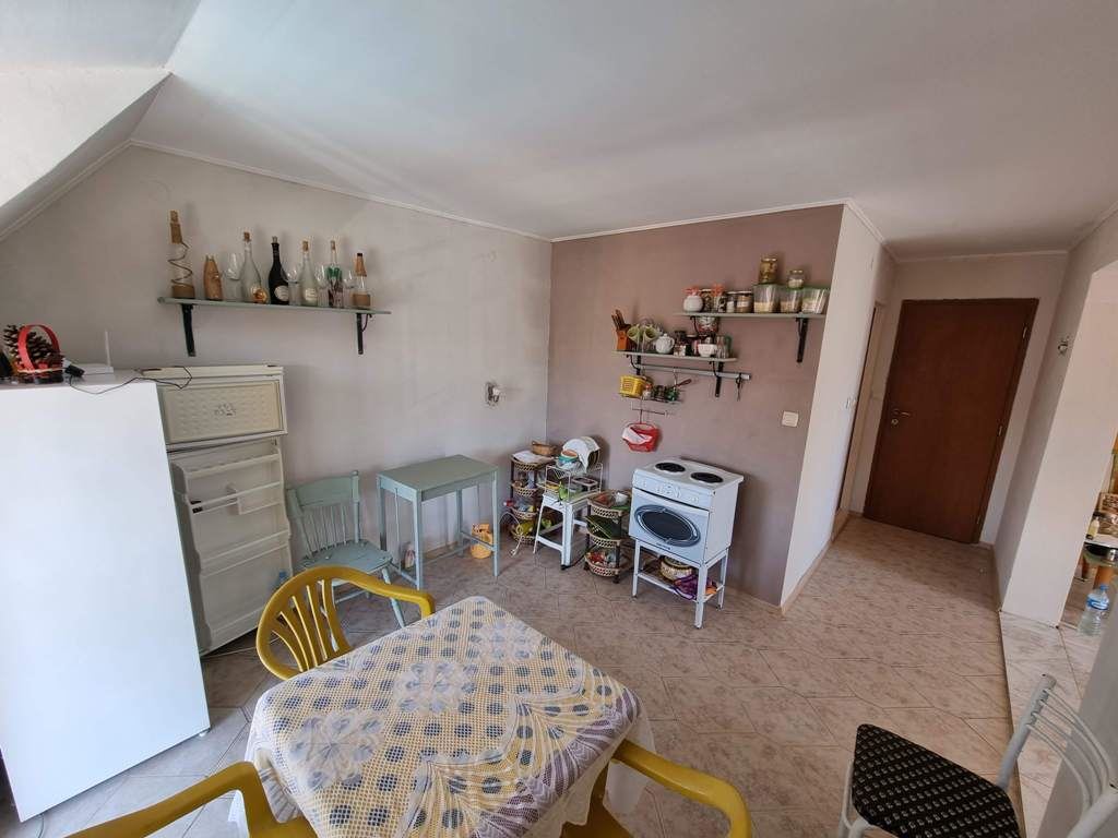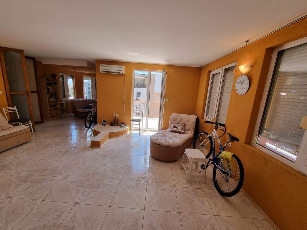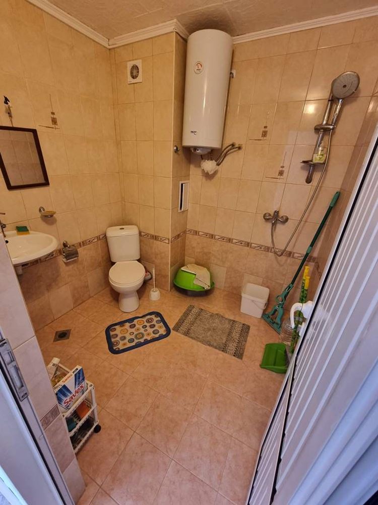 One bedroom large apartment for year-round living in the beautiful seaside village of Ravda. One bedroom apartment with an area of 94 m2 is located on the last fourth floor of a residential building located on a quiet street close to the sea and the center of Ravda. It consists of a living room, separate kitchen, bathroom with toilet, bedroom and a balcony. The apartment is fully equipped with everything you need. All infrastructure necessary for living and recreation is in walking distance. Perfect for year-round use. No maintenance costs.