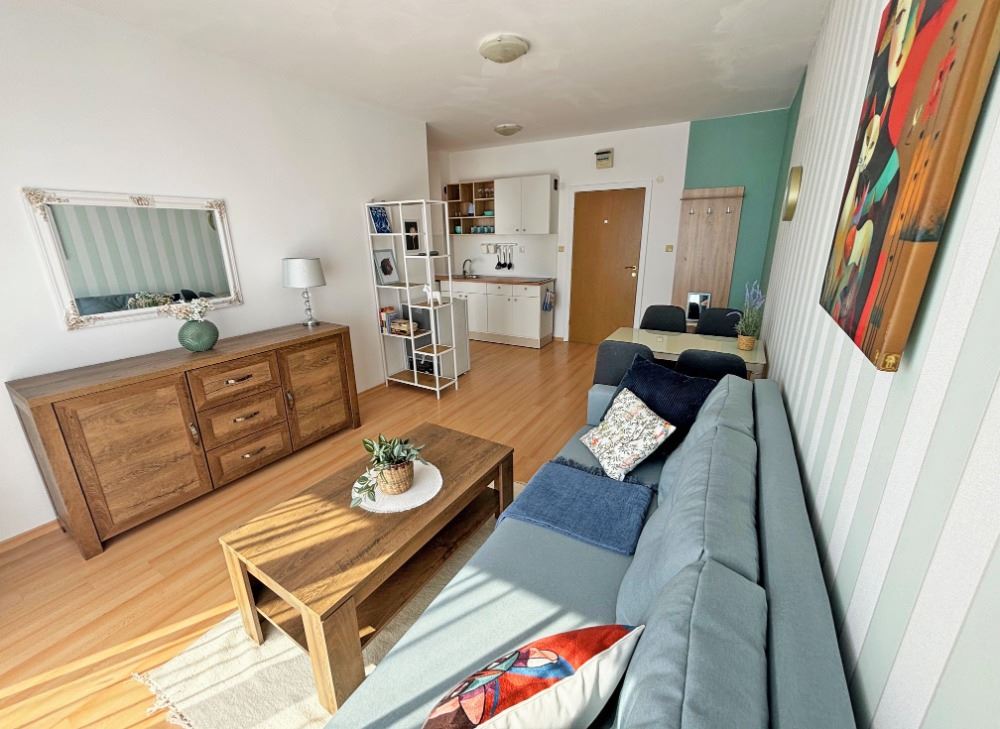 The apartment consists of a comfortable living area with space for a kitchenette, a separate bedroom, a bathroom with toilet, and a pleasant balcony – perfect for morning coffee and relaxation. It has been newly renovated and is sold furnished, allowing you to move in immediately without additional expenses. Practical layout, bright spaces, and a cosy atmosphere combined with a modern look. The building has Act 16, and the property has an individual electricity account – key advantages for year-round, trouble-free living.