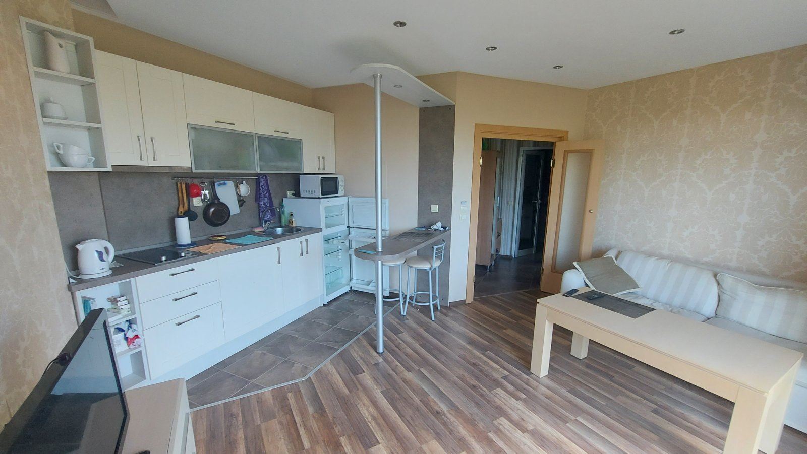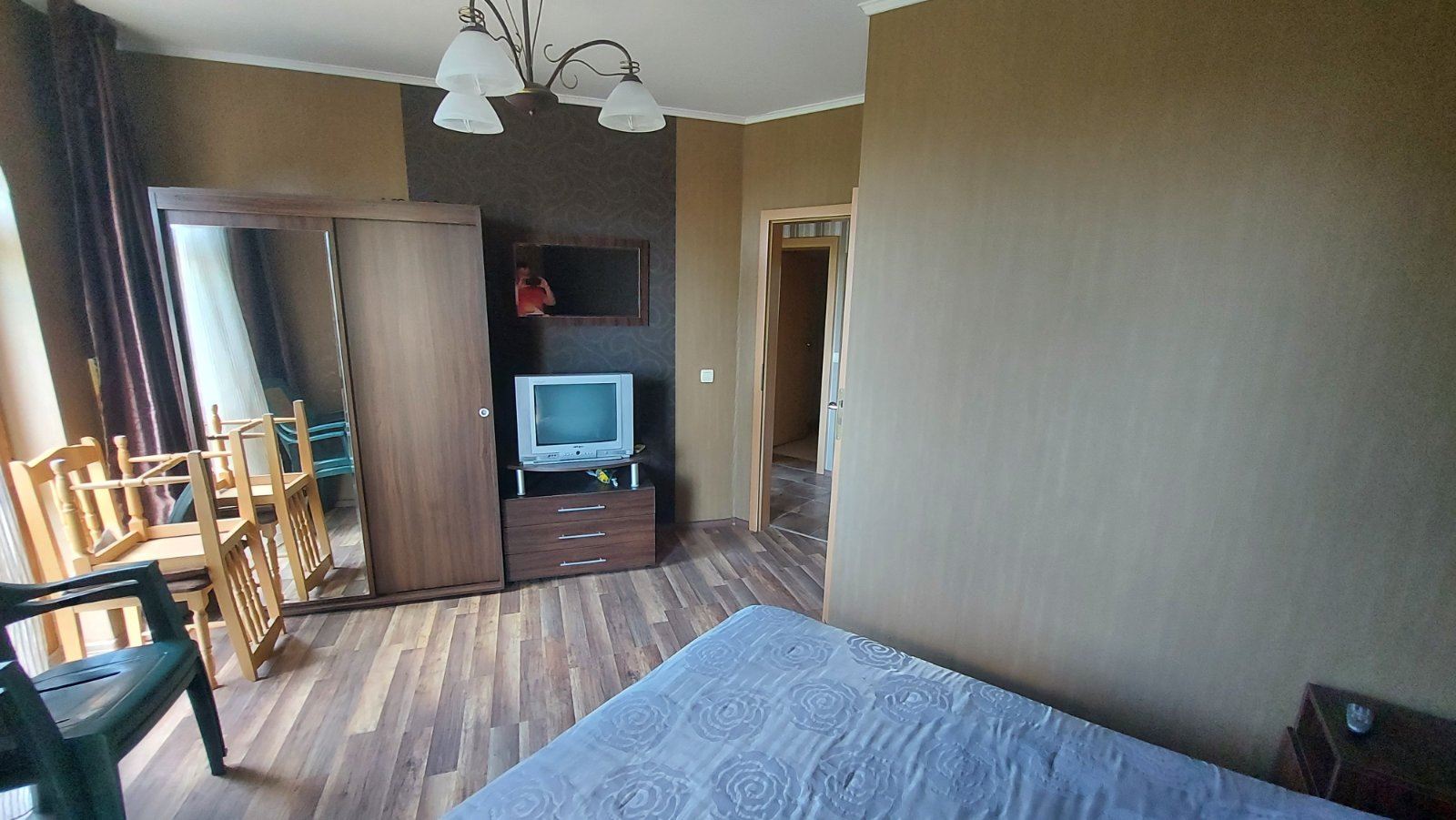One-bedroom spacious flat in a first line complex in the resort of Sunny Beach, 100 metres from the sea. A six-storey building of two buildings with separate entrances with a lift has been built on a closed guarded area. The complex infrastructure includes a swimming pool, sunbathing area with sun loungers and umbrellas, lobby bar, reception, shops, parking, well-groomed alleys for strolls. Within walking distance of the complex has everything you need for relaxation or long-term accommodation - supermarkets, restaurants, bars, casinos, night clubs and discos, souvenir shops, medical centre, public transport, bakeries, coffee shops, markets, currency exchange, banks, post offices, beauty salons and much more. The flat of 60 m2 is located on the fifth floor and is sold fully furnished and equipped.