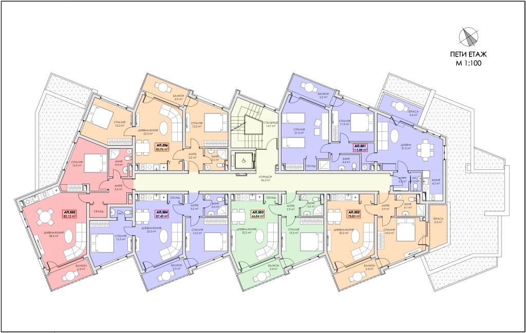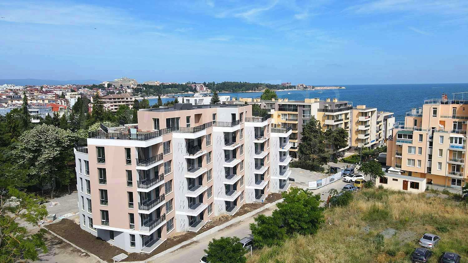 Two-bedroom panoramic apartament in new residential building in Ravda town by the sea. The area has a well developed street infrastructure and well-organized public transport, supermarkets, chain shops, Aqua Park and other necessary amenities. The flat has an area of 85.96 m2 and is located on the penultimate fifth floor. Spacious bedrooms are oriented to a quiet yard. The flat is offered in shell and core construction, installed switches and sockets, sockets for cable TV and Internet. Plumbing installations are by design, with water meters with remote reading. Five chamber PVC windows are provided. Piping will be built for air conditioners ready for future installation.