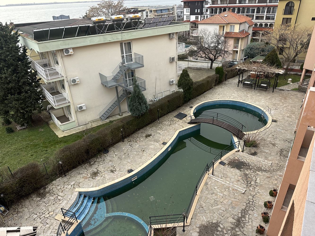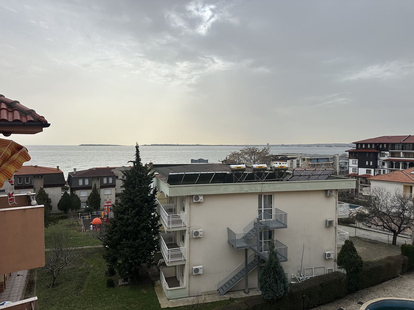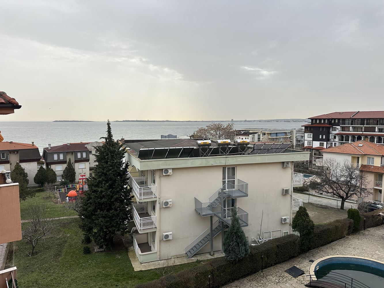 We offer for sale a bright and spacious apartment with 2 bedrooms with a total area of 96 m², located on the fourth floor of a complex situated almost on the frontline in the resort town of Sveti Vlas. Only about 150 meters from the sea, the property offers an exceptional opportunity to enjoy a frontal sea and pool view, combining tranquility, comfort, and a prestigious coastal location.