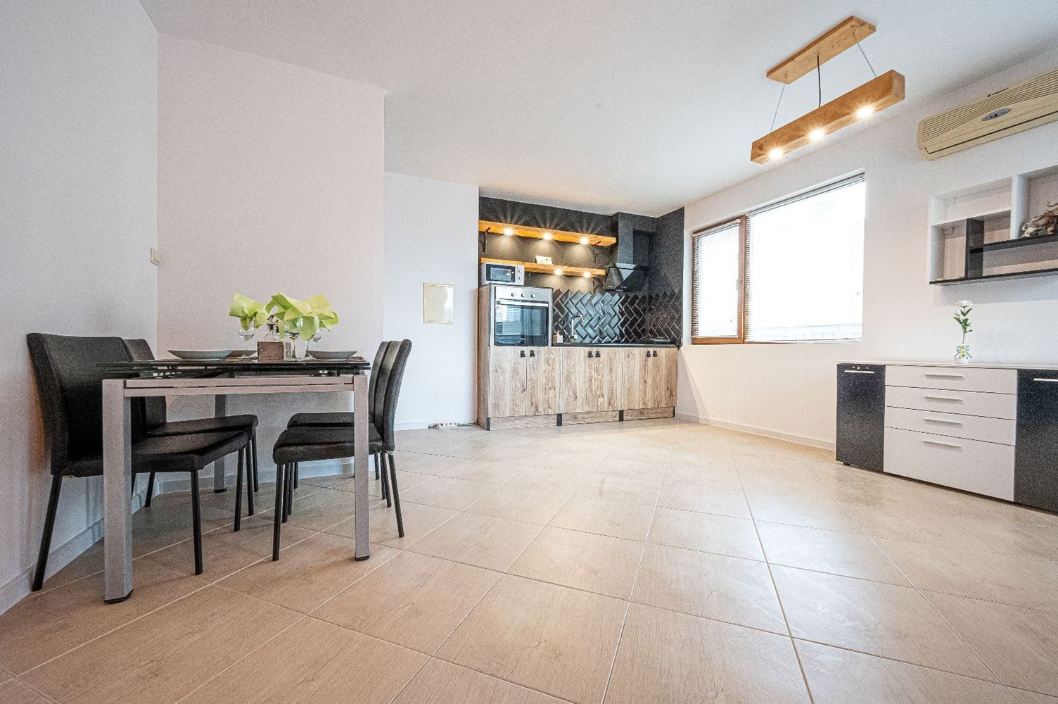 One bedroom spacious panoramic apartament in a residential complex in Sunny Beach, a perfect central area. There is a rich infrastructure, many shops, markets, restaurants and cafes for all tastes, bus stops. A large, year-round supermarket is located just a hundred meters from the flat. The flat has a total floor area of 126.81 m2 and is located on the sixth floor. There is a lift in the building. The flat consists of an entrance hall, living room with kitchenette, bedroom, bathroom with WC and a large panoramic balcony. The complex is located in a landscaped area with landscaping, a swimming pool, an area for sunbathing and recreation and a playground. There is a lobby, reception, restaurant, open air bar and outdoor parking. There are shops on the ground floor. The complex is gated and guarded at all times. The flat can be rented out if desired.