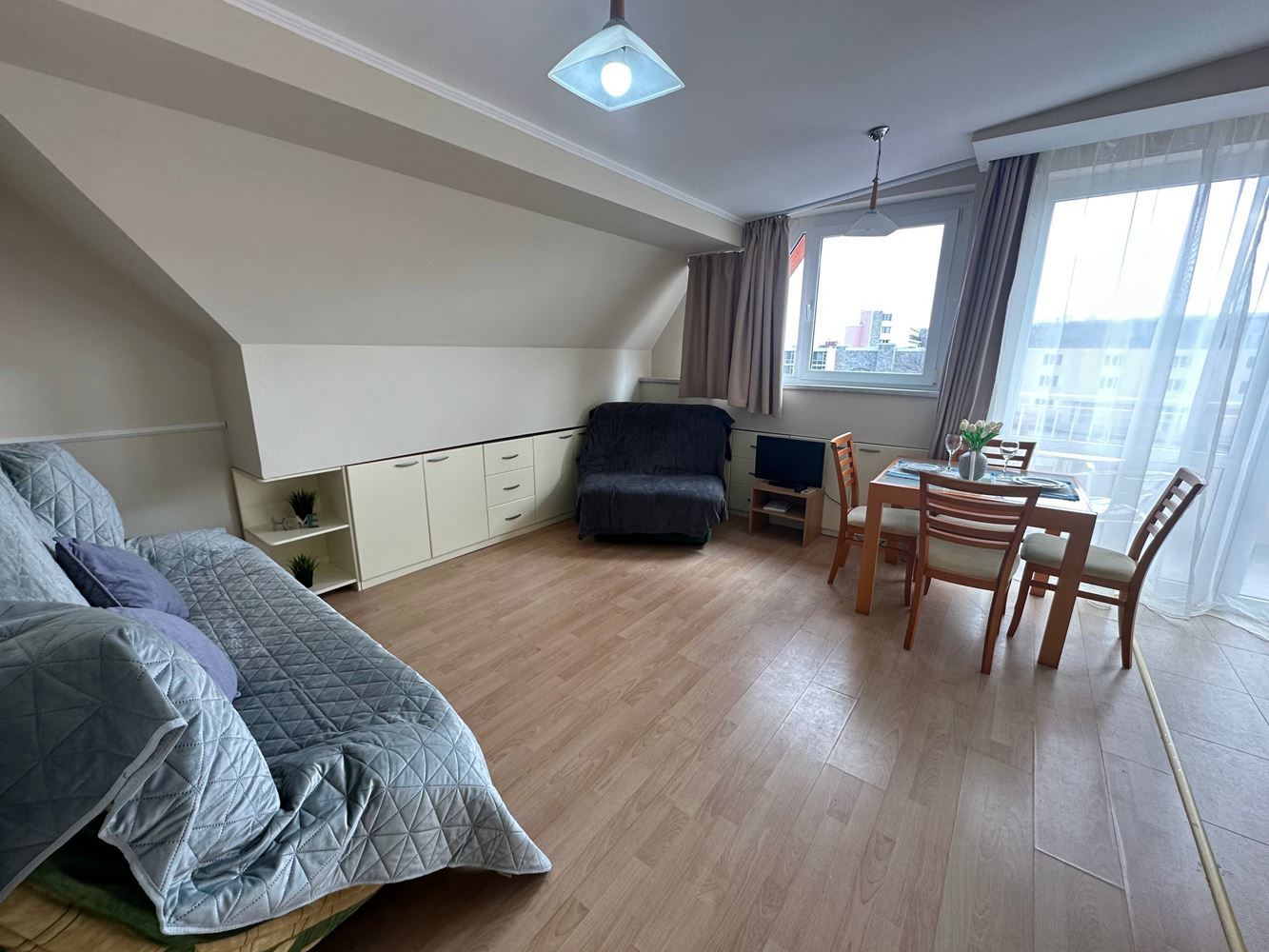 The apartment offers a functional layout with a spacious living area, a separate bedroom, a bathroom, and a terrace, which create a feeling of light and freedom. The location on the top floor provides more privacy, tranquility, and a pleasant atmosphere, away from noise. The property is suitable both for year-round living, as well as for a holiday home or an investment with good profitability.