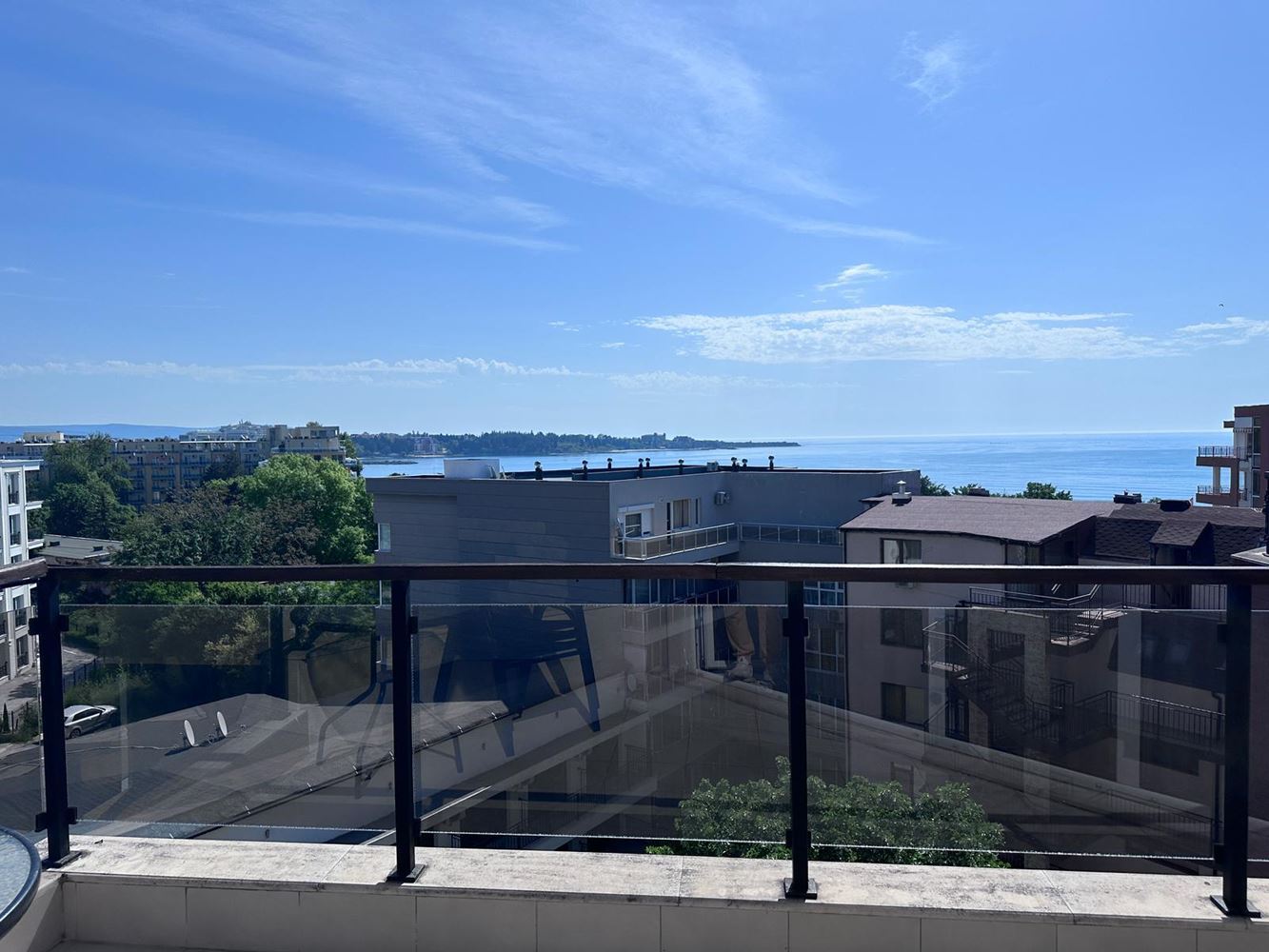 Layout: bright kitchenette with living room, one separate bedroom, one bathroom with toilet and two comfortable balconies offering panoramic sea views. The layout is functional and comfortable, and the top floor guarantees more peace and privacy. The apartment also includes a storage room – a practical space for storing luggage and seasonal items. The building has an elevator reaching the floor.