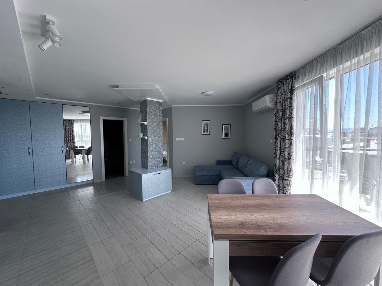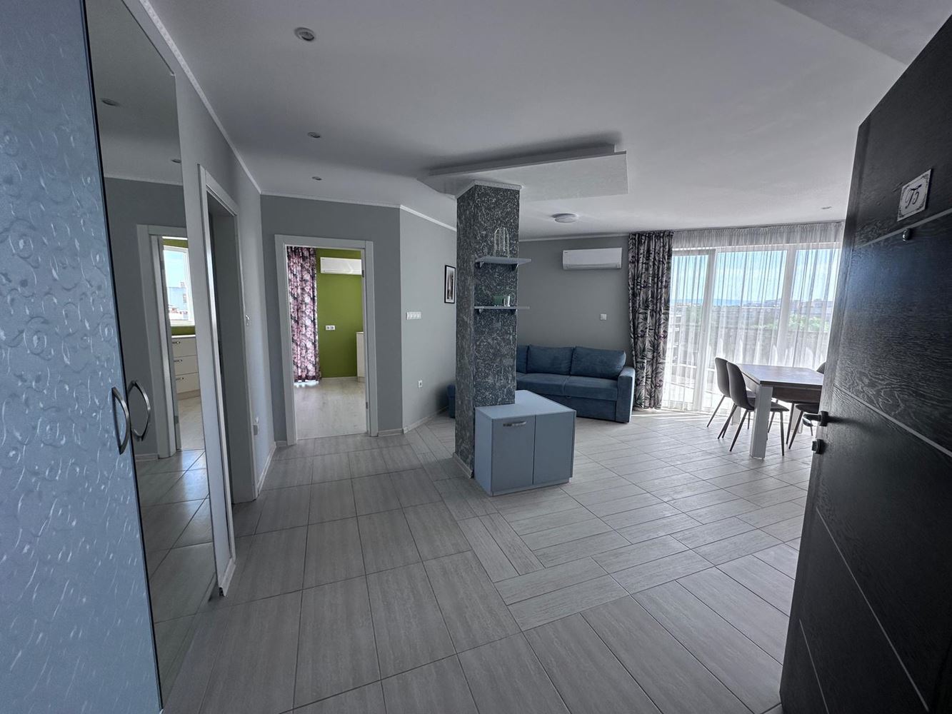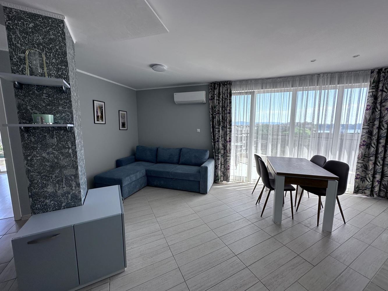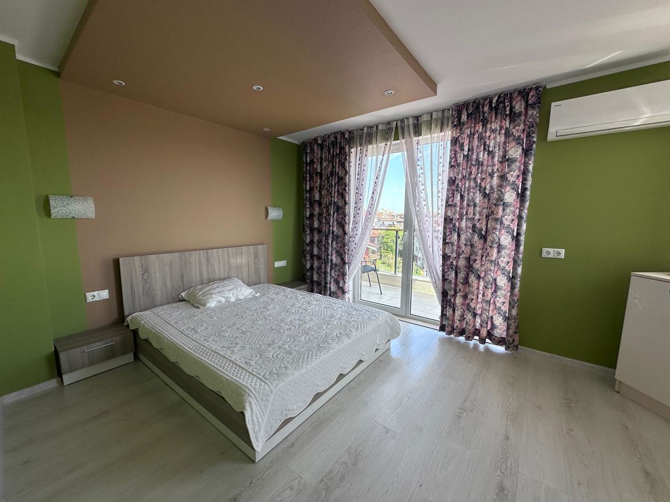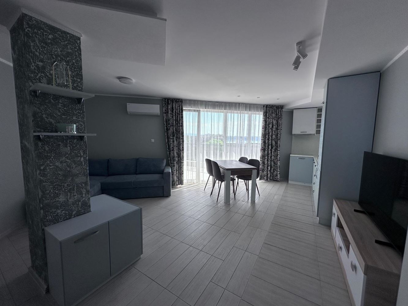 We offer for sale a spacious one-bedroom apartment with an impressive sea view, located on the top floor of a well-maintained complex in Ravda. The property has a total area of 104 m², fully renovated and furnished with new furniture and appliances – ready for immediate move-in or rental.