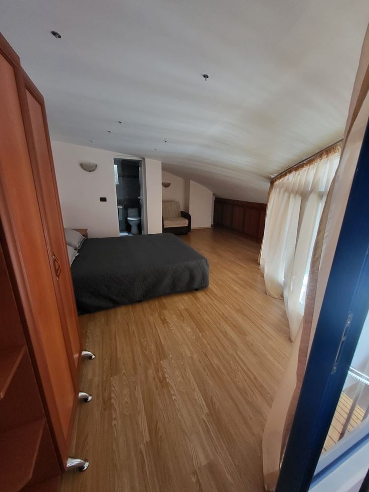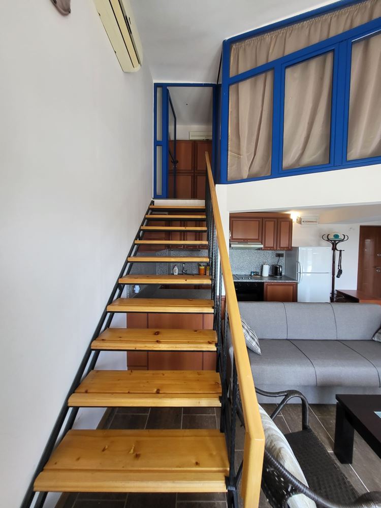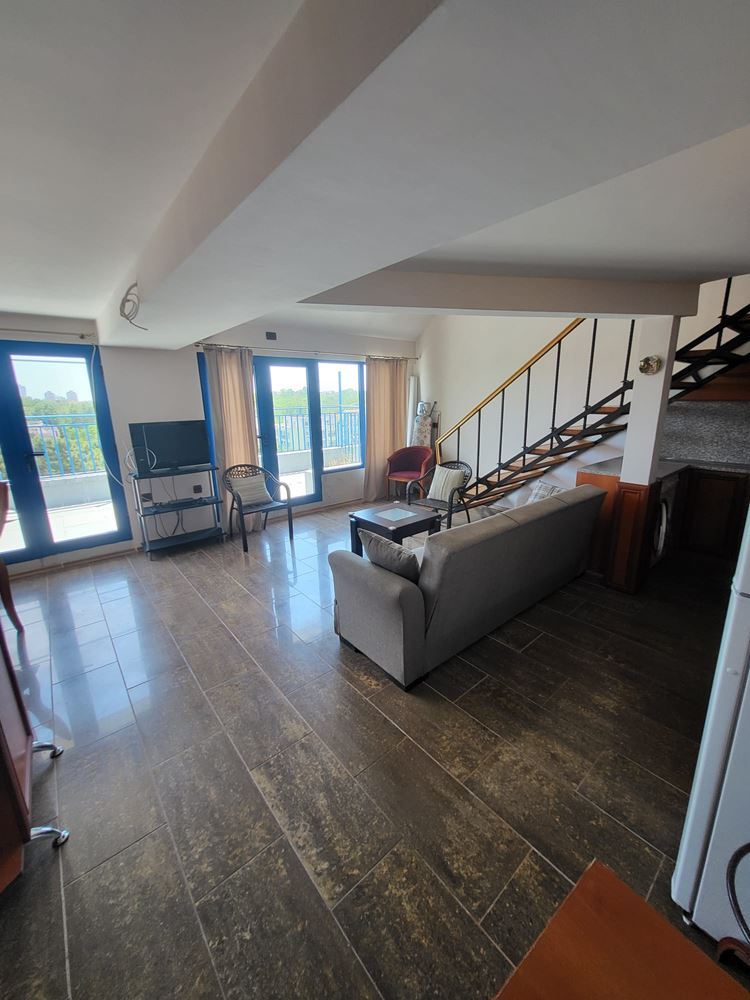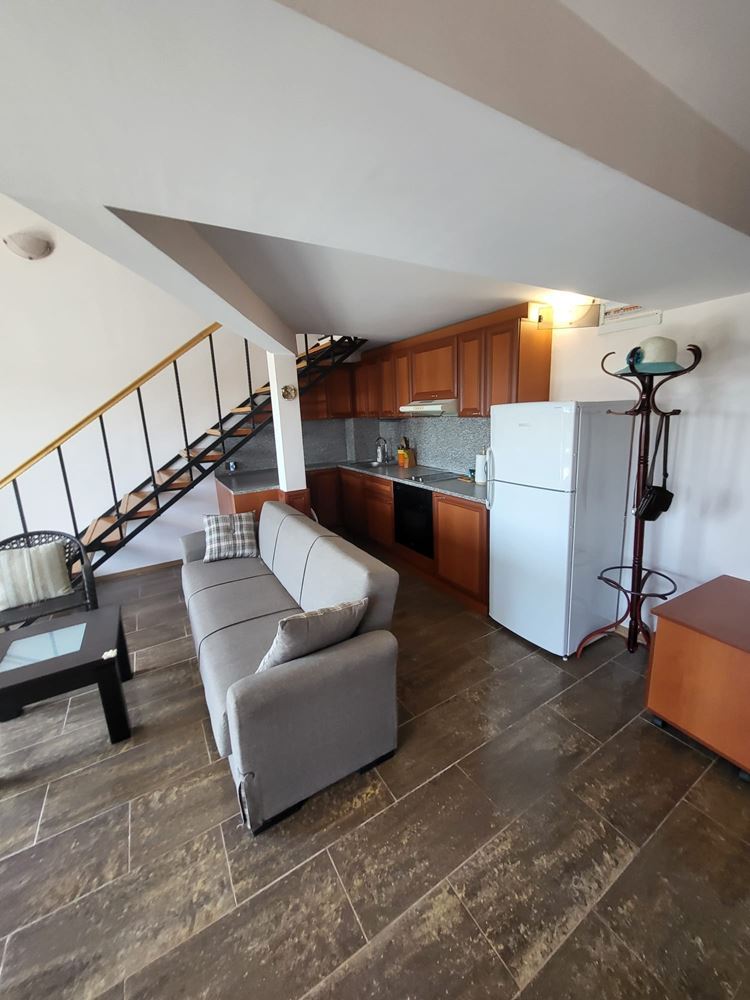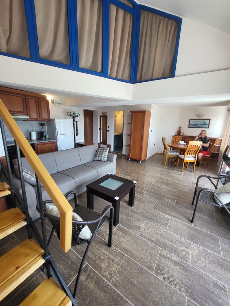 For sale is a panoramic one-bedroom duplex apartment in the heart of the beautiful town of. Nessebar. With a total area of 109 m², this stylish and spacious apartment offers convenience and comfort within a few minutes walk from the sea. Located on the sixth floor in a modern building with elevator, this property will charm you with its layout. On the first level you will find a large living room with kitchenette, ideal for family gatherings and cozy dinners. The spacious terrace with enchanting views of the city and the sea will provide you with a quiet place to relax after a long day. On the same level is a bathroom with toilet. The second level is entirely dedicated to the bedroom, which is a combination of coziness and comfort, and has its own bathroom. This floor provides complete privacy and tranquility for your private life.