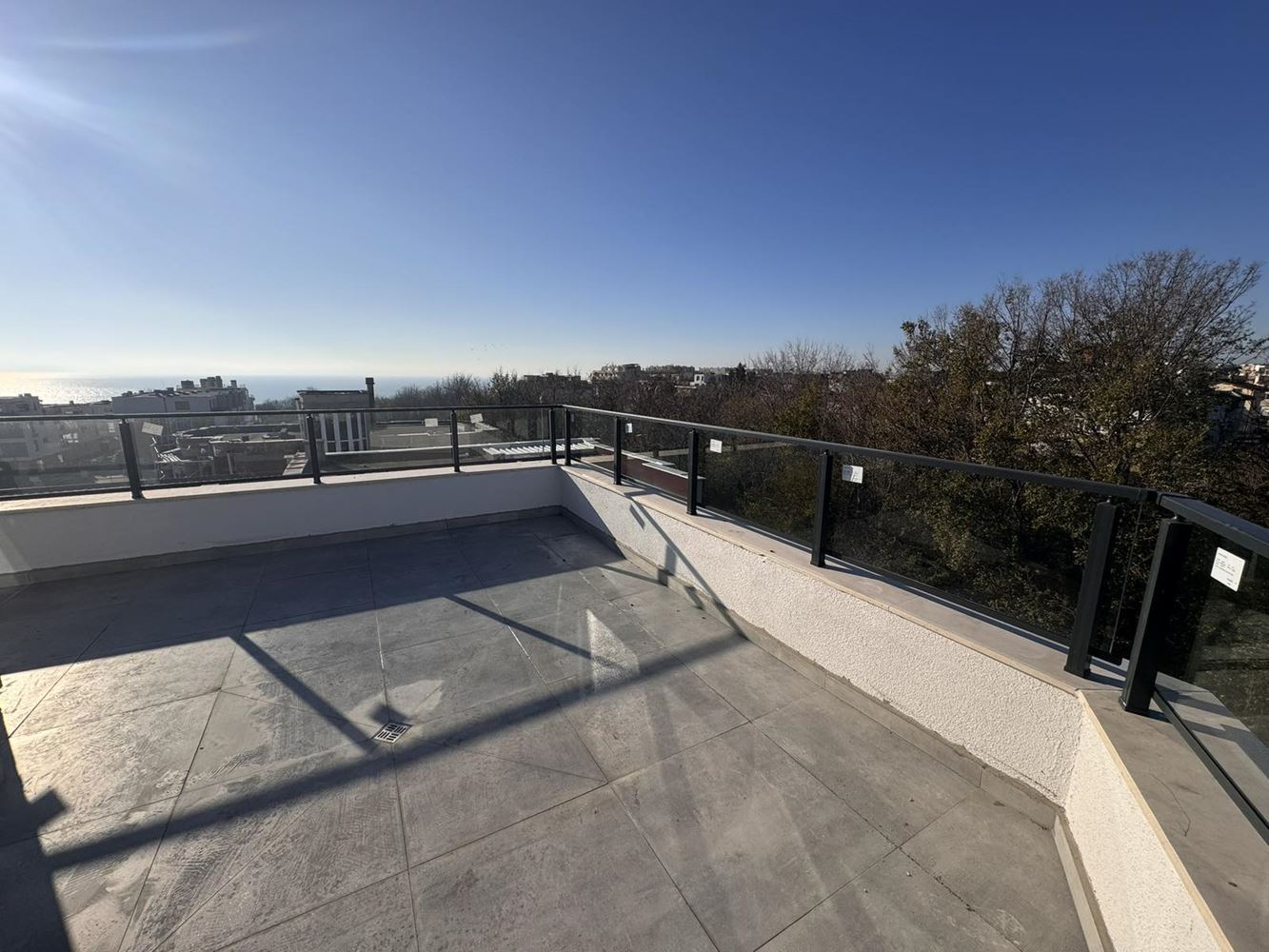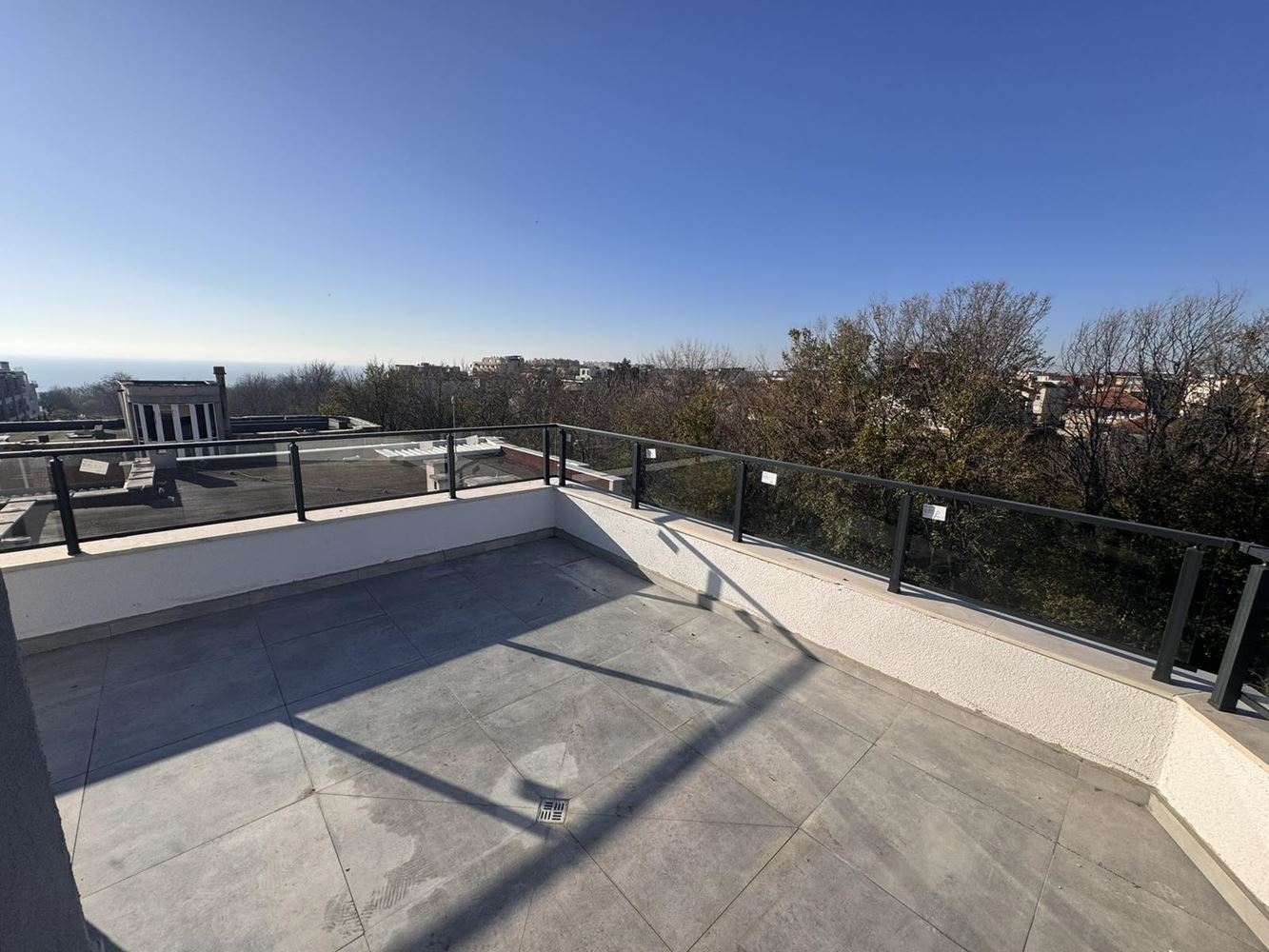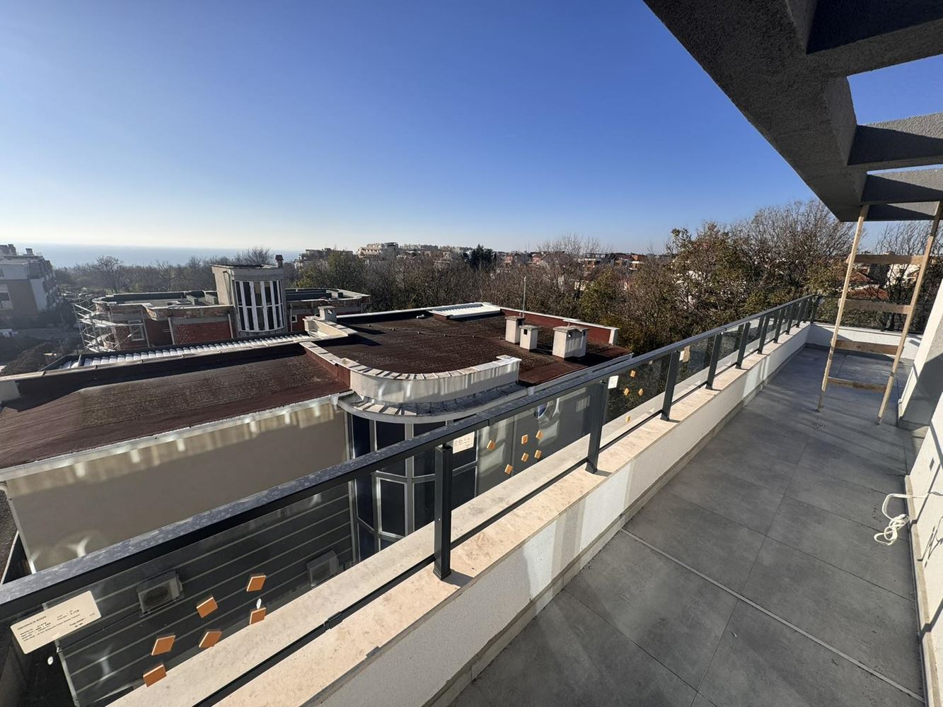 We present a panoramic studio apartment with sea view, located on the fifth and top floor of a new building with Act 16, making it fully ready for immediate use. The property is offered in shell condition and features a spacious terrace with impressive sea panoramas – an ideal spot for relaxation, morning coffee, or evening unwind.