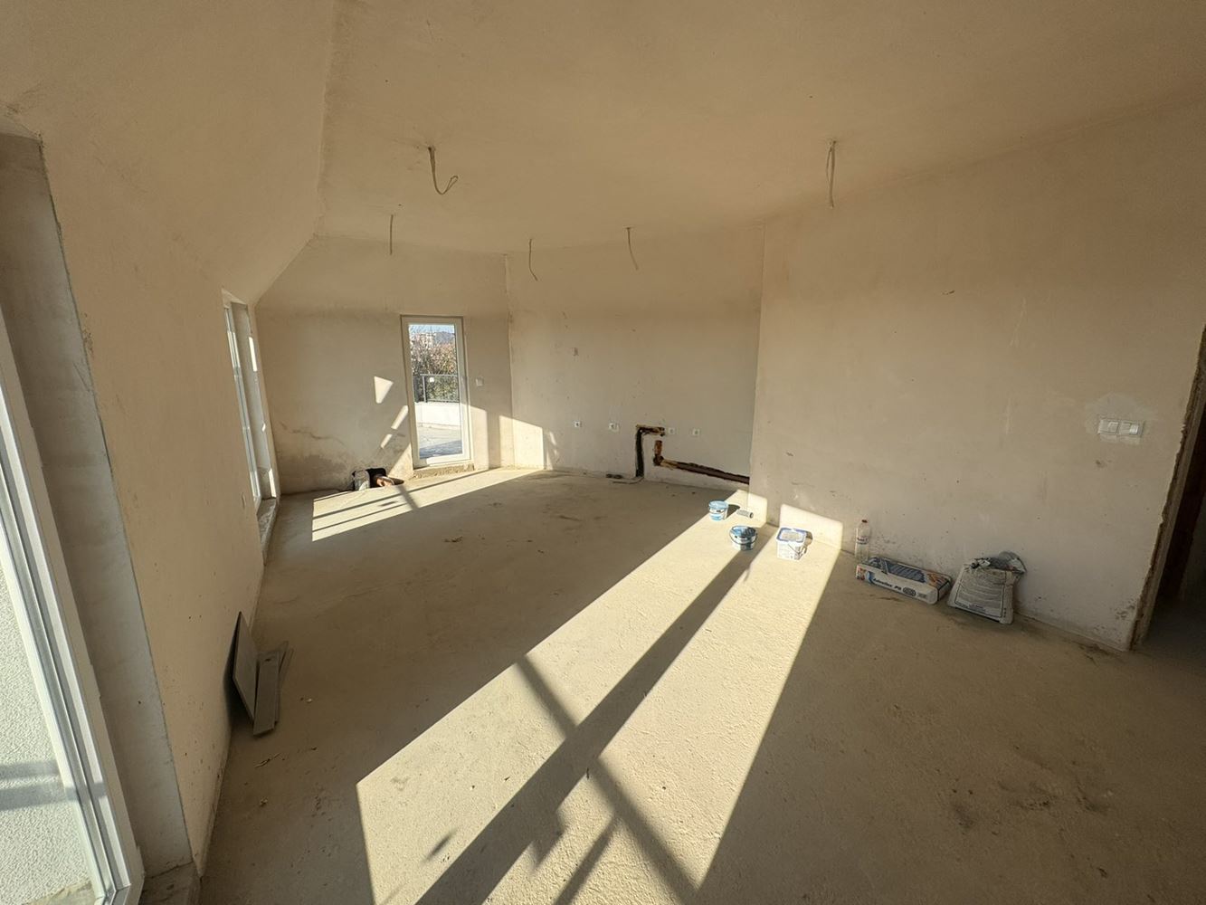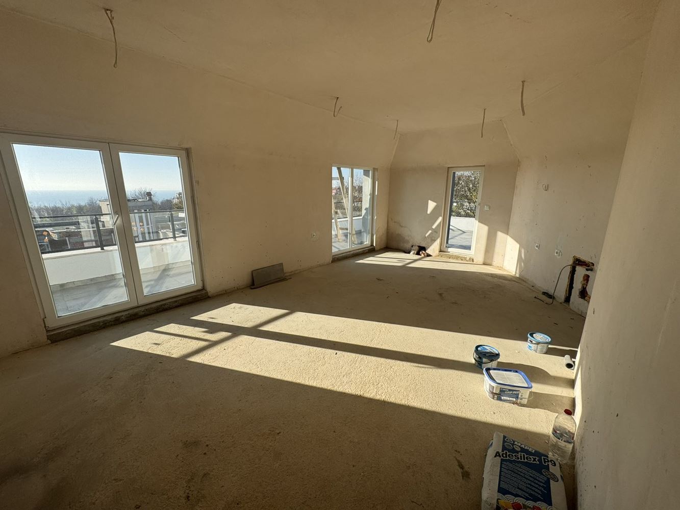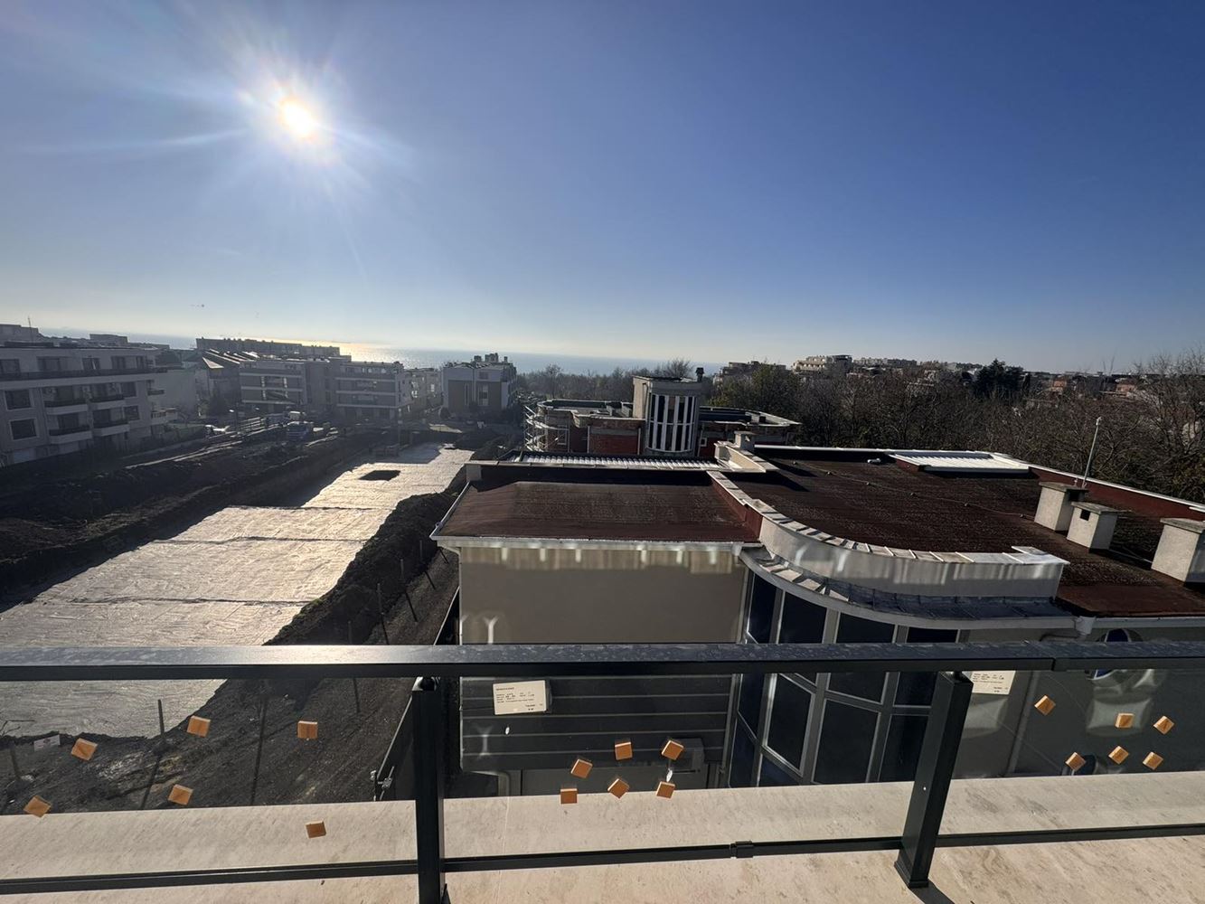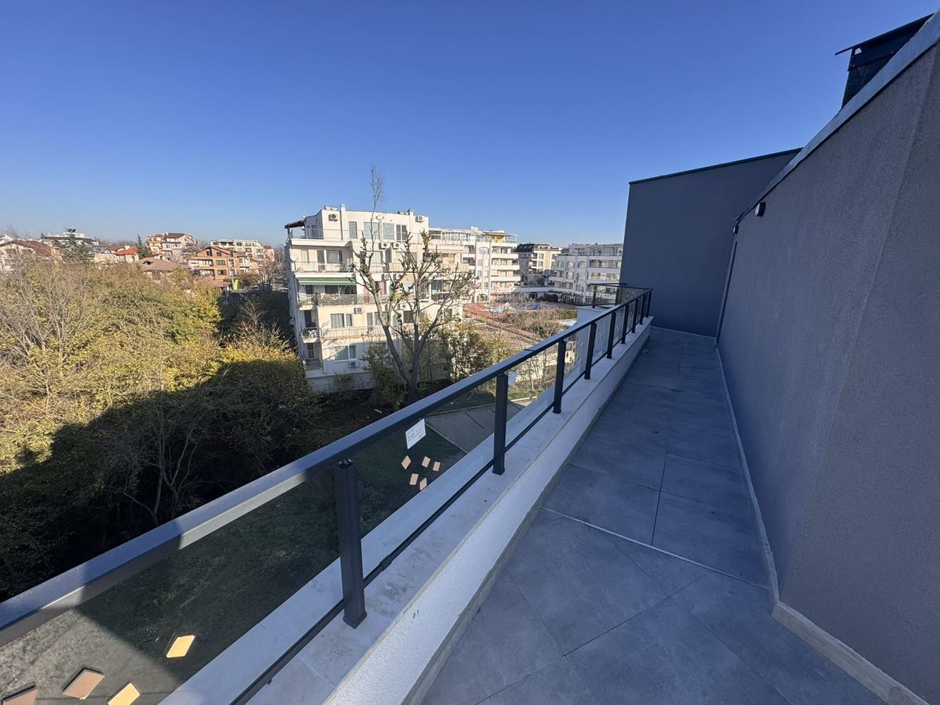 We present a panoramic studio apartment with sea view, located on the fifth and top floor of a new building with Act 16, making it fully ready for immediate use. The property is offered in shell condition and features a spacious terrace with impressive sea panoramas – an ideal spot for relaxation, morning coffee, or evening unwind.