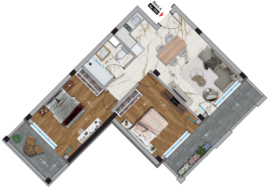 The apartment is delivered fully finished “turnkey”, allowing immediate use after completion. An optional furniture package is also available, designed to match the style and architecture of the complex.