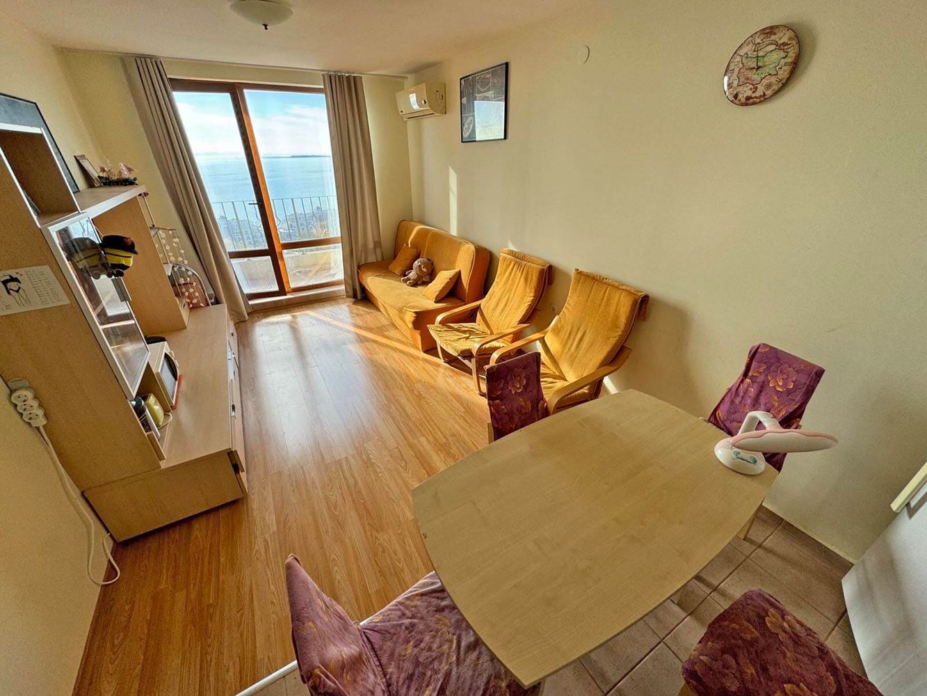 This two bedroom apartament in a new panoramic complex in Sveti Vlas is an ideal accommodation for comfortable living in a beautiful coastal location. With a living area of 95 square metres and located on the third floor, this apartament is fully equipped and ready to move in. The apartament offers a mesmerising panorama of the sea and the mountains, which gives the place a special charm. Its location in a quiet part of the complex makes it an excellent choice for a quiet holiday or permanent residence at any time of the year. The complex, which includes this apartament, is part of a grand mega complex located at the foot of a mountain range by the sea. The complex provides a variety of amenities such as four playgrounds, outdoor fitness equipment, sauna, beauty salon and massage centre, grocery supermarket, secure car park, restaurant-bar, restaurant-pizzeria, office-reception, tennis court and football field. The location is unique in that it offers a magnificent view of the Black Sea, Sunny Beach and the ancient town of Nessebar. The combination of peacefulness, mountain air and proximity to a luxurious beach makes this place unique for holidays and accommodation.