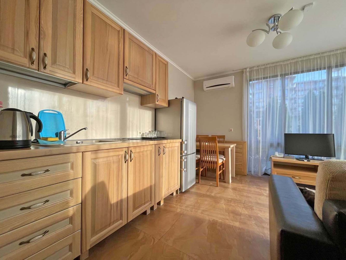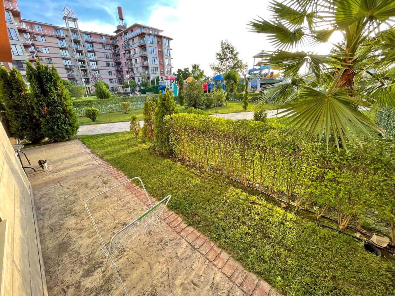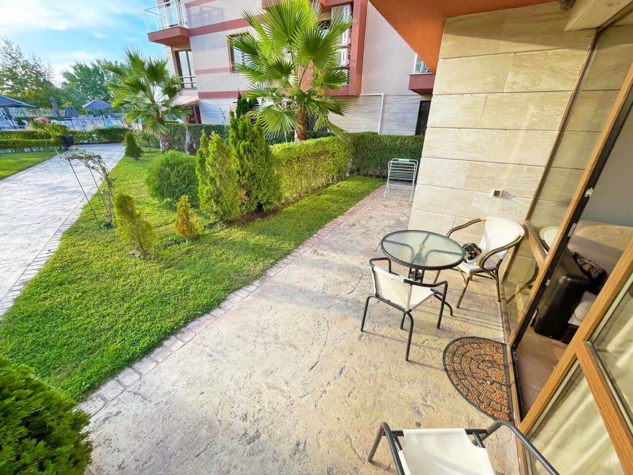 One bedroom apartment in an excellent complex in Sunny Beach, which provides close access to the sea and the beach, as well as to a variety of resort infrastructure such as stores, supermarkets, restaurants, cafes and bars. The apartment has a total area of 62 m2 and consists of an entrance hall, a spacious living room with kitchenette and lounge area, bedrooms, an en-suite bathroom and a veranda with direct access to the lawn and swimming pool. It is a functional space ready to live in. The apartment is fully furnished and equipped with appliances, the bathroom is equipped with a shower stall. On the veranda there is garden furniture to fully enjoy the delights of the maritime climate. Sold with furniture and appliances. This makes it easy to move in and ready to move in. Elite gated complex with a pleasant family atmosphere is designed for year-round living. The complex offers a wide range of additional services and many amenities among the beautifully landscaped private park with walking paths and recreation areas. In walking distance is all the necessary resort infrastructure: stores, supermarkets, restaurants, cafes, bars, discos, bus stops, etc., and this makes this property attractive for both permanent residence and resort vacation.