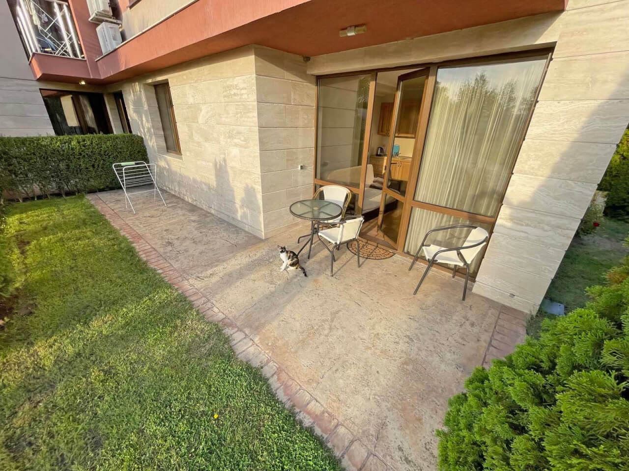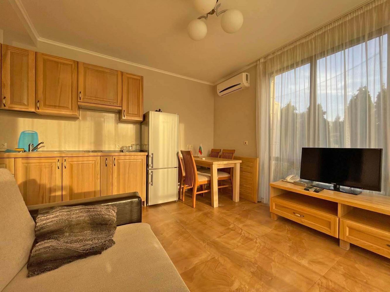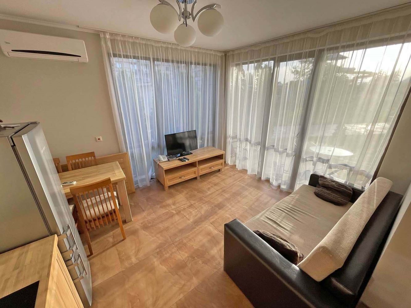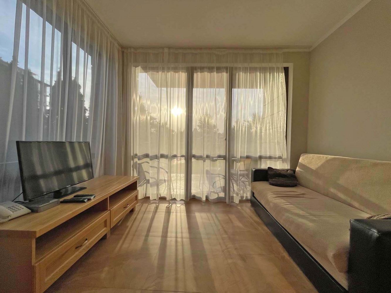 One bedroom apartment in an excellent complex in Sunny Beach, which provides close access to the sea and the beach, as well as to a variety of resort infrastructure such as stores, supermarkets, restaurants, cafes and bars. The apartment has a total area of 62 m2 and consists of an entrance hall, a spacious living room with kitchenette and lounge area, bedrooms, an en-suite bathroom and a veranda with direct access to the lawn and swimming pool. It is a functional space ready to live in. The apartment is fully furnished and equipped with appliances, the bathroom is equipped with a shower stall. On the veranda there is garden furniture to fully enjoy the delights of the maritime climate. Sold with furniture and appliances. This makes it easy to move in and ready to move in. Elite gated complex with a pleasant family atmosphere is designed for year-round living. The complex offers a wide range of additional services and many amenities among the beautifully landscaped private park with walking paths and recreation areas. In walking distance is all the necessary resort infrastructure: stores, supermarkets, restaurants, cafes, bars, discos, bus stops, etc., and this makes this property attractive for both permanent residence and resort vacation.