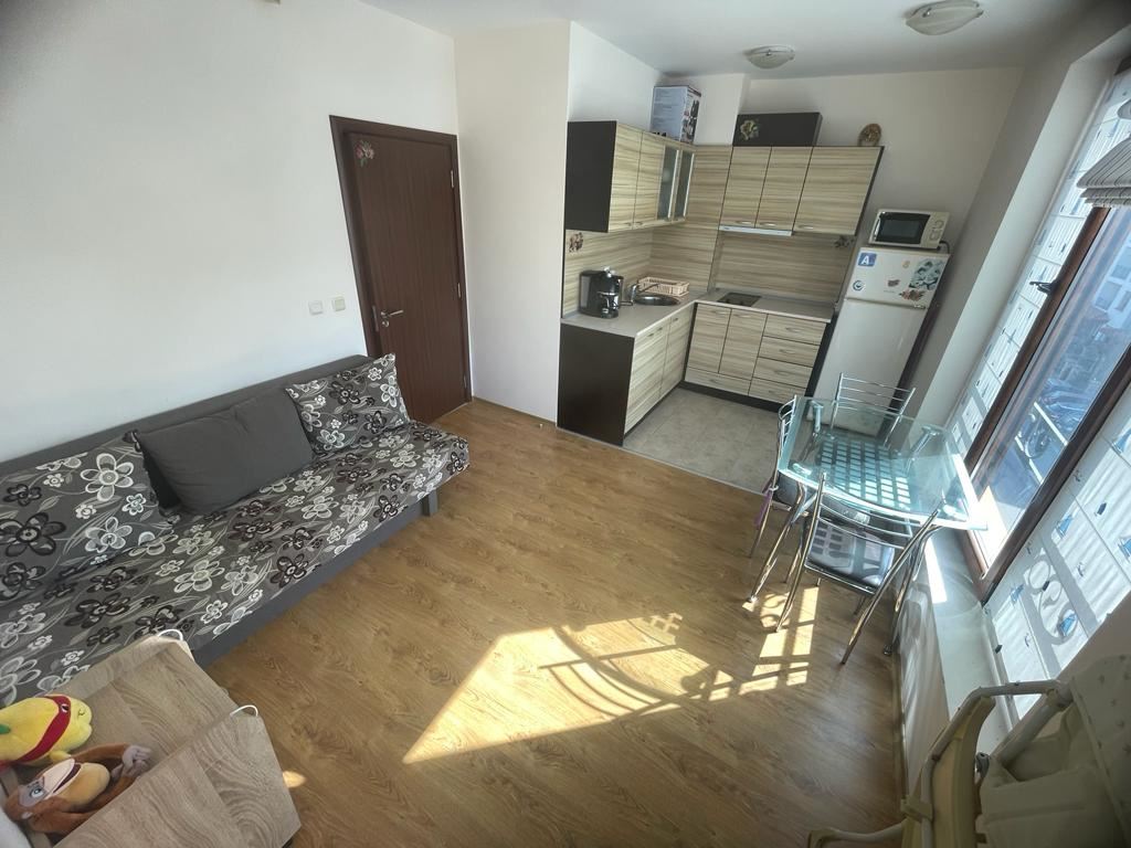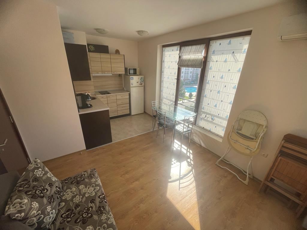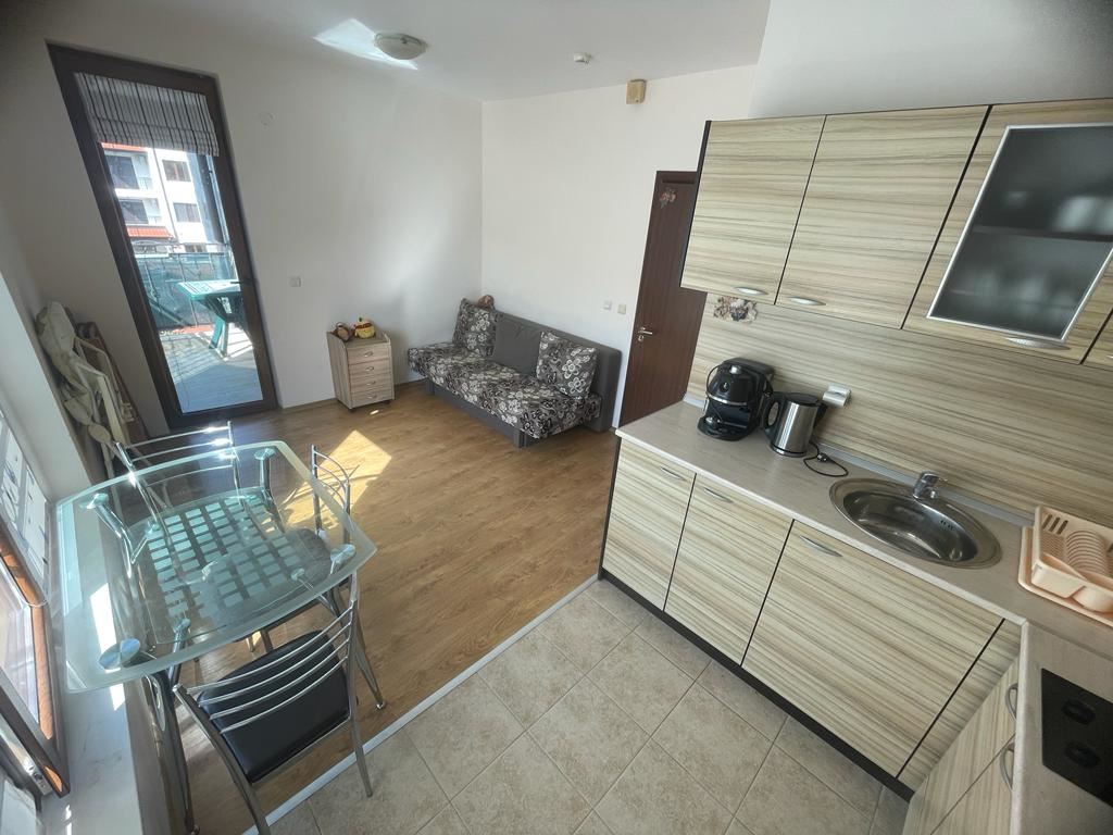 Comfortable one bedroom furnished apartment in a well-maintained residential complex in Nessebar provides excellent conditions for comfortable living. The complex is located just 200 meters from the sandy beach and 2 kilometers from the historic center of Nessebar, which is a UNESCO World Heritage Site. This provides a perfect combination of historical value and sea vacation. Near the complex, within a radius of 500 meters, there is everything you need for a comfortable stay, including stores, restaurants and Aquapark. This makes life here convenient and diverse. The charming apartment has an area of 55 m2 and is located on the fourth floor. It consists of an entrance hall, a bedroom, a living room with kitchen, a bathroom with toilet and a balcony. It is sold furnished and ready to move in, providing convenience for the new owners. There is a swimming pool as part of the residential complex, allowing you to enjoy swimming and outdoor activities. You can also take advantage of other services and amenities provided by the complex such as a cafe, fitness center, spa and recreation area and playground.