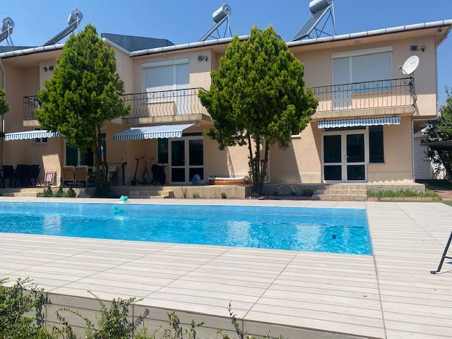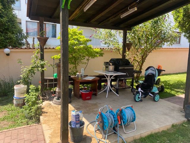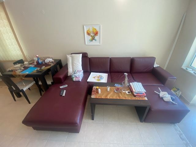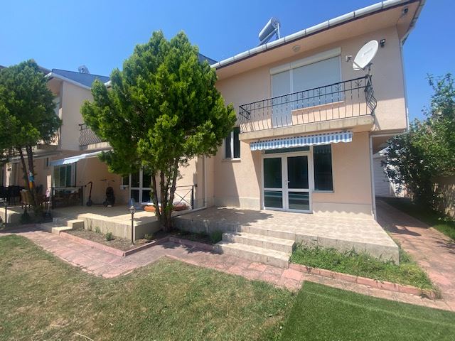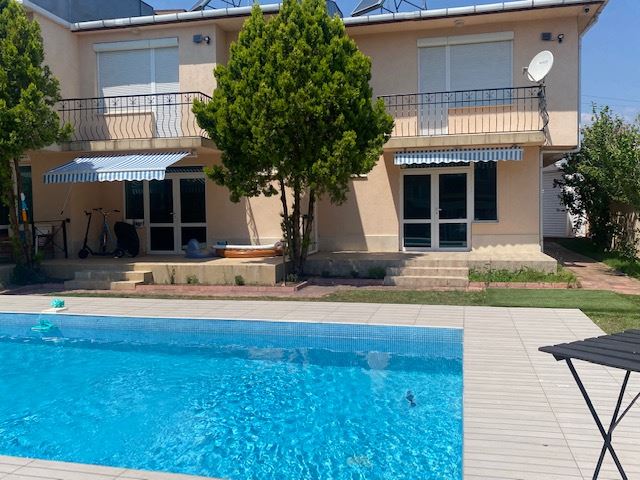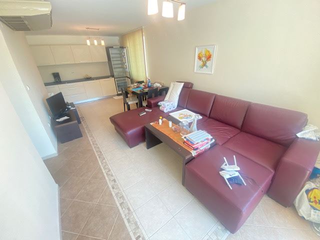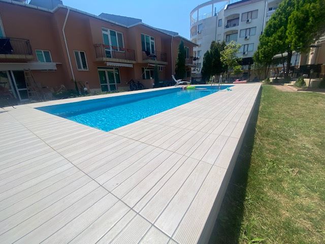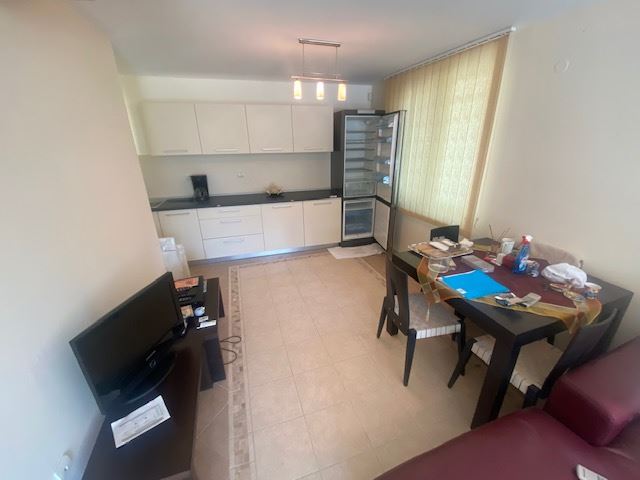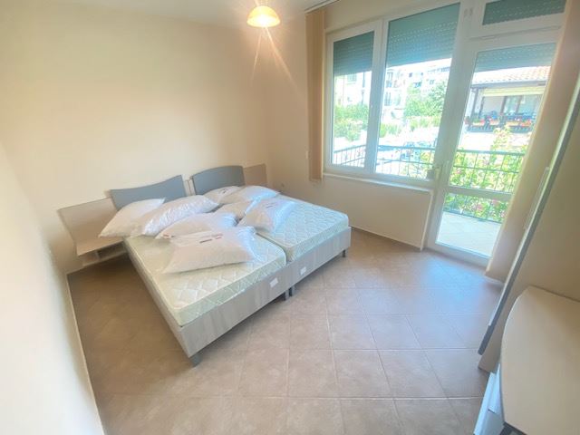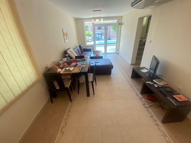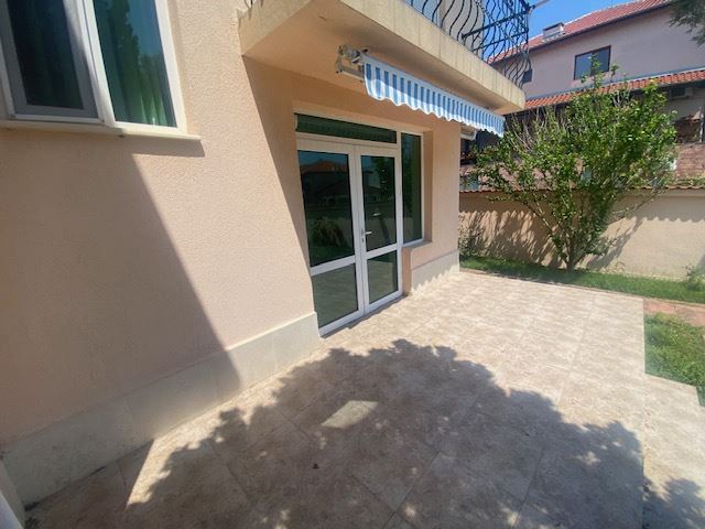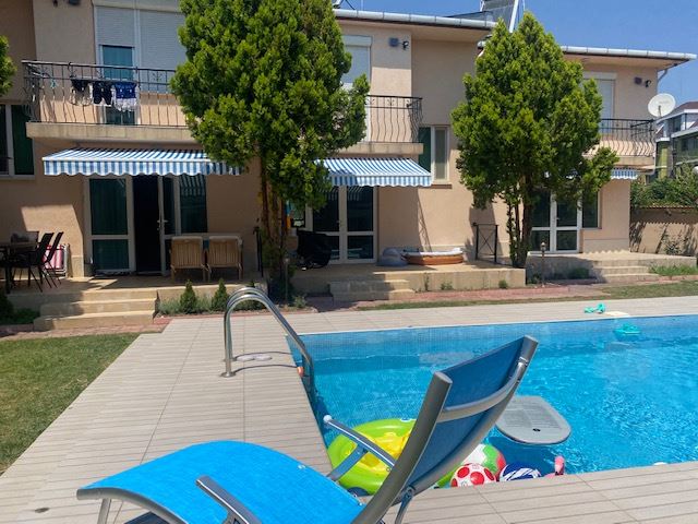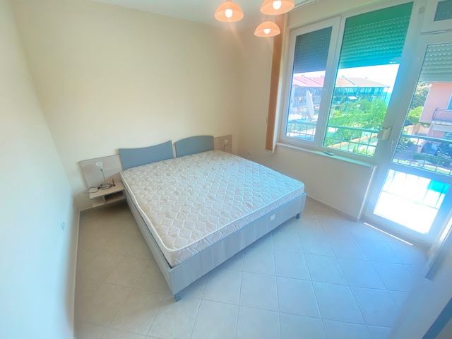 Private house with sea view in the small seaside town of Ravda. The house has two floors, total area 117 m2 and consists of: entrance hall, very bright and spacious living room with dining area and kitchen, bathroom, toilet, storage / laundry room and veranda with direct access to the yard, as well as stairs to the first floor. On the first floor there are two bedrooms, a bathroom and two balconies. The house is fully furnished and ready to move in. The fenced plot with similar houses has a swimming pool, parking space, barbecue area with seating area. No maintenance fees.