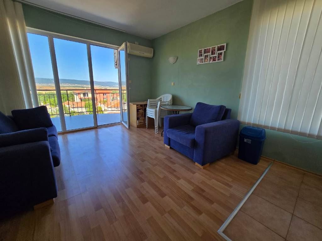 We are pleased to present a bright and spacious one-bedroom apartment with a total area of 77 m², located on the 2nd floor of a well-maintained building with Act 16 and an exceptionally low maintenance fee. The property is situated in Tunkovo – a preferred location that combines tranquility and greenery with quick access to the sea and nearby resorts. Here you get the best of both worlds: close to the beach but far from the noise.
