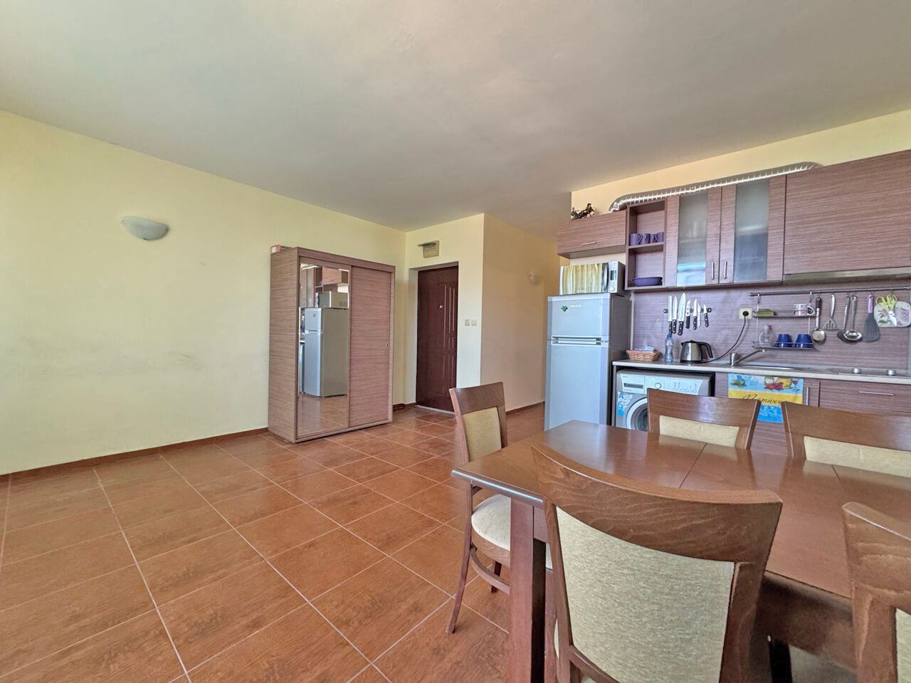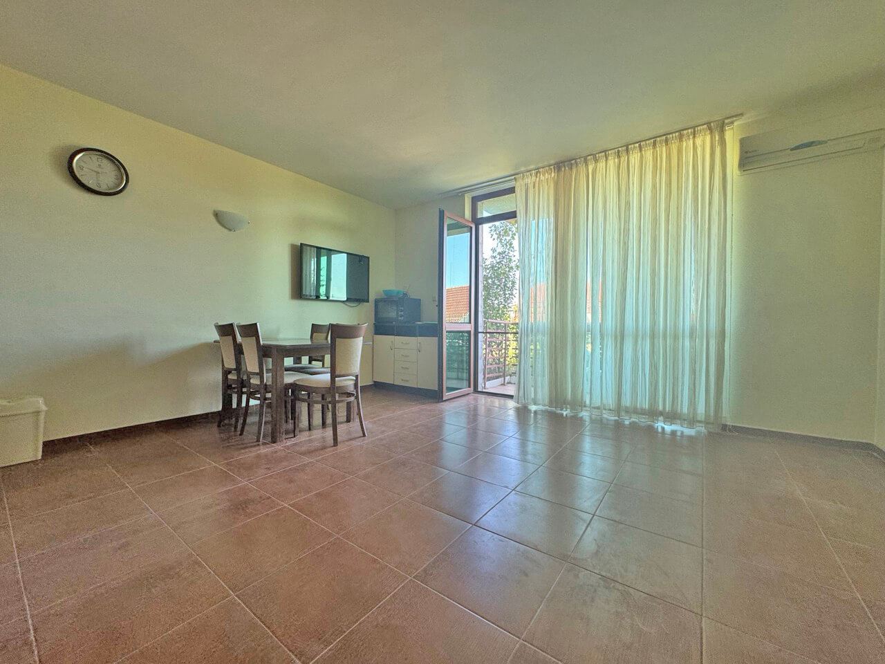 Spacious one bedroom apartment offers a great opportunity to enjoy living in a picturesque complex that embodies traditional Bulgarian style. With a total area of 61 m2 it is located on the ground floor, offering its occupants a wonderful view of the complex and the picturesque surroundings. The spacious living room, illuminated by natural light thanks to the large panoramic windows, takes centre stage in this apartment. From here you have access to a terrace where you can enjoy the fresh sea air and the picturesque views. The apartment also has a cosy bedroom and bathroom.