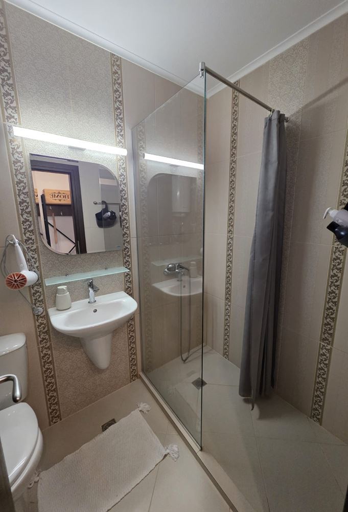 The complex offers numerous extras and amenities, including a gated area ensuring peace and tranquility; two buildings with a large swimming pool in between; a sauna and steam bath that complement the relaxation options; and parking spaces provided along the buildings.