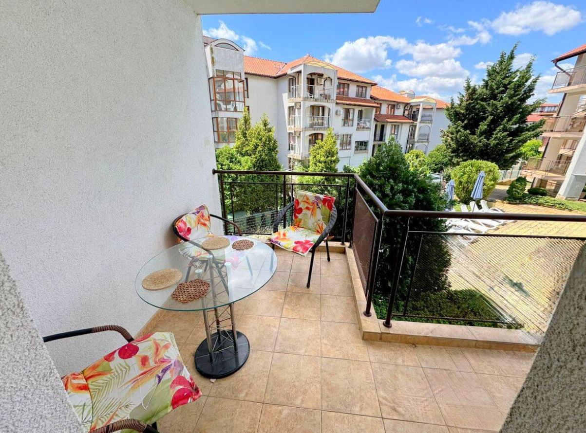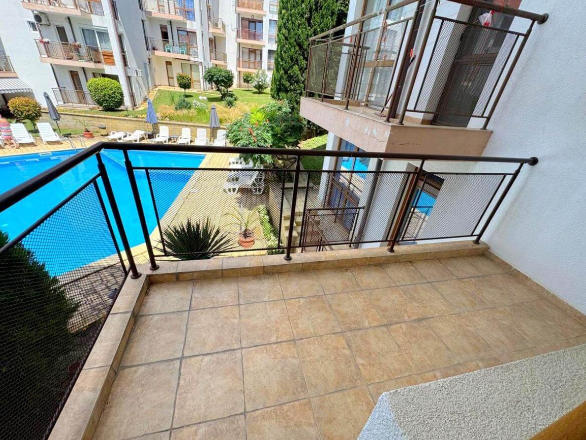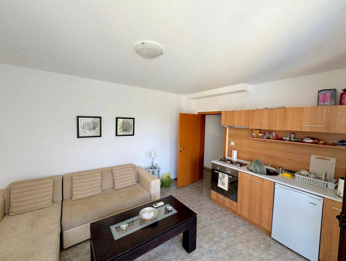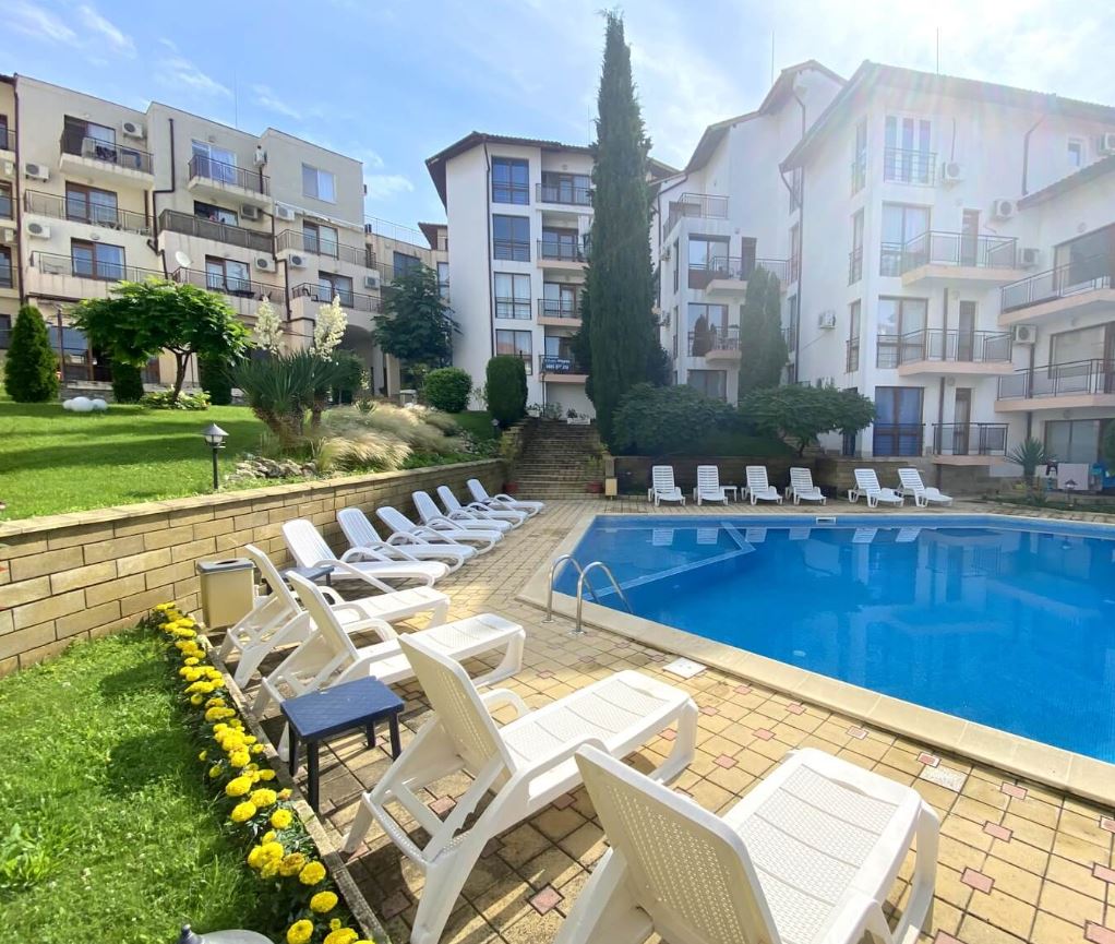 We present you an opportunity for investment or personal use - one bedroom apartment with magnificent pool view in the prestigious resort town of Sveti Vlas. Located on the second floor, this property with a total area of 60 m² offers comfort and coziness just a few meters from the beach. The apartment includes two spacious rooms - a bright and welcoming living room with dining area and fully equipped kitchen, as well as a cozy bedroom. From the balcony you will enjoy a wonderful view of the luxurious outdoor swimming pool and sunbathing terrace with sun loungers at your disposal.