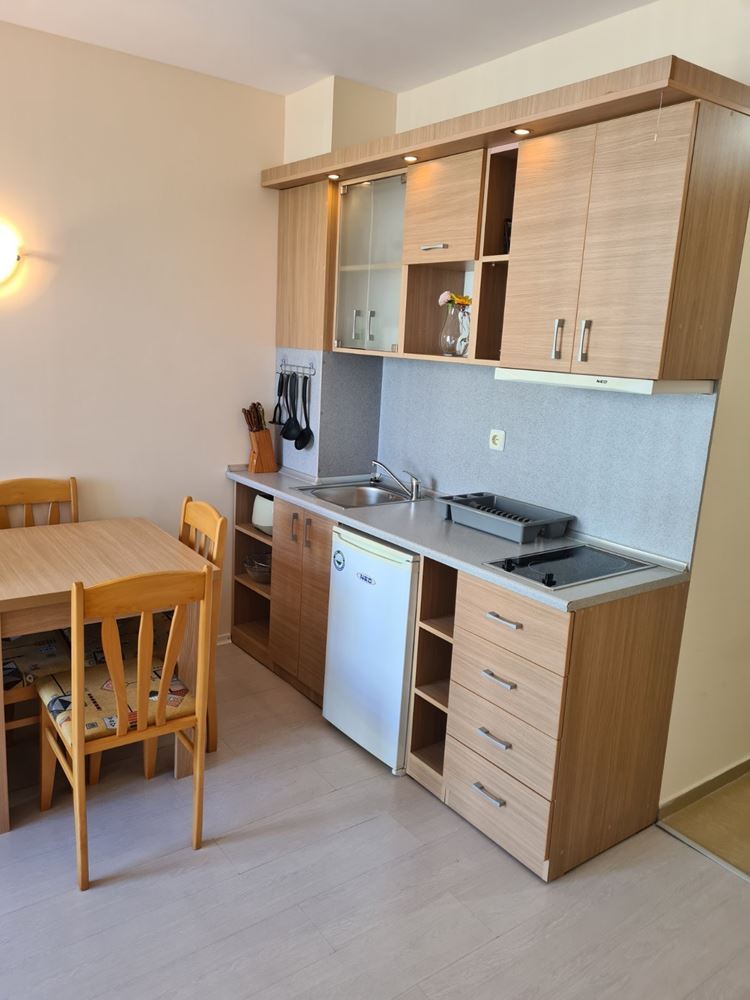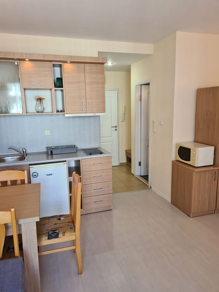 Spacious and fully furnished studio located in a complex in the southern part of the resort of Sunny Beach. This wonderfully stylish apartment of 42 m2 is located on the third floor of the building. The distance to the beautiful sandy beach does not exceed 200 meters.