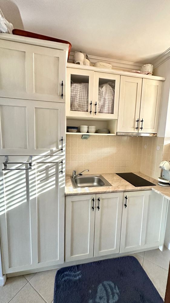 The studio consists of an entrance hall, a bright and spacious room with a kitchenette, relaxation and sleeping area, a modern bathroom with toilet, and a terrace with a frontal view of the sea horizon. The space, natural light, and exceptional location make the property highly attractive both for year-round living and short-term renting.
