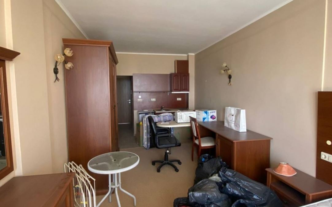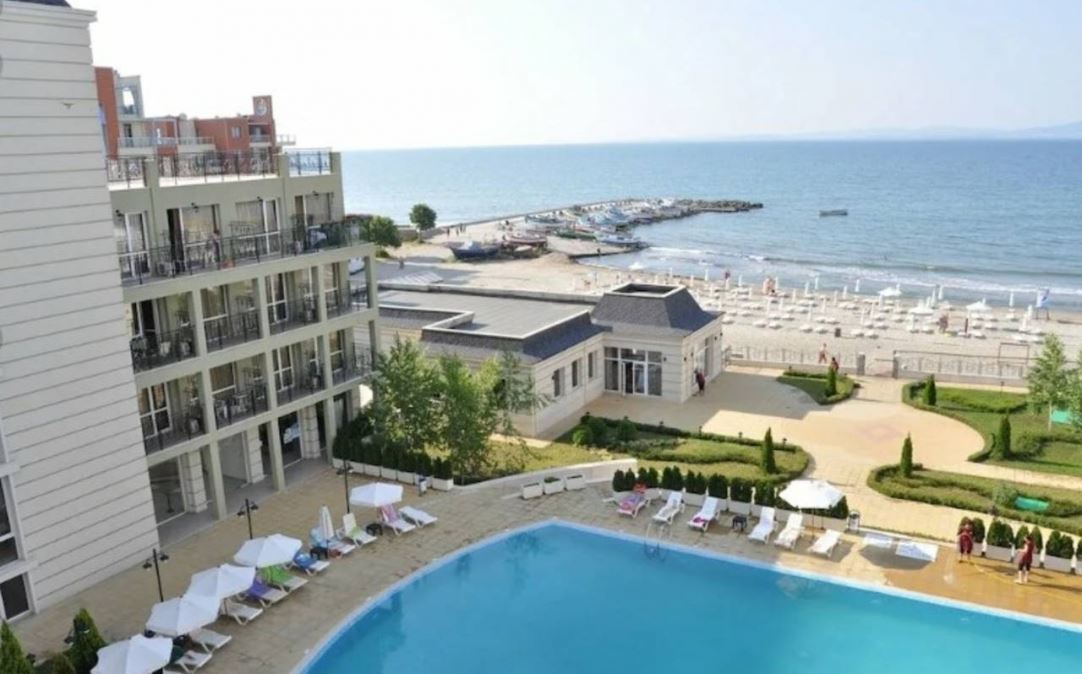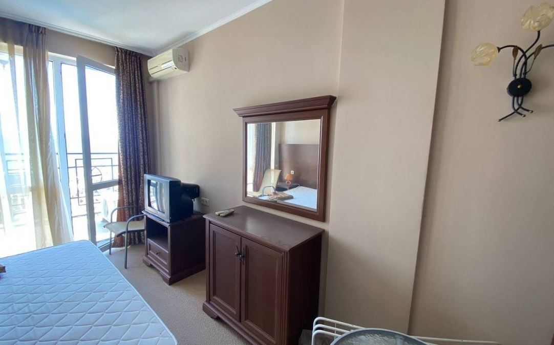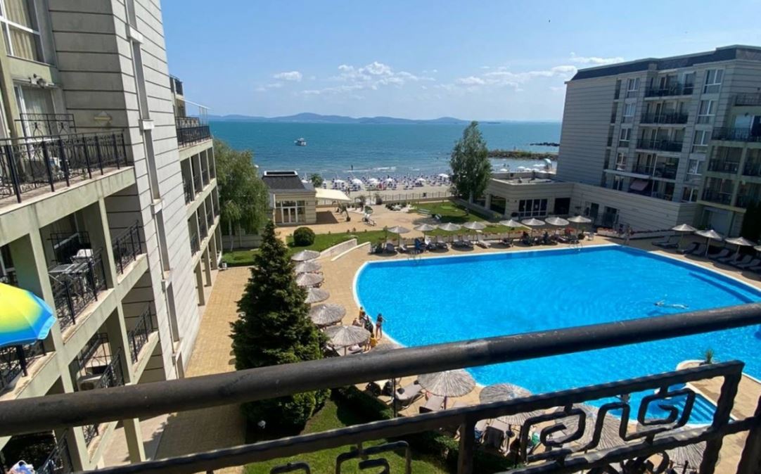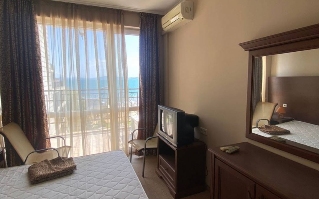 For sale is a furnished studio with sea view in the prestigious four-star hotel complex on the south beach, in the new part of the town. The property is located in the beautiful beachfront area of Pomorie. The apartment is located on the fourth floor and offers 33,66 m2 of well-used area. This cozy studio consists of a spacious room that combines a living room and a sleeping area, as well as a modern kitchen equipped with everything you need: built-in ceramic hob, extractor fan and fridge. The bathroom is functional and includes a bathtub for your comfort. From the terrace you can enjoy a stunning view of the sea, which creates a unique feeling of relaxation and tranquility. The studio is in need of partial renovation, and the new owner can customize it according to their preferences.