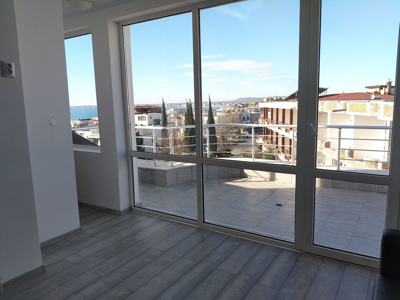 We present to your attention a spacious and functional one bedroom apartment for sale, located in the picturesque town of Sveti Vlas. With a total area of 68,39 m2, this property is located on the third floor and offers an unfurnished space, giving you the opportunity to furnish it according to your own taste and preferences. The apartment comprises two rooms, including a cosy bedroom and a spacious living room, ideal for family gatherings and entertaining. The property has one modern bathroom that combines comfort and functionality. The balcony is only one, but with panoramic sea, pool and mountain views and its ample size, provides a great place for outdoor relaxation where you can enjoy the fresh sea breeze.