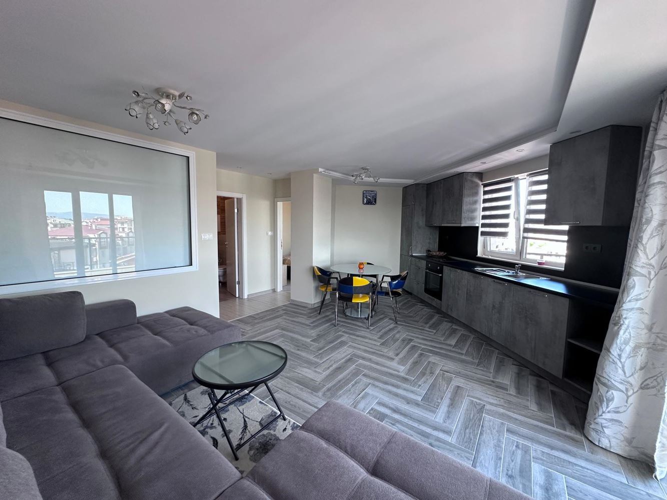 A fully furnished one bedroom apartament on the 5th floor totalling 104 m2 offering comfortable and stylish living. In addition to the main living space, there is a pantry in the basement providing additional storage space. The apartament is sold with modern renovation and new furniture and appliances create a cosy atmosphere. The layout includes one bedroom, one bathroom, a spacious kitchen-living room and a walk-in wardrobe. Two balconies add to the appeal and allow you to enjoy the fresh air and views. The apartament is located in a deed 16 complex, ensuring it is legal. There is a separate water and electricity bill. The complex provides a storey property as well as a variety of amenities such as a swimming pool, billiards, playground and a room for children. A barbecue and a gazebo are provided for recreation. In winter you can use the indoor swimming pool and two saunas, while in summer hot water from solar panels is provided. The distance to the sea is only 50 metres, which makes the apartament location very convenient for beach lovers. For car owners there is parking both on the territory of the complex and outside it. All these characteristics make this apartament an attractive option for a comfortable stay in the sea holiday zone.