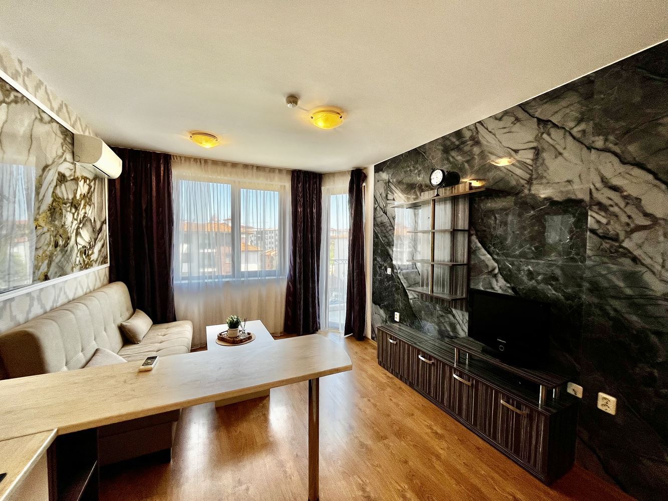 Stylish two bedroom apartment for sale in the picturesque town of Nessebar! With an area of 83 m2, this property offers convenience and comfort for your family or as an investment with good income potential. The apartment is located on the fifth floor in a modern building equipped with an elevator, which provides additional convenience for your daily life. The impressive layout includes: entrance hall, spacious living room with fitted kitchen, two cosy bedrooms, two bathrooms and one balcony with amazing views of the swimming pool and the landscaped grounds of the complex. The property is offered in perfect condition, with artfully selected furniture and high quality appliances, ready to welcome its new owners. Thanks to its excellent location and functionality, this apartment is suitable for both permanent living and renting.