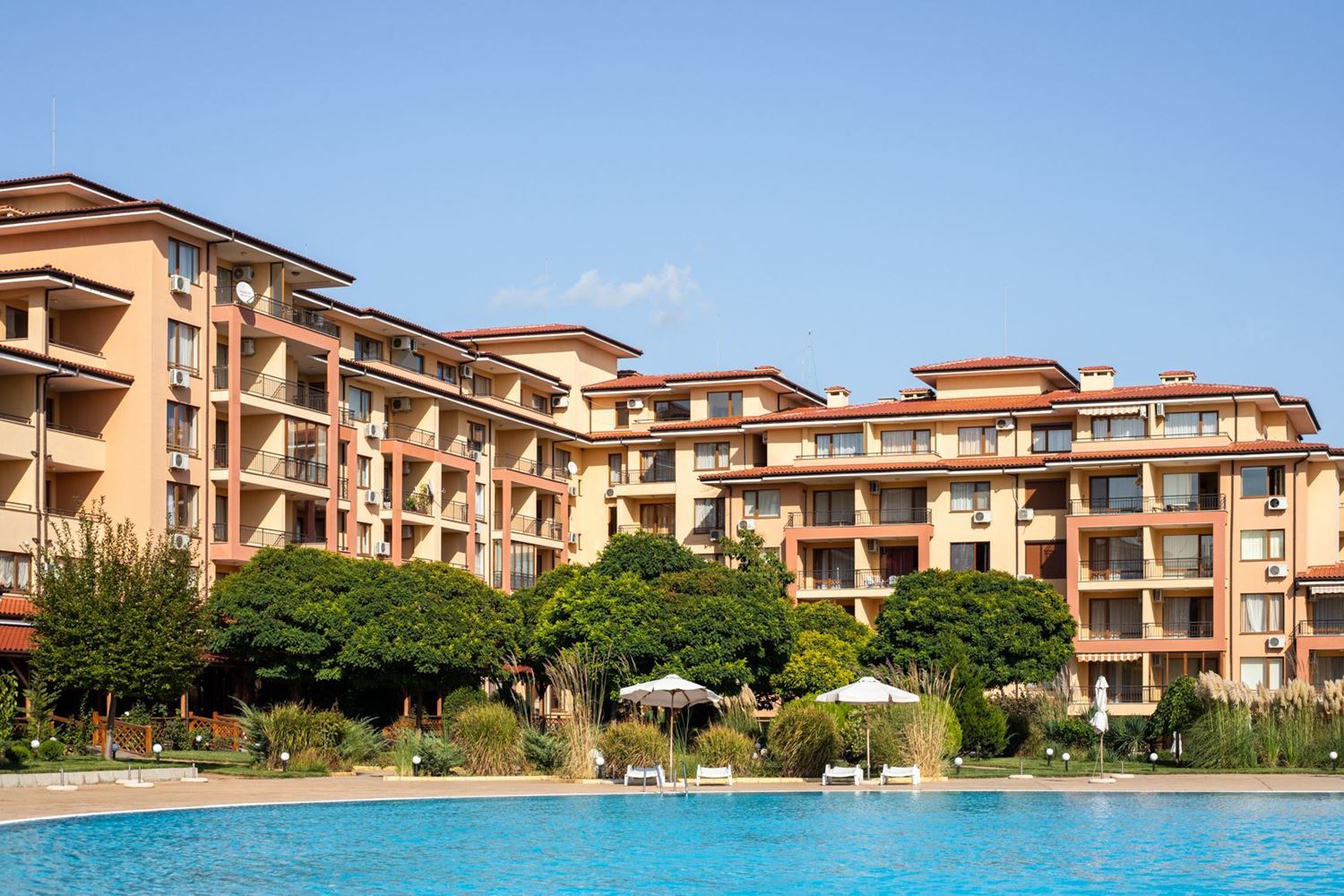 The complex consists of three separate buildings with elegant architecture and a well-thought-out layout, designed to meet high standards of comfort and quality of life. Owners and guests have access to two large outdoor swimming pools, including children’s areas, making the complex suitable for families. For complete relaxation, a SPA center and a dedicated relaxation area are available.