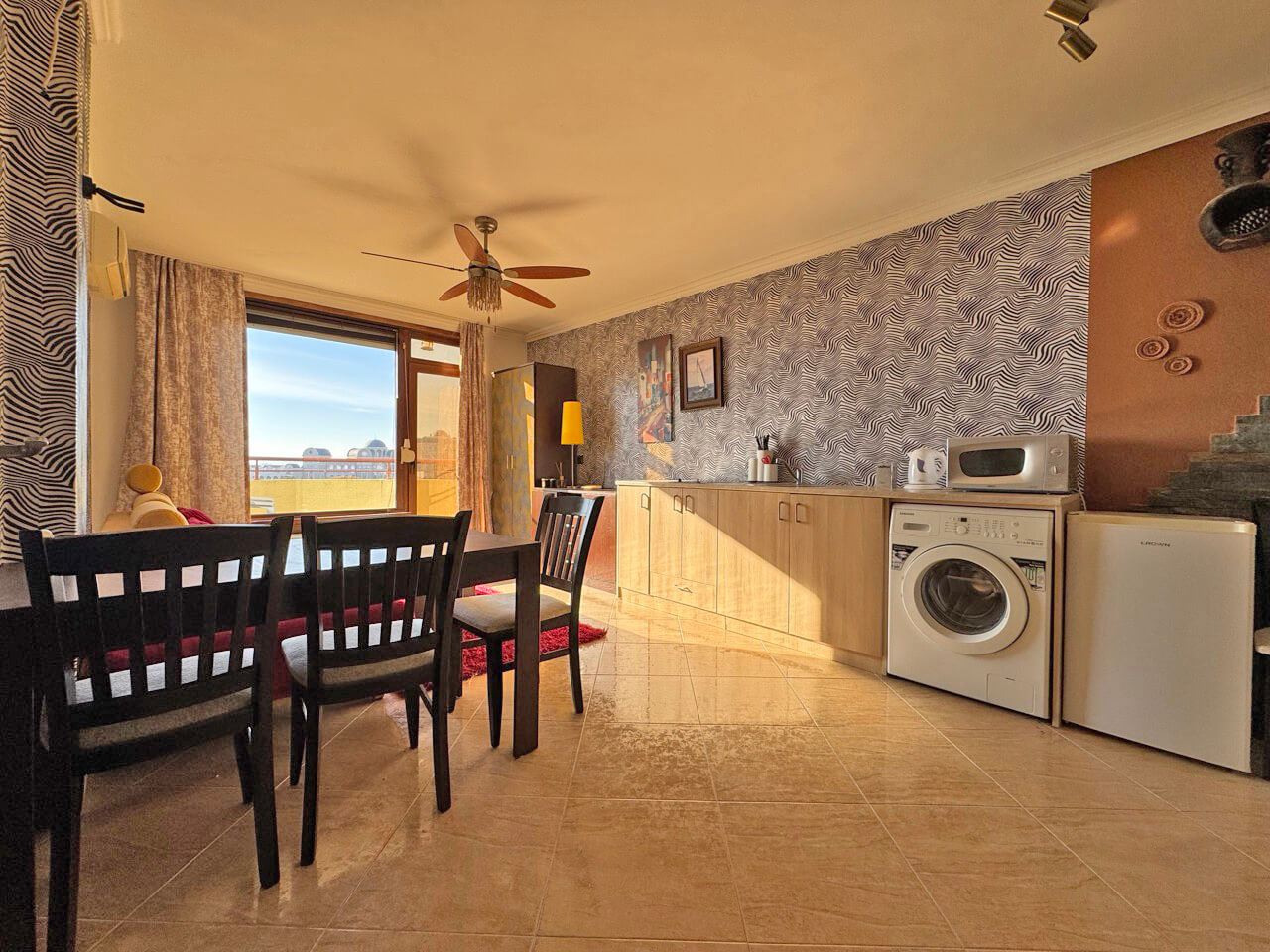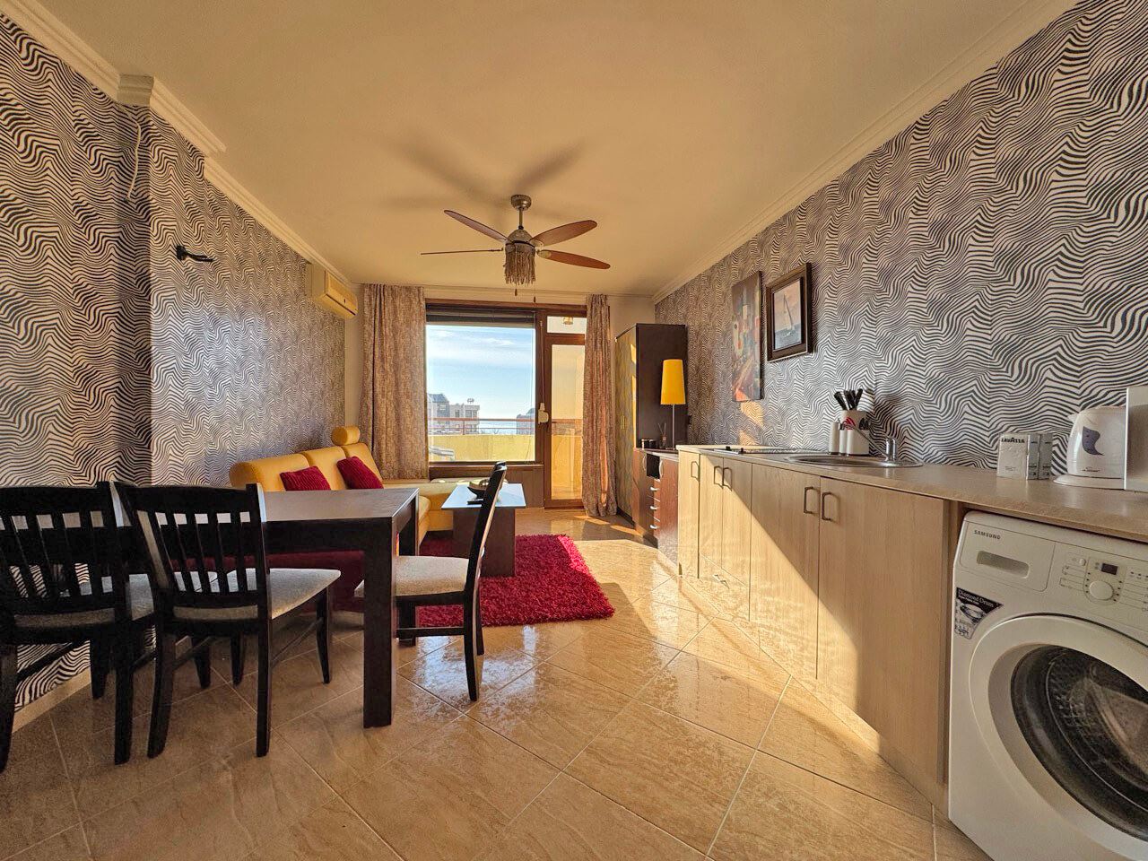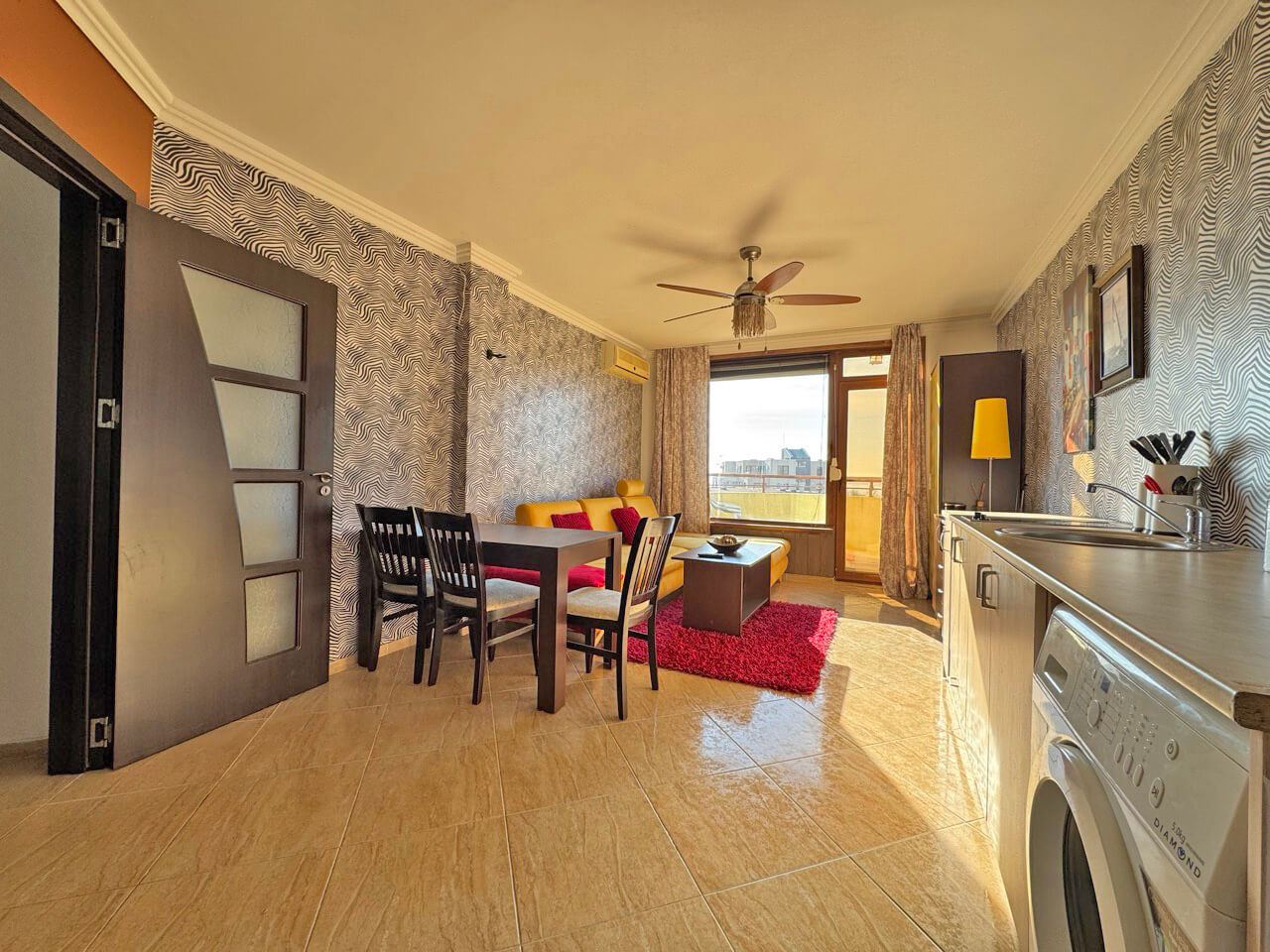 We present a comfortable apartment with a total area of 61 m², located on the sixth floor of a modern and well-maintained gated complex. The apartment is fully furnished and equipped, providing everything necessary for comfortable living or a relaxing holiday. The spacious living area is combined with a kitchenette, while the bedroom offers coziness and tranquility for the residents. The bathroom is modern and functional, and the balcony provides space for relaxation and pleasant views of the surroundings.