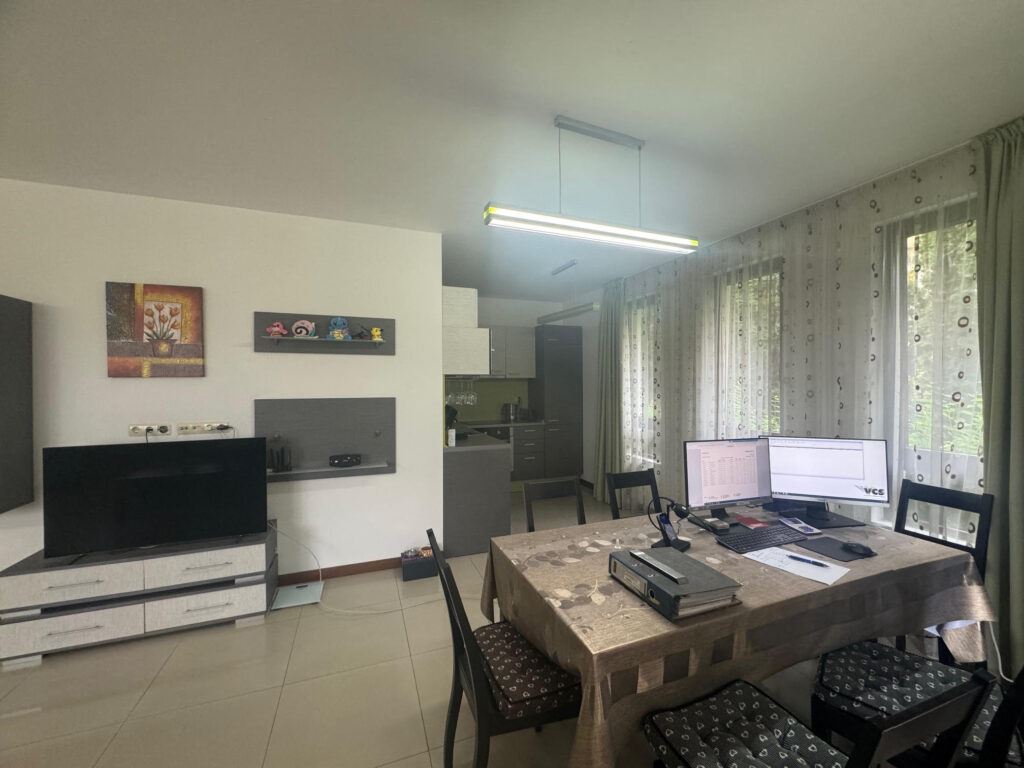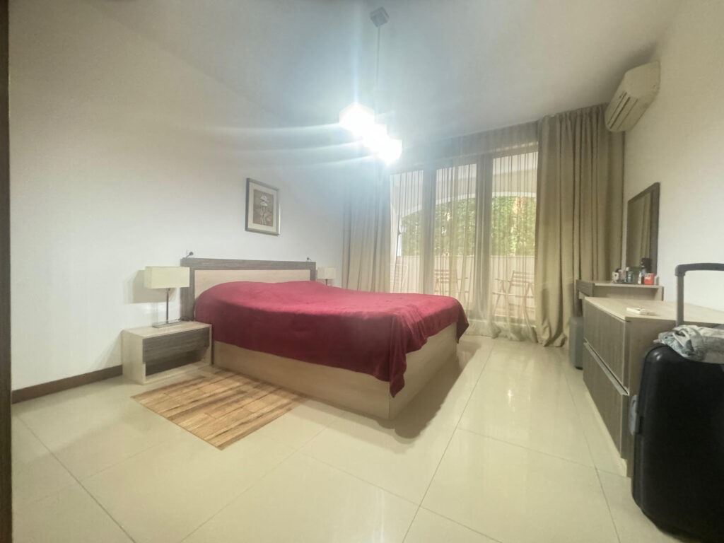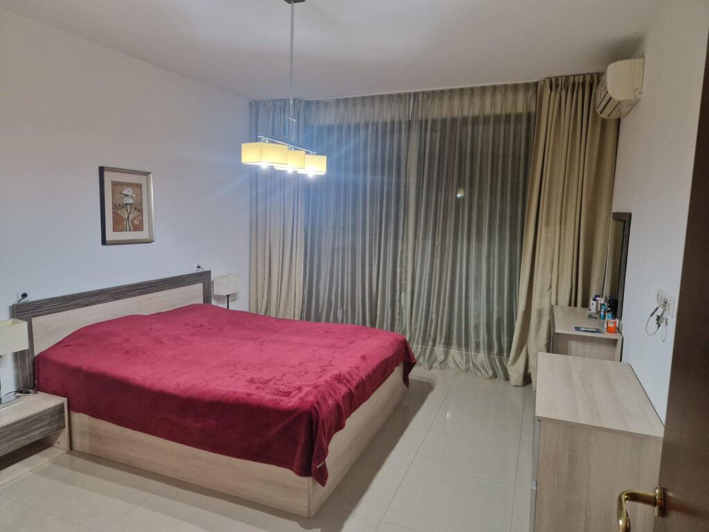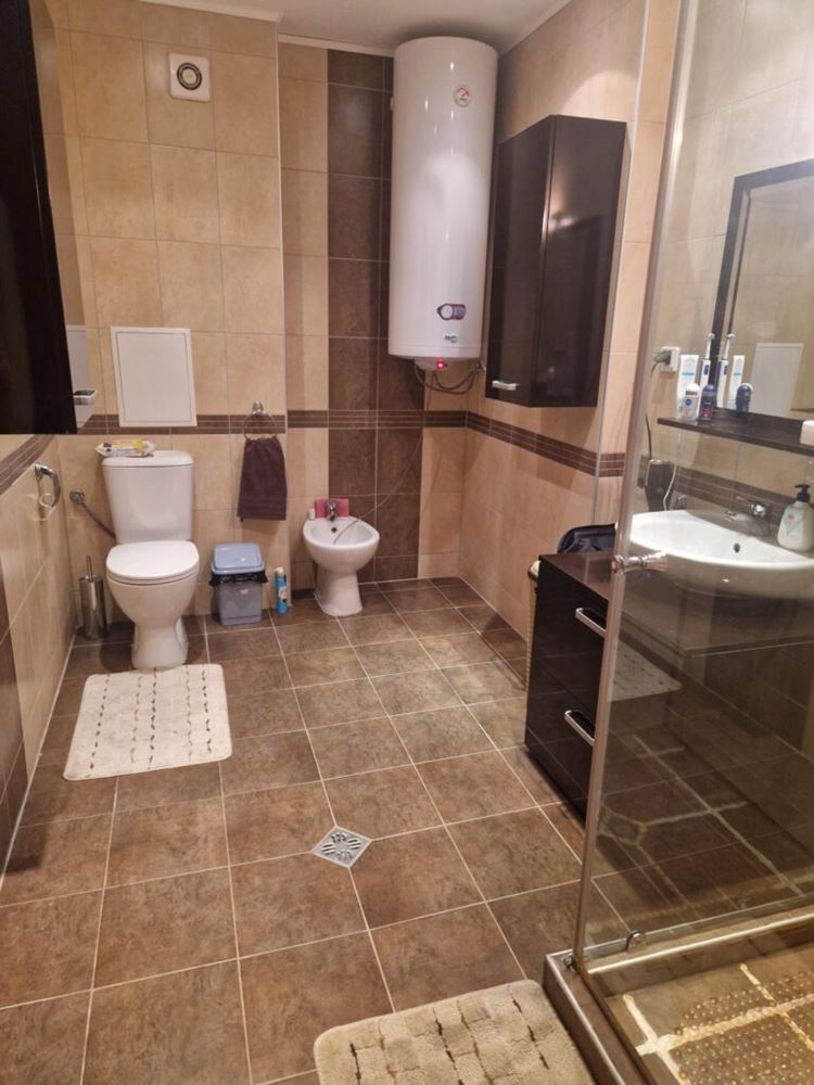 Spacious fully furnished one bedroom apartament with a large yard of about 150 m2 is located in a beautiful sea front complex in the town of Sveti Vlas. The apartament of 124 square metres is located on the ground floor and consists of an entrance hall, a spacious living room with kitchenette, a bedroom with bathroom and toilet, two terraces. There is a possibility to separate one more bedroom. The apartament is fully furnished and ready to live in or rent out as an investment property. The complex has 24 hour security, video surveillance, limited access, technical support and maintenance of common areas, parking, swimming pool with sun loungers around, restaurant, pool bar, etc. The complex is located 10 m from the sea shore and close to the central part of Sveti Vlas. There is a developed infrastructure around the complex. Nearby there are supermarkets, shops, pharmacy, polyclinic, bus stop, restaurants, fast food, beach, aqua park and other entertainment.