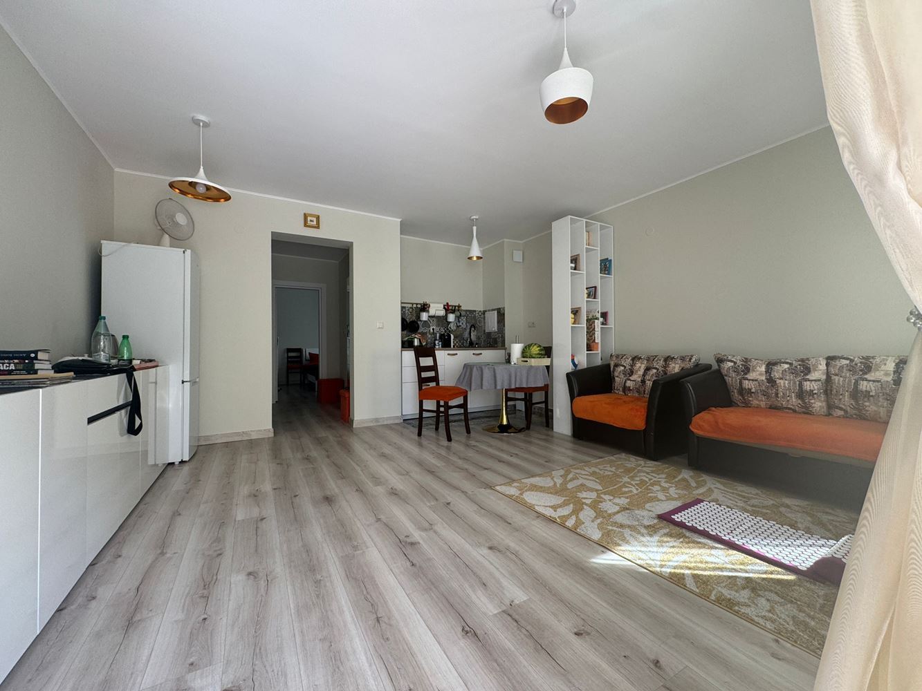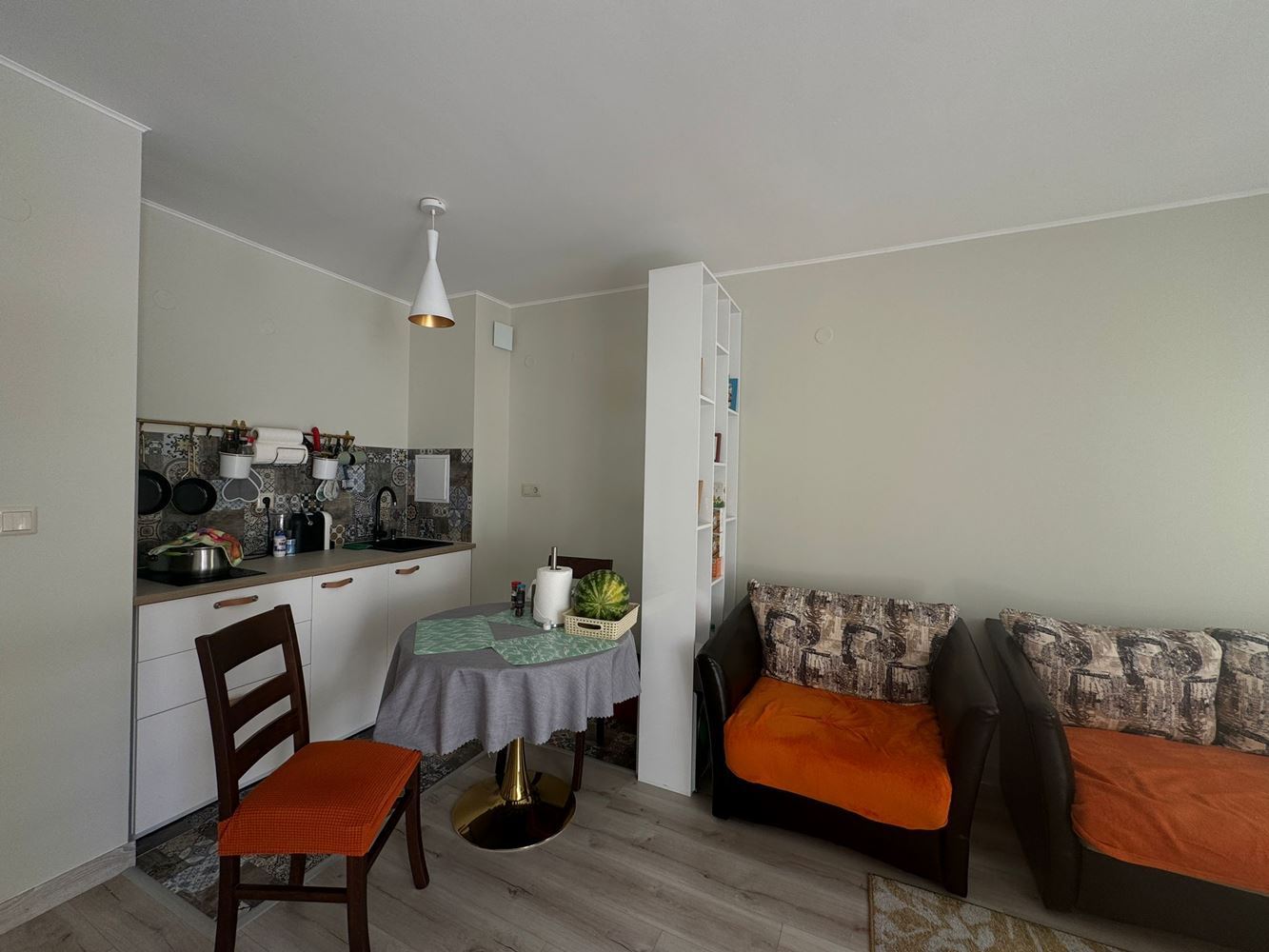 The apartment is situated on the second floor of a well-maintained four-story building and offers a total area of 55 m². The layout is functional and comfortable: a spacious living room with a kitchenette and dining area, a cozy bedroom, a bathroom with toilet, and a terrace. The apartment comes fully furnished and equipped – ready for immediate move-in or rental use. The kitchen includes all necessary appliances, the living area features comfortable furniture, and the bedroom is fitted with a quality bed and wardrobe. Finishes are in neutral tones, creating a calm and inviting atmosphere. The terrace offers a lovely outdoor space for morning coffee or evening relaxation.